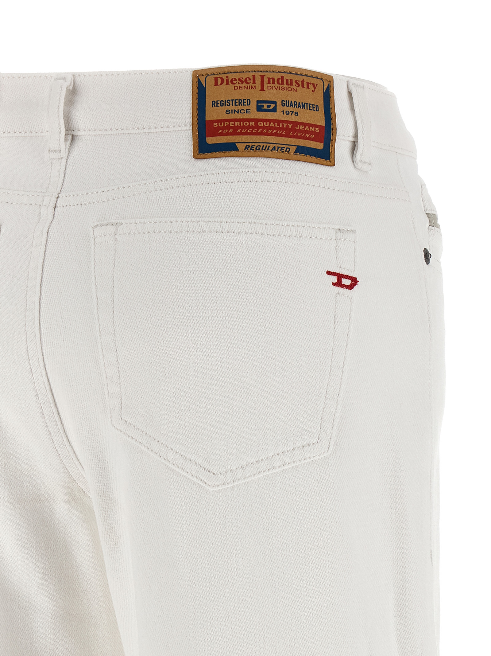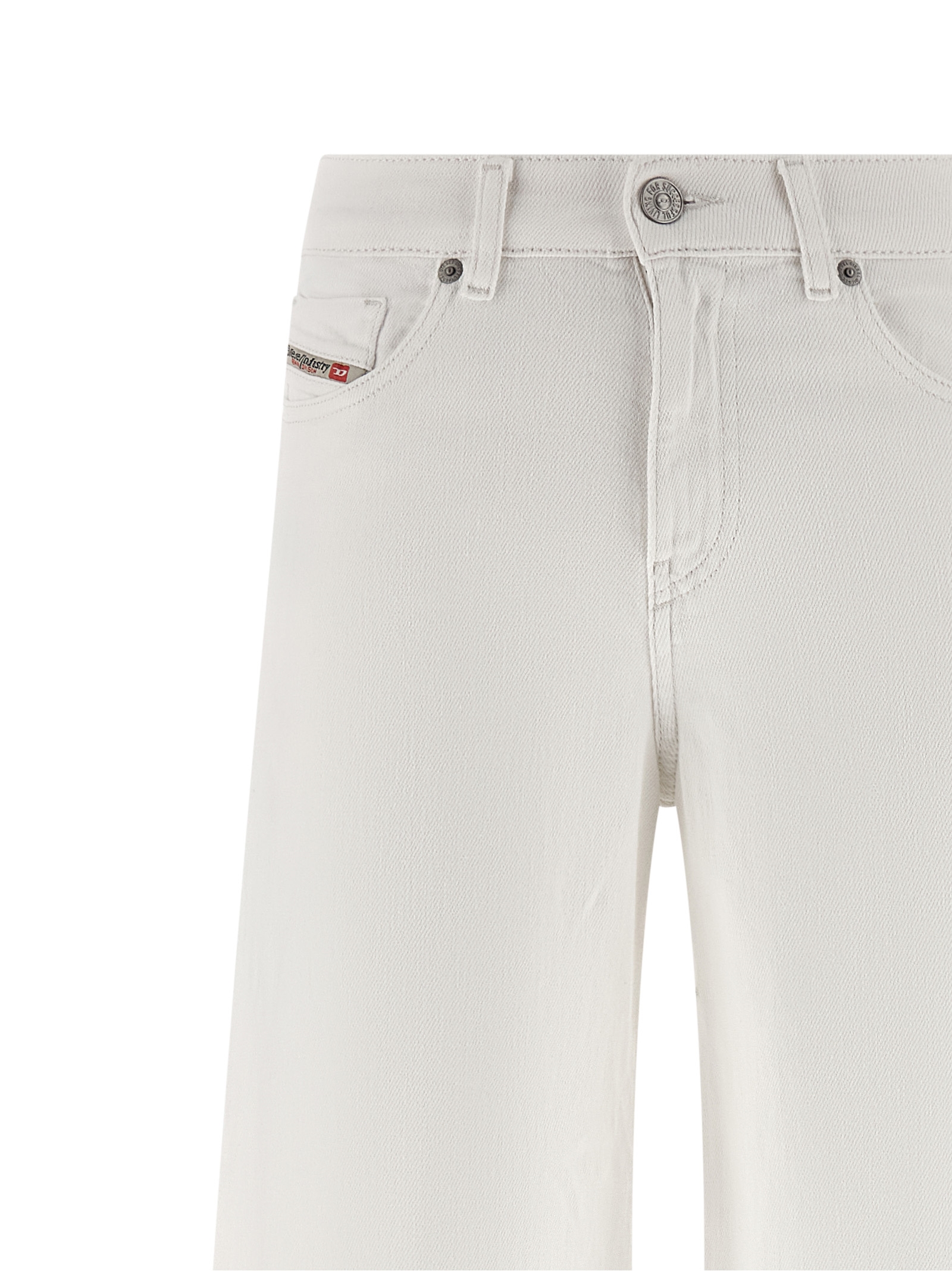 '1978 D-Akemi' джинси з пофарбованого готового виробу бавовняного деніму з середньою талією, розкльошеною широкою штаниною, передньою блискавкою та ґудзиком, п'ять кишень, шильдик з логотипом і вишитий логотип ззаду.