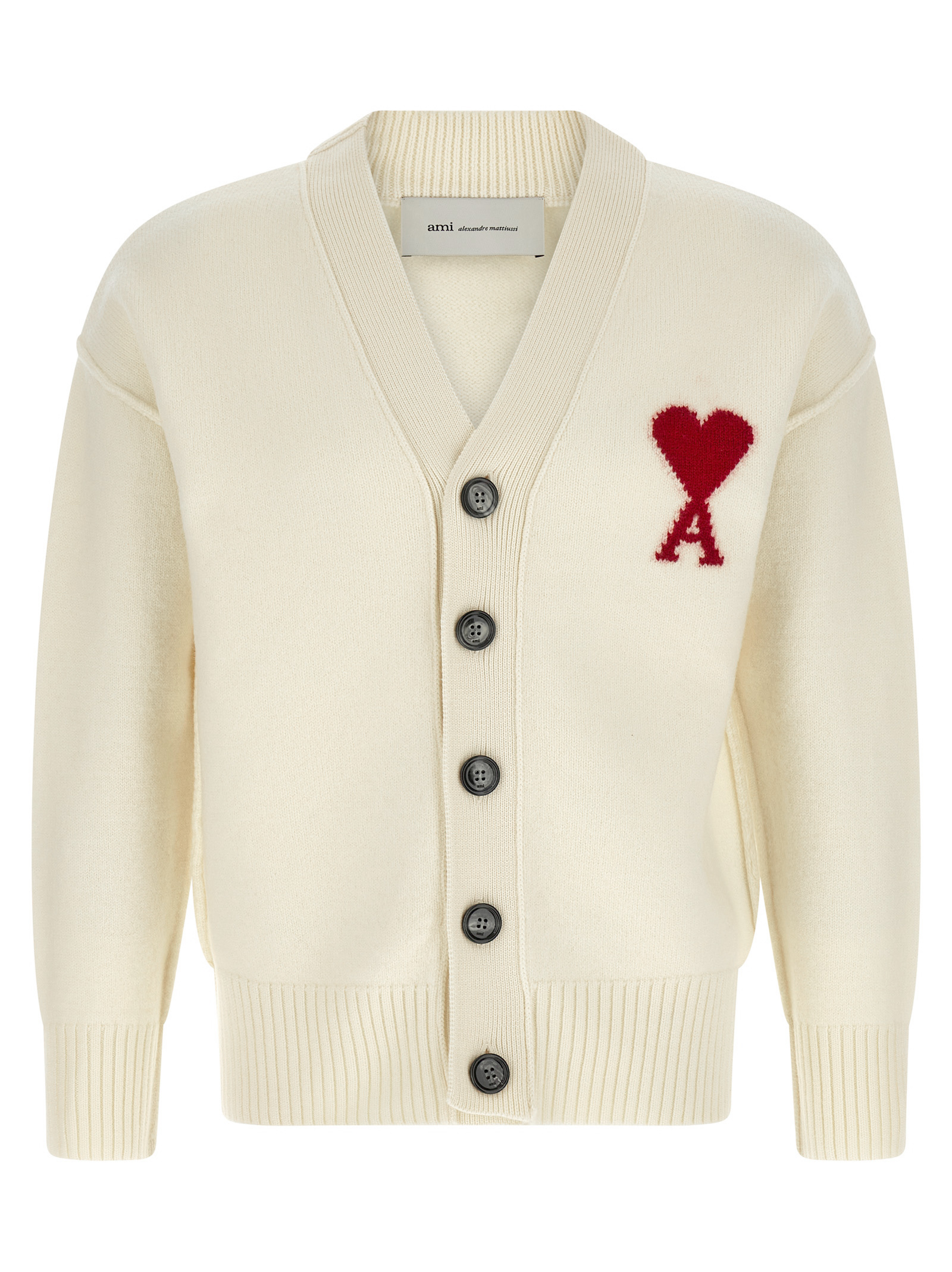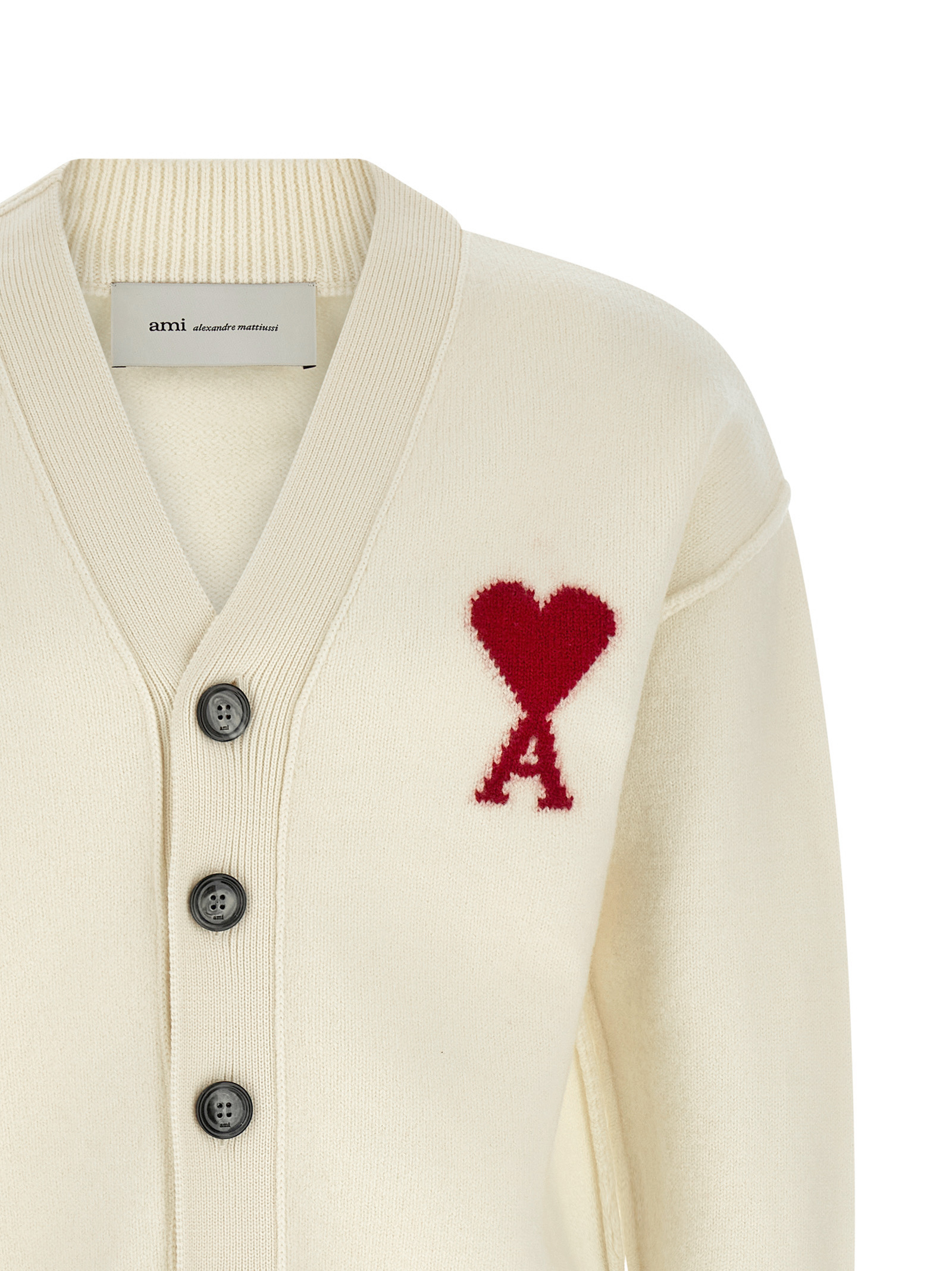 Валянний кардиган з меріносової вовни з вшитим спереду 'Ami de Coeur', V-подібний виріз, застібка на кнопках спереду, довгі рукави з манжетами.