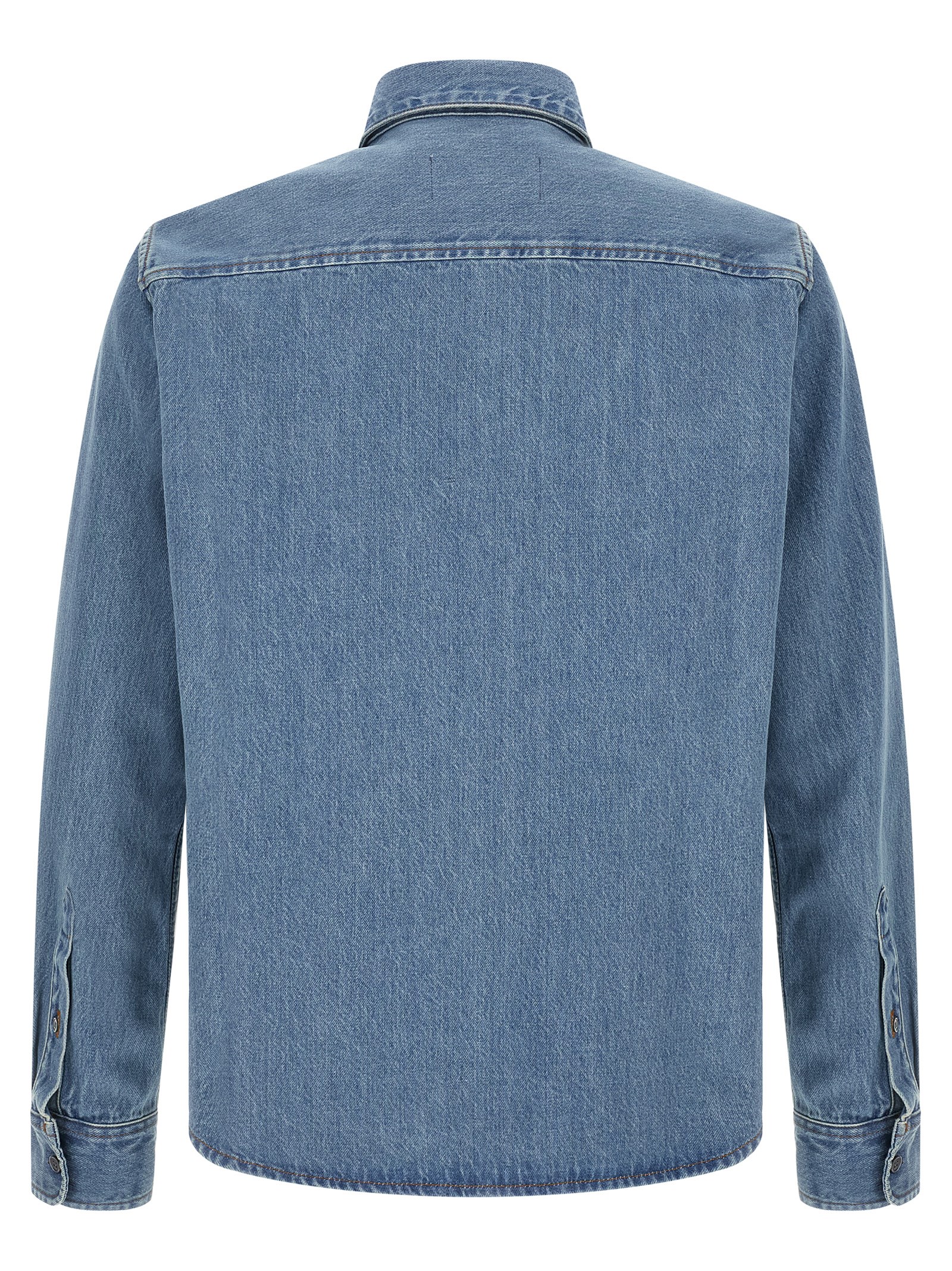 Cotton denim shirt with front 'Ami de Coeur' embroidery, button closure, long cuffed sleeves.