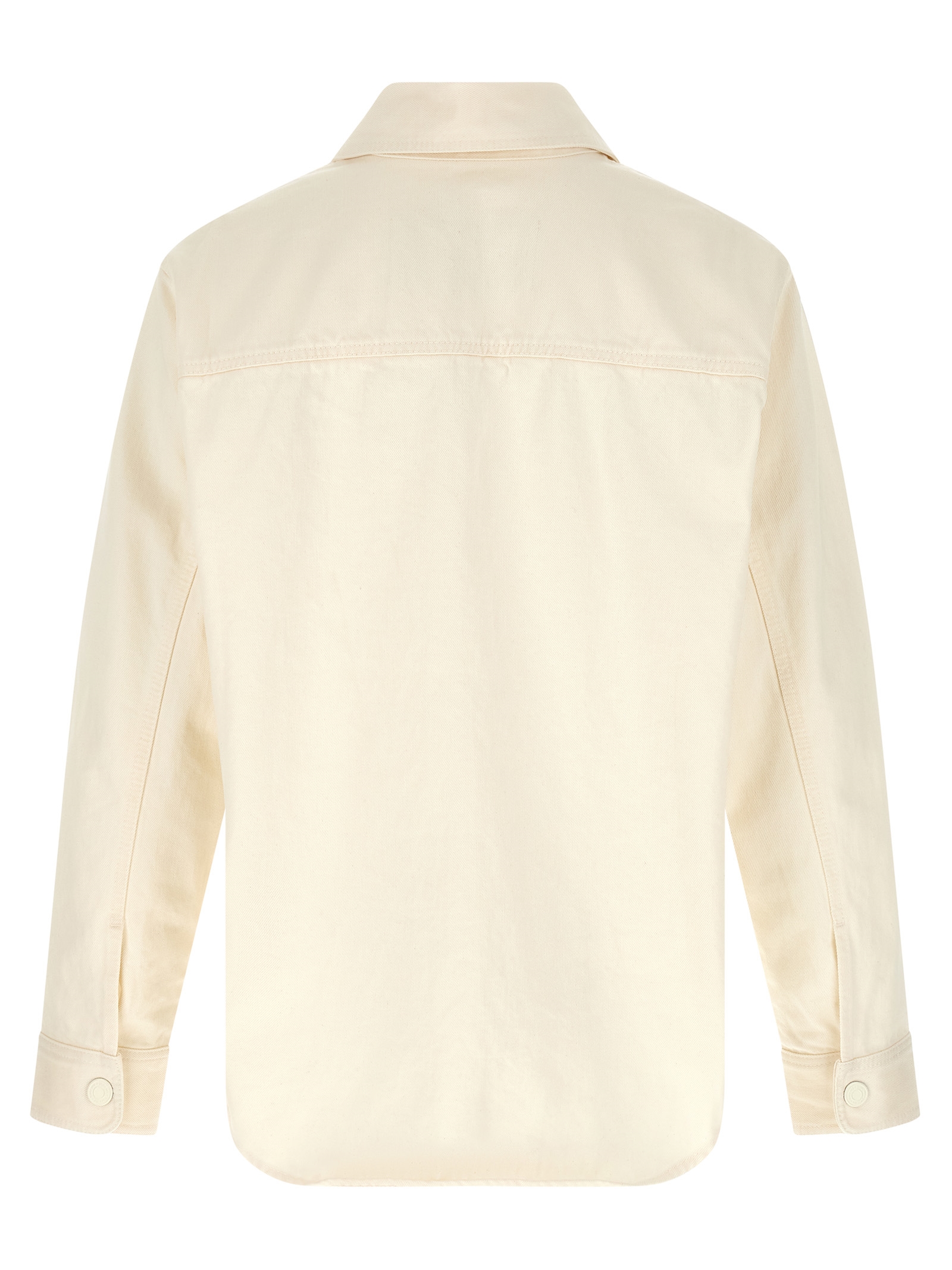 'Ami de Coeur' овершерт з важкого бавовняного деніму, тон-в-тон в'язана нашивка 'Ami de Coeur' і застібка спереду на кнопки, довгі рукави з манжетами та опущені плечі, округлий і асиметричний низ.