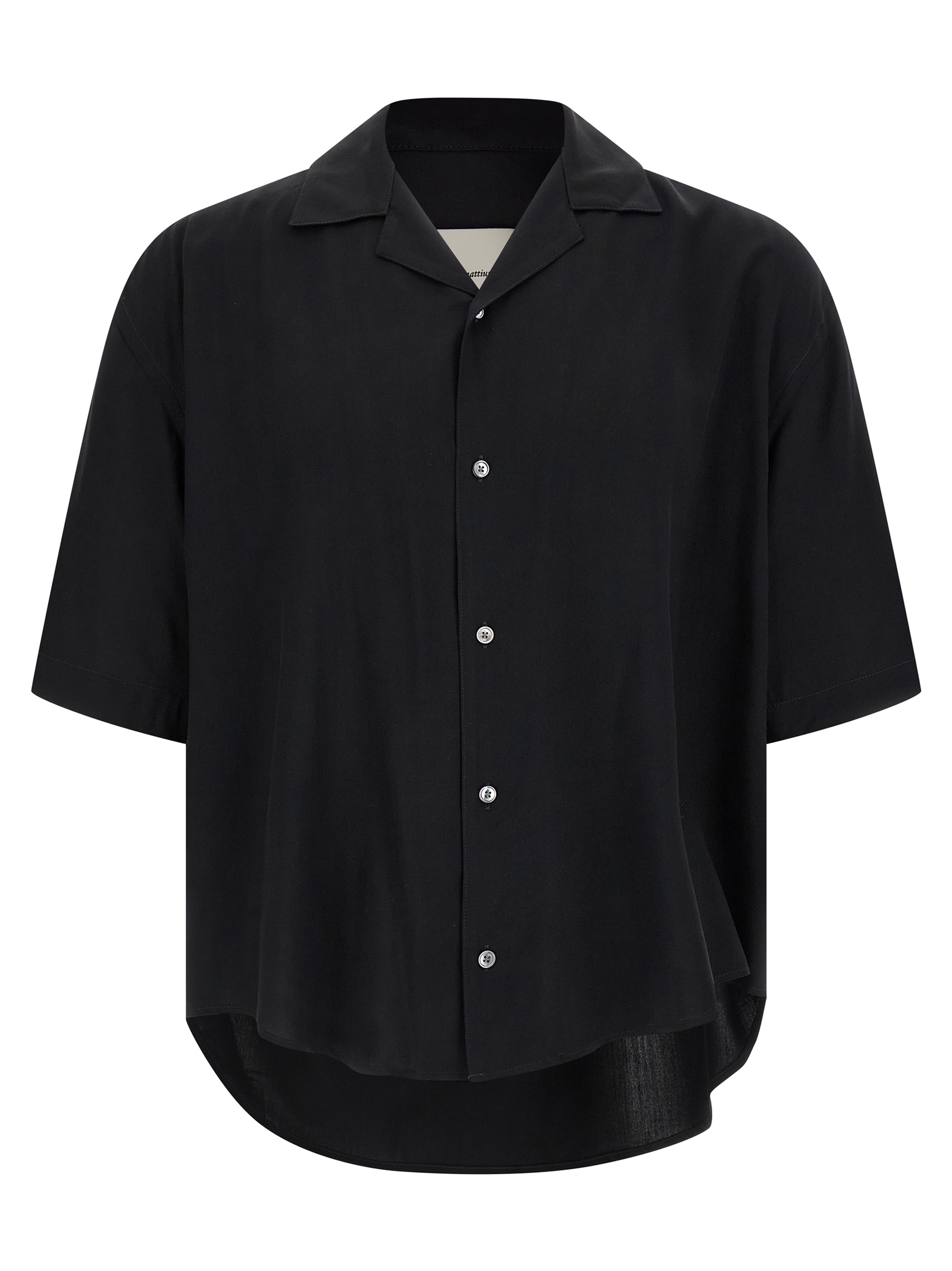 Розкішна сорочка з віскози, вишивка логотипа 'Ami Paris' тон у тон і передня застібка на ґудзики, короткі рукави зі заниженим плечем, округлий та асиметричний низ.