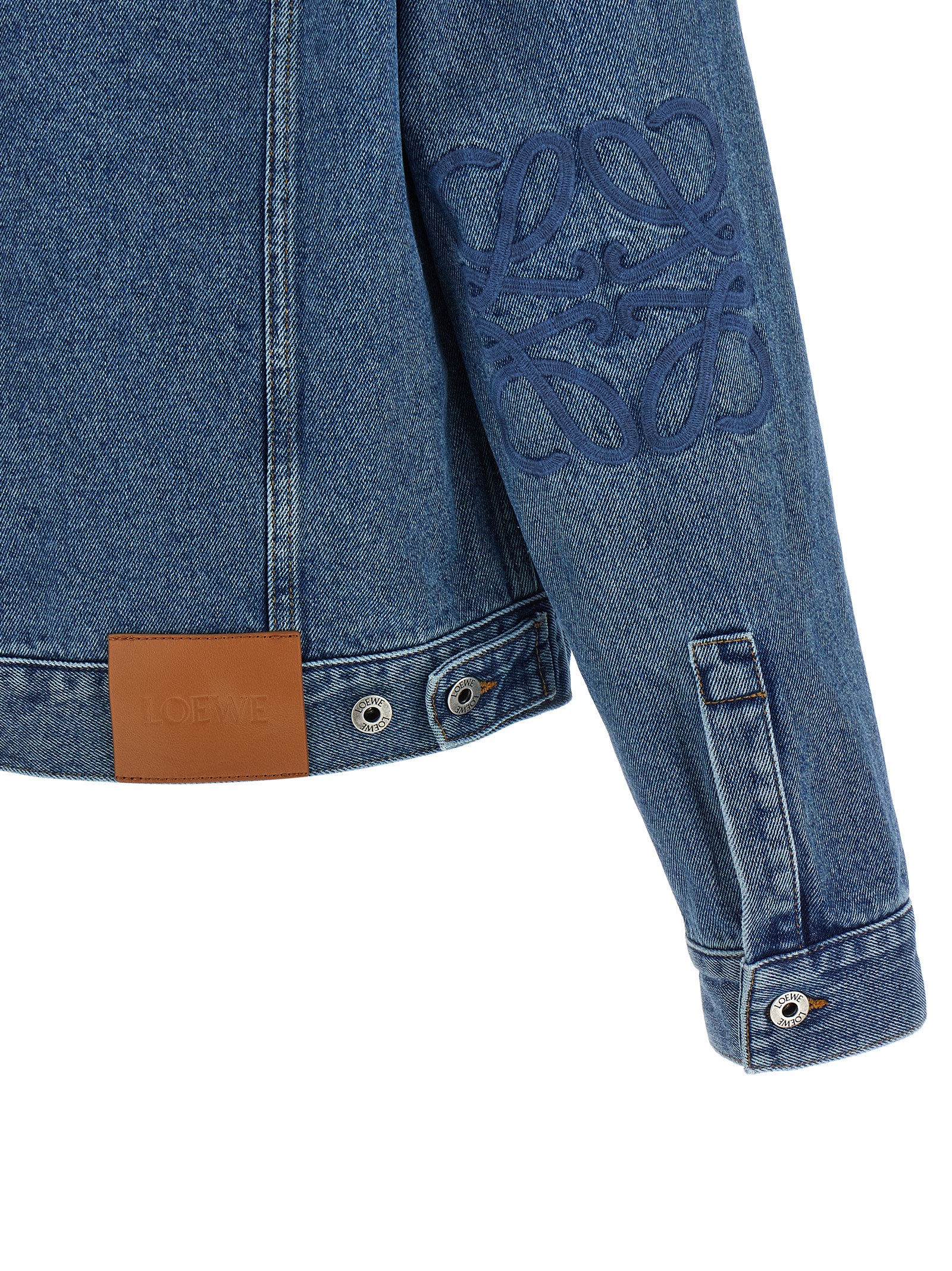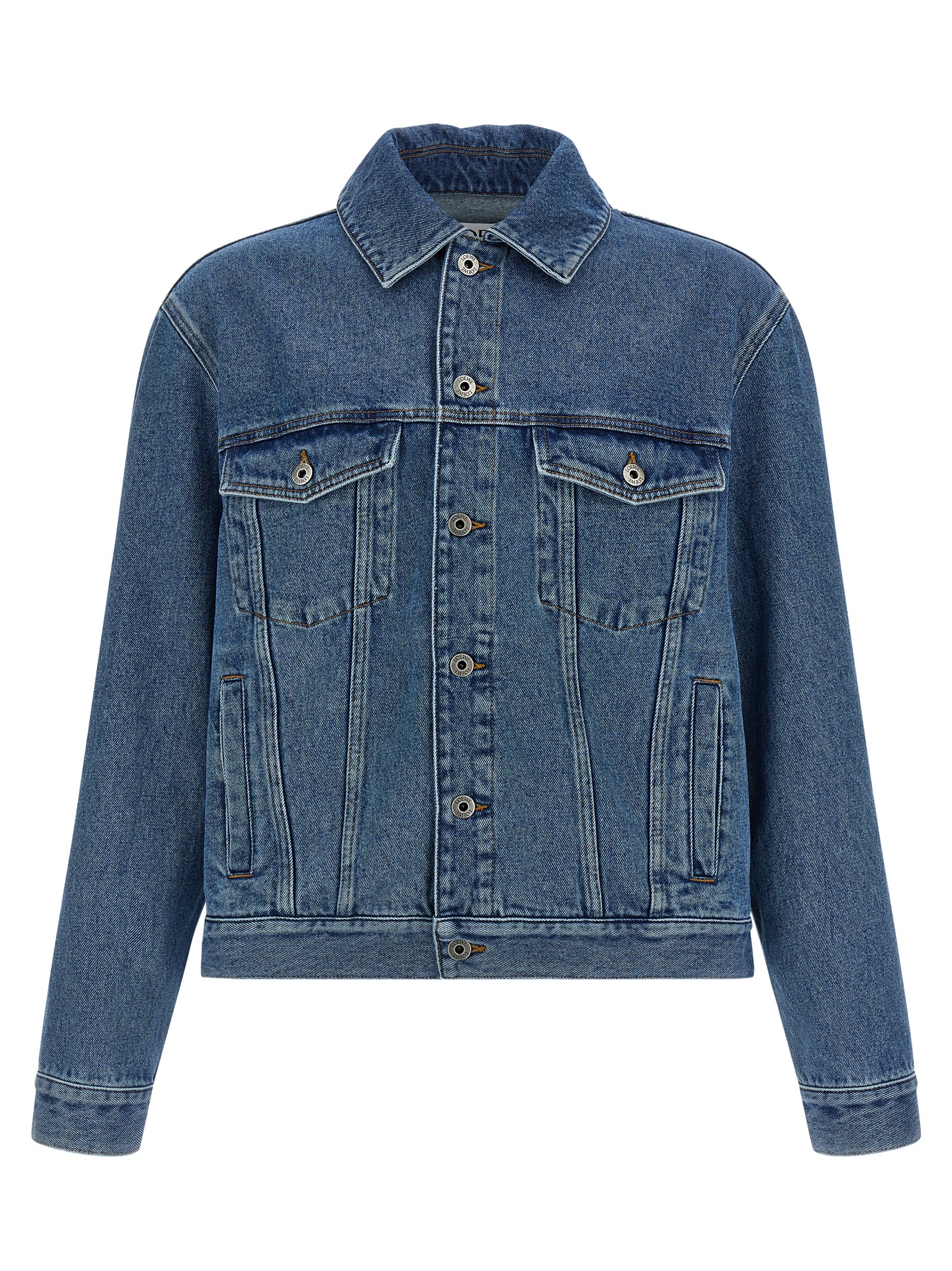 'Anagram' куртка з бавовняного деніму з контрастною рядкою, коміром сорочкового типу, передньою застібкою на металеві ґудзики, кишенями, довгими рукавами з манжетами та тон-в- тон вишивкою 'Anagram' на лікті.