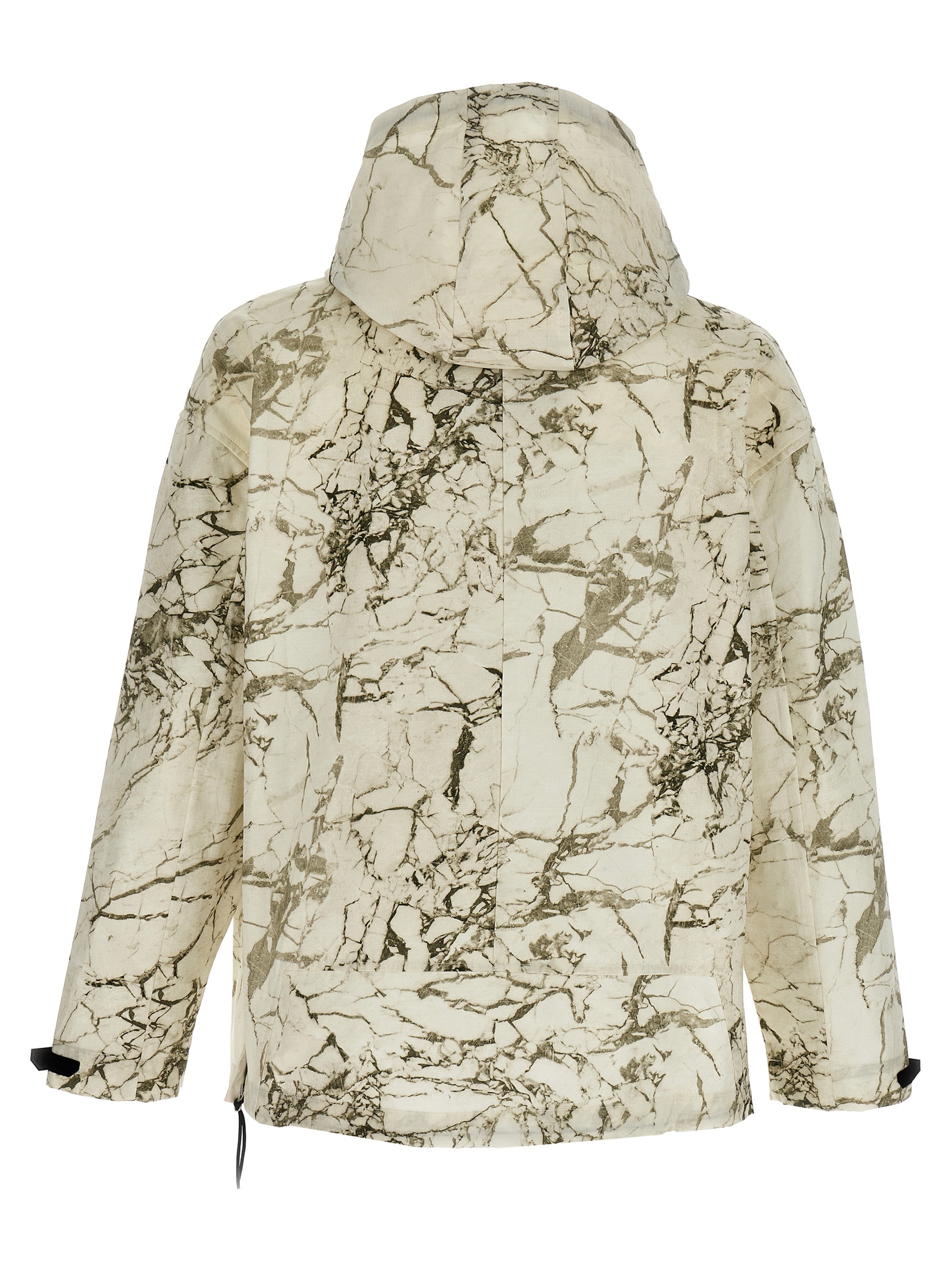 Анорак 'Overset Tech' з бавовни з ефектом мармурової друку по всій поверхні, переднім принтом логотипу, напівзастібкою, кишенями, довгими рукавами з манжетами, шнурком на нижньому краю виробу та знімним капюшоном.
