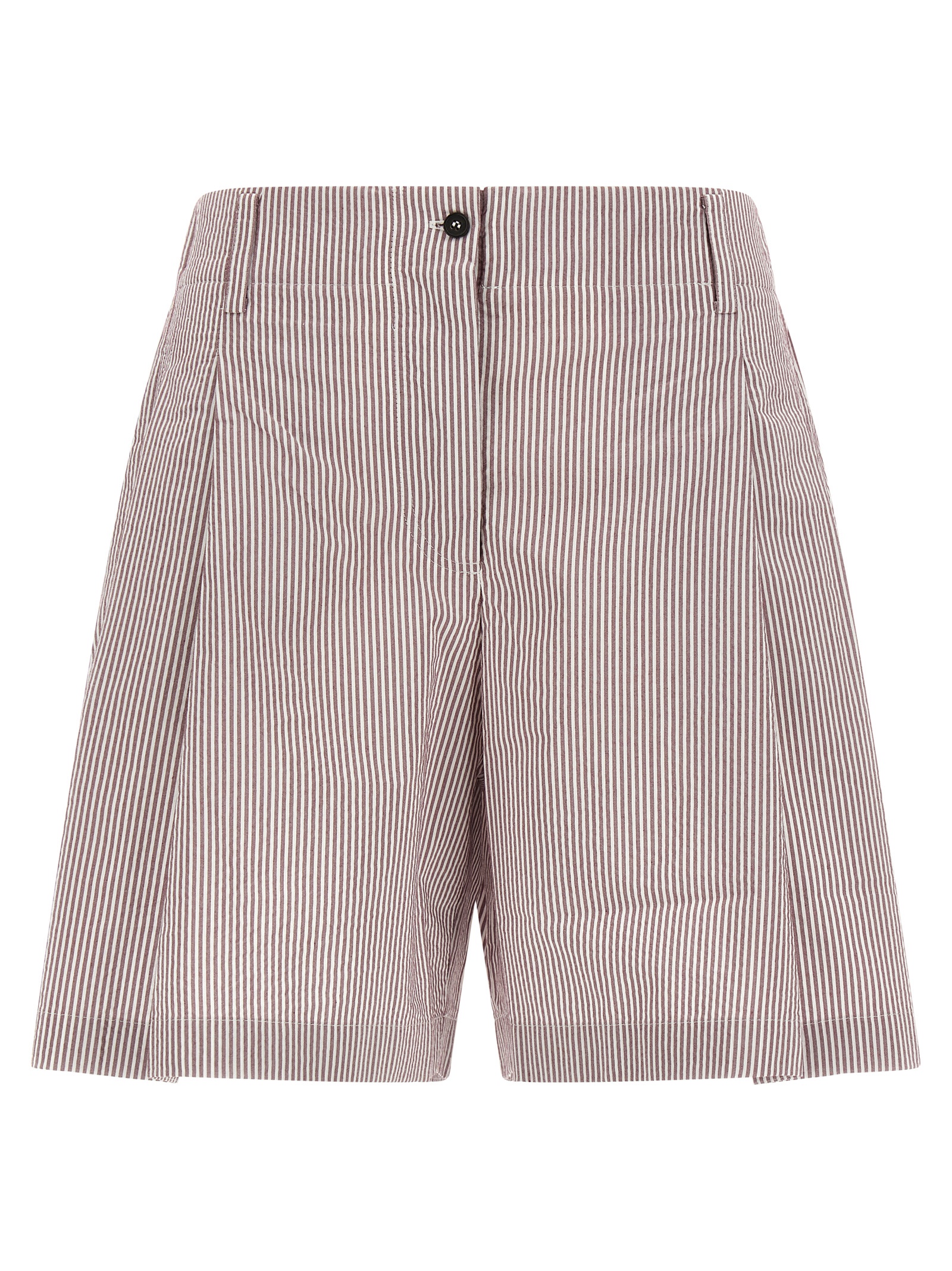 'Baggy' шорти з смужками з бавовняної суміші, подвійна плісировка, закриття на блискавці та гудзиках спереду, кишені, широкі штанини.