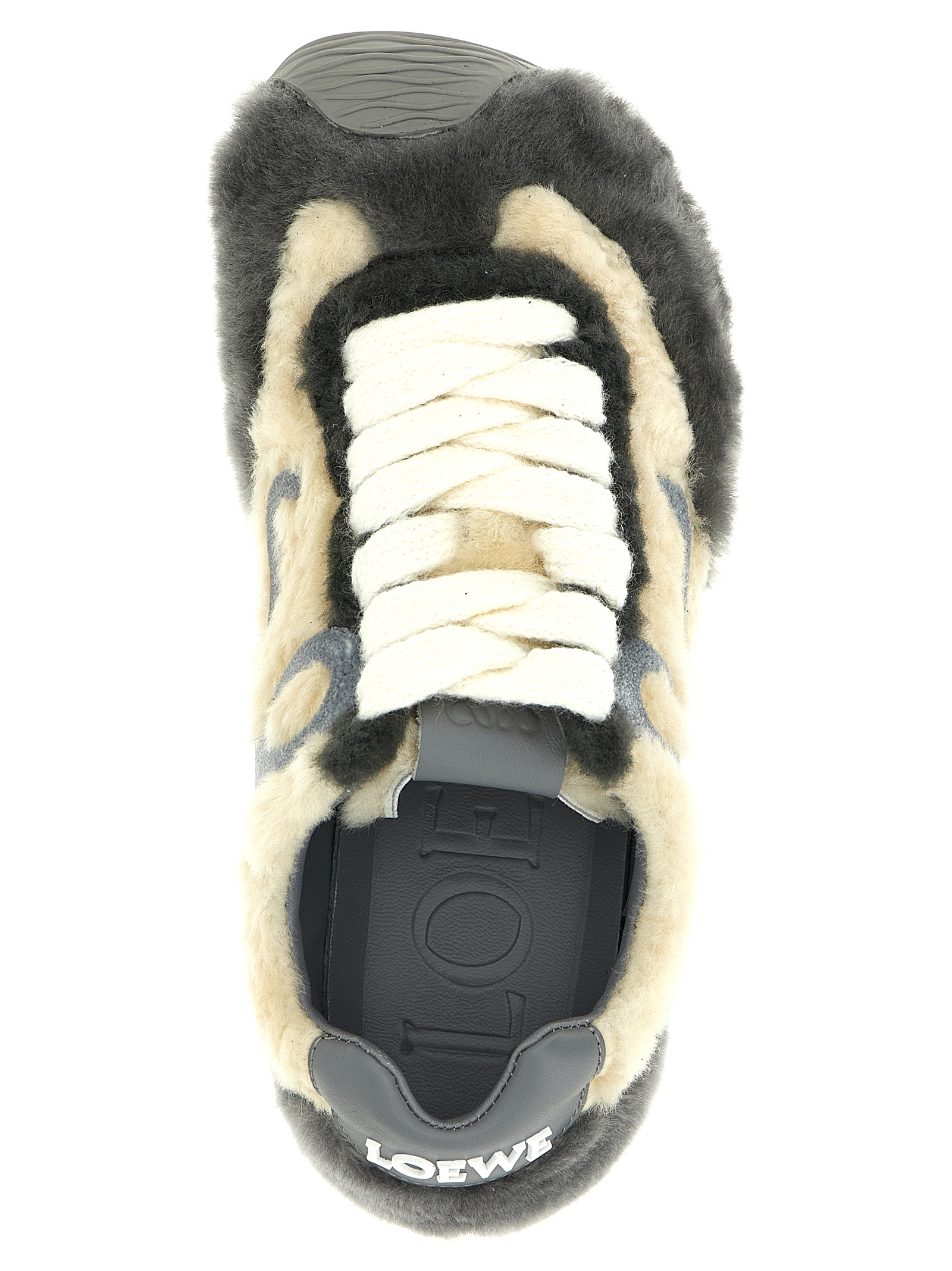 'Ballet Runner 2.0' кросівки з овчини з шкіряним каблуком з контрастним логотипом, асиметричним округлим носком, боковим логотипом з оксамиту, внутрішньою структурою у вигляді шкарпетки, шнурівкою, легким гумовим підбором та носком.