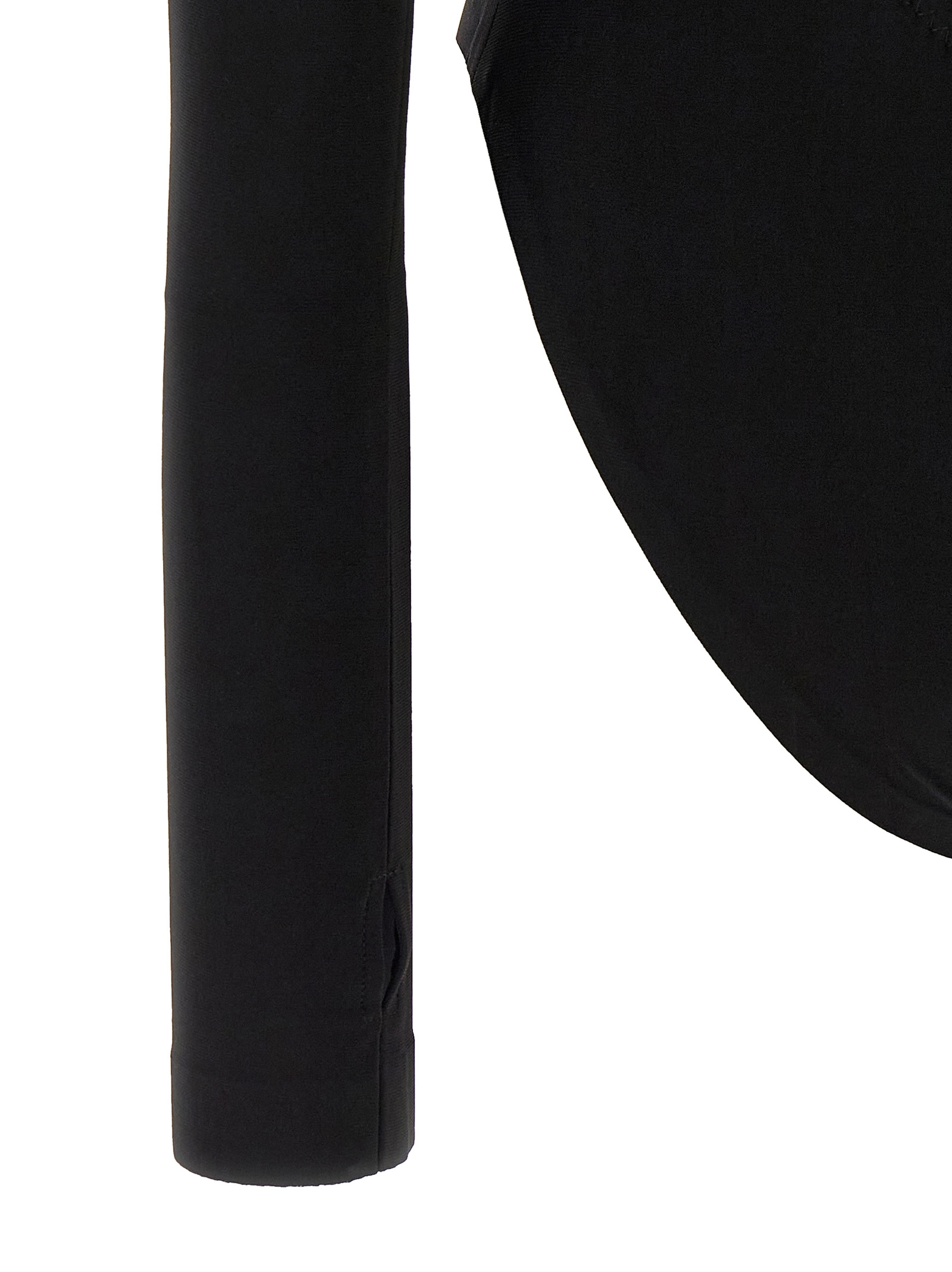 Боді з полі Лайкри з 4-стороннім еластичним ефектом з високим коміром, широким овальним вирізом на спині, довгими рукавами, кнопками на низу.
