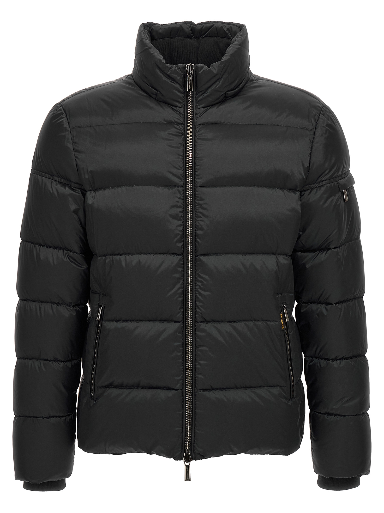 'Brett' бомбер із надлегкої, водовідштовхувальної та захищеної від проникнення пуху матової тканини з простьобаною набивкою з гусиного пуху, знімним капюшоном із шнурком і застібкою на кнопки біля горла, високий комір, передня застібка-блискавка, кишені, довгі рукави з в'язаними вітрозахисними манжетами, шнурок по низу.