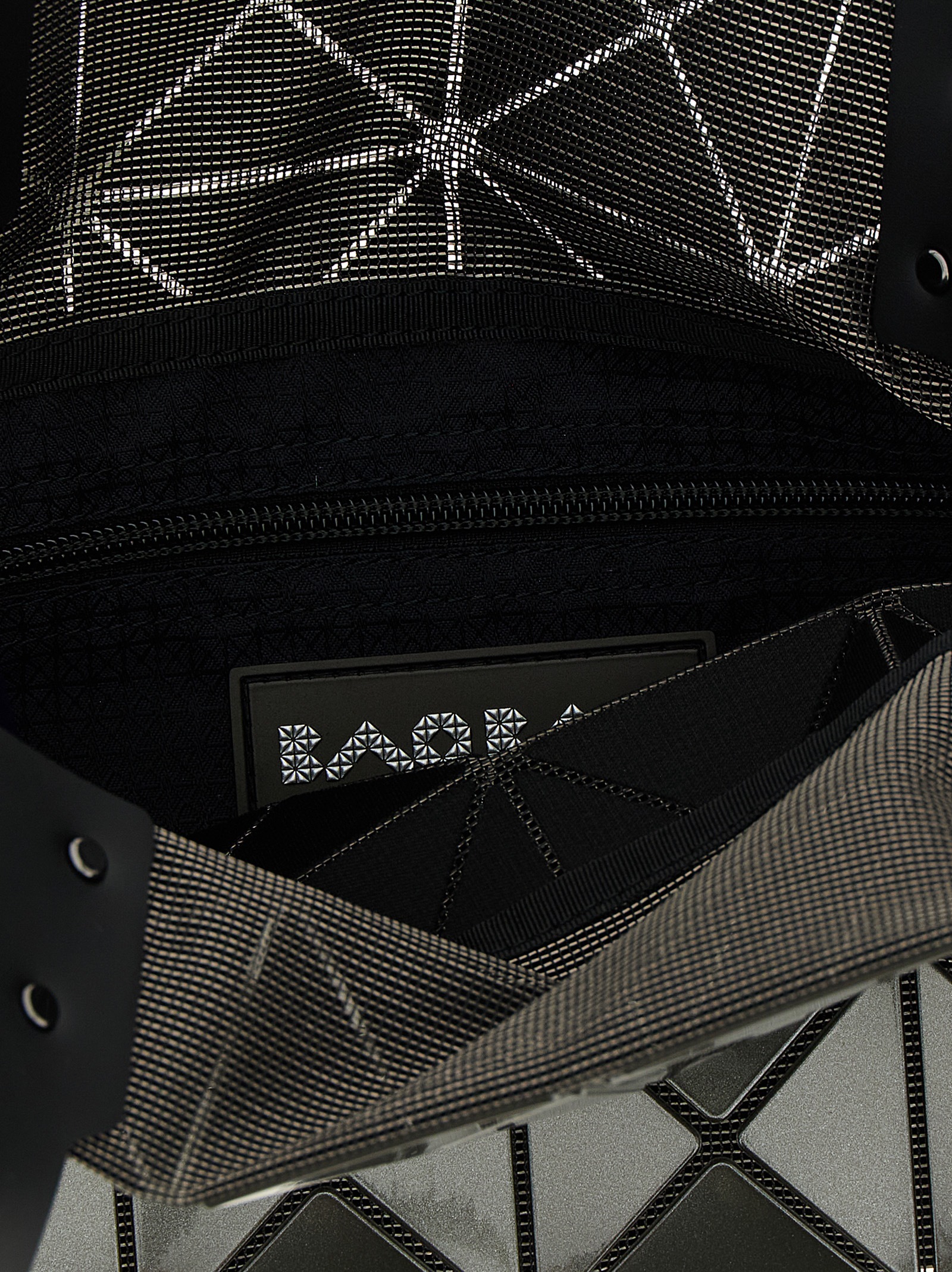 'Carat' велика сумка з сітчастої тканини та перламутрового ПВХ, подвійна регульована ручка, внутрішня кишеня, бічні вставки.