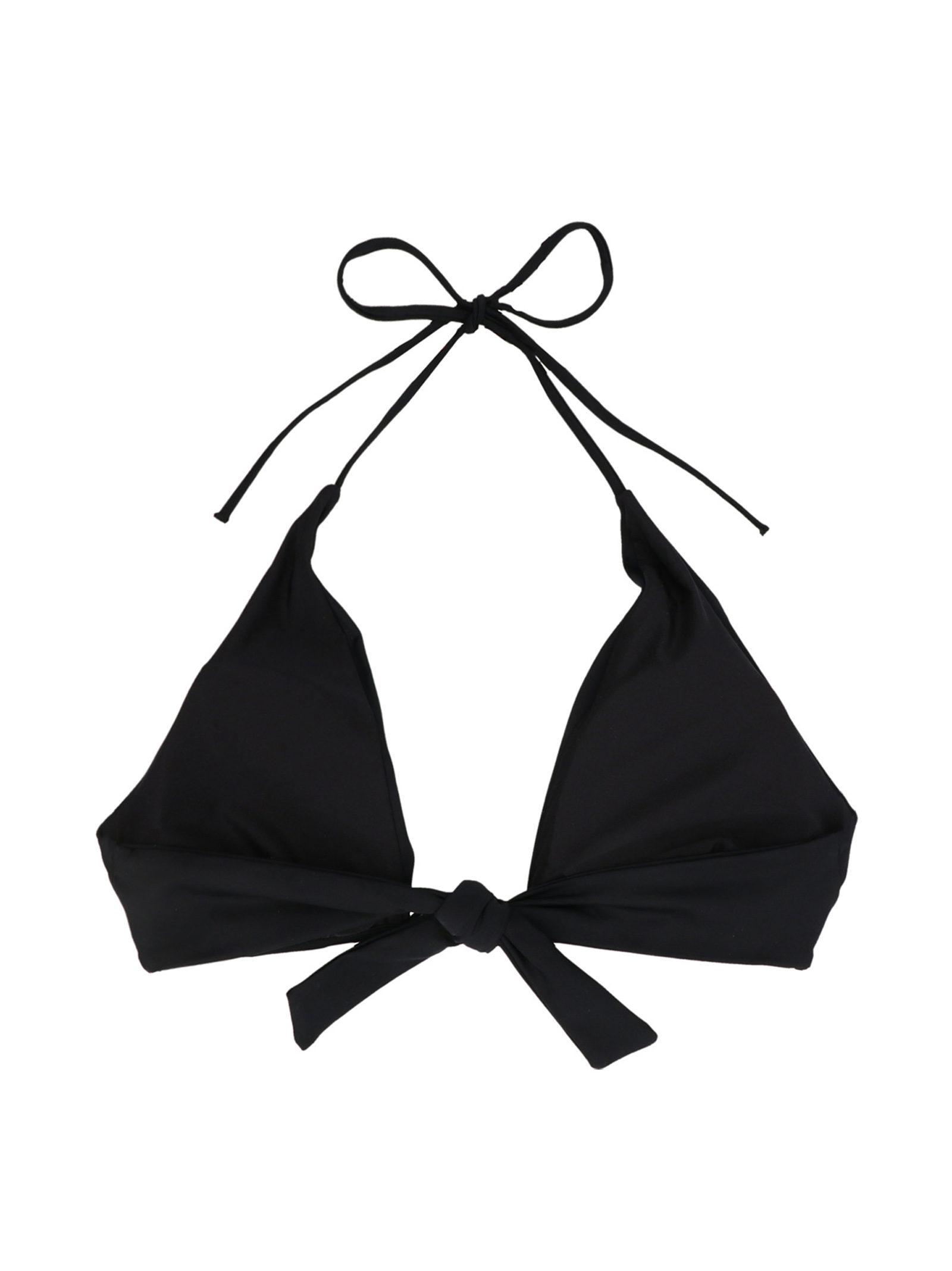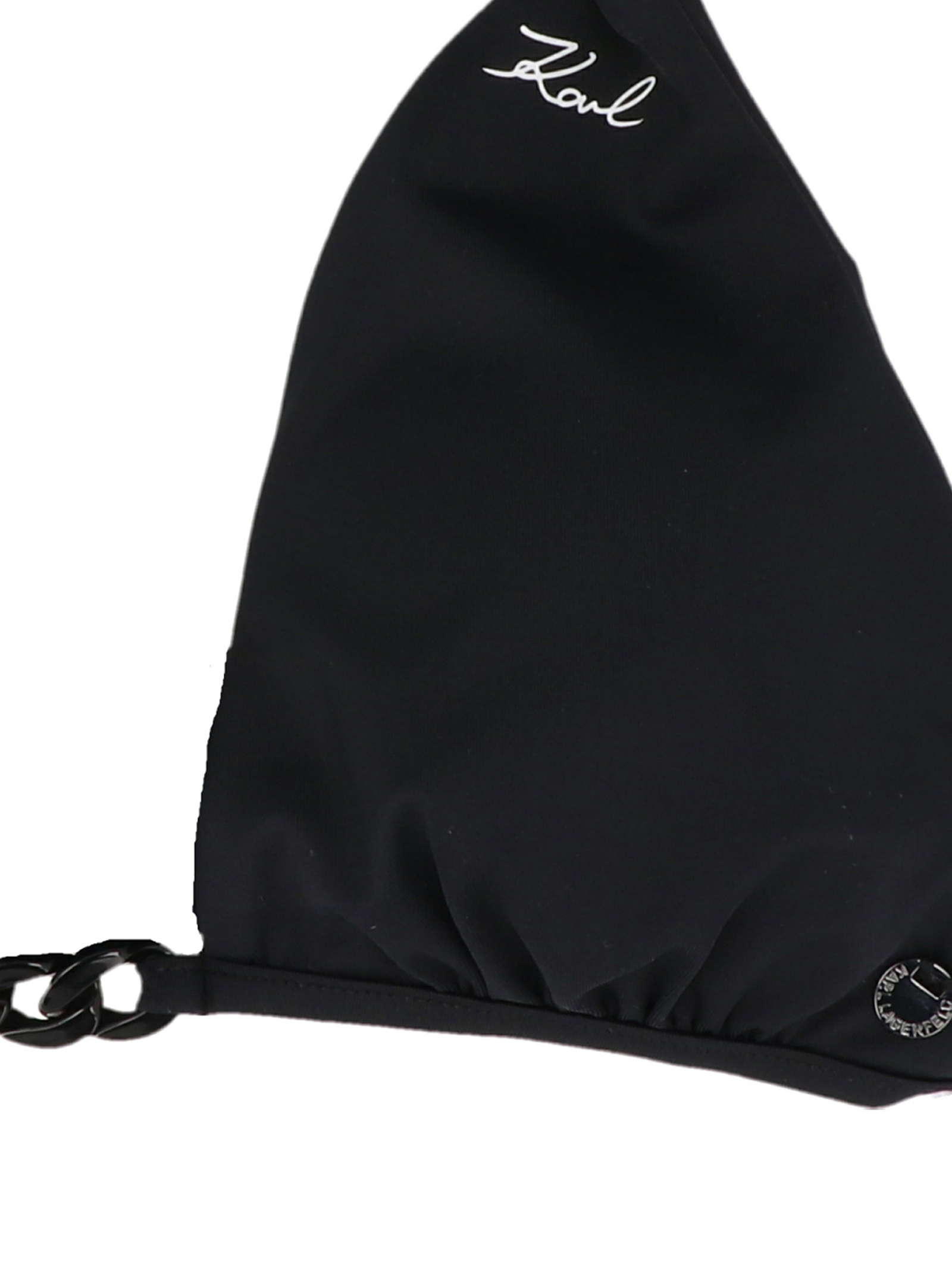 Triangle bikini top in stretch tech fabric with tonal chain detail at the front, knotted ties and removable padded cups. JULIAN SUSTAINABLE: This product is made from recycled materials.
