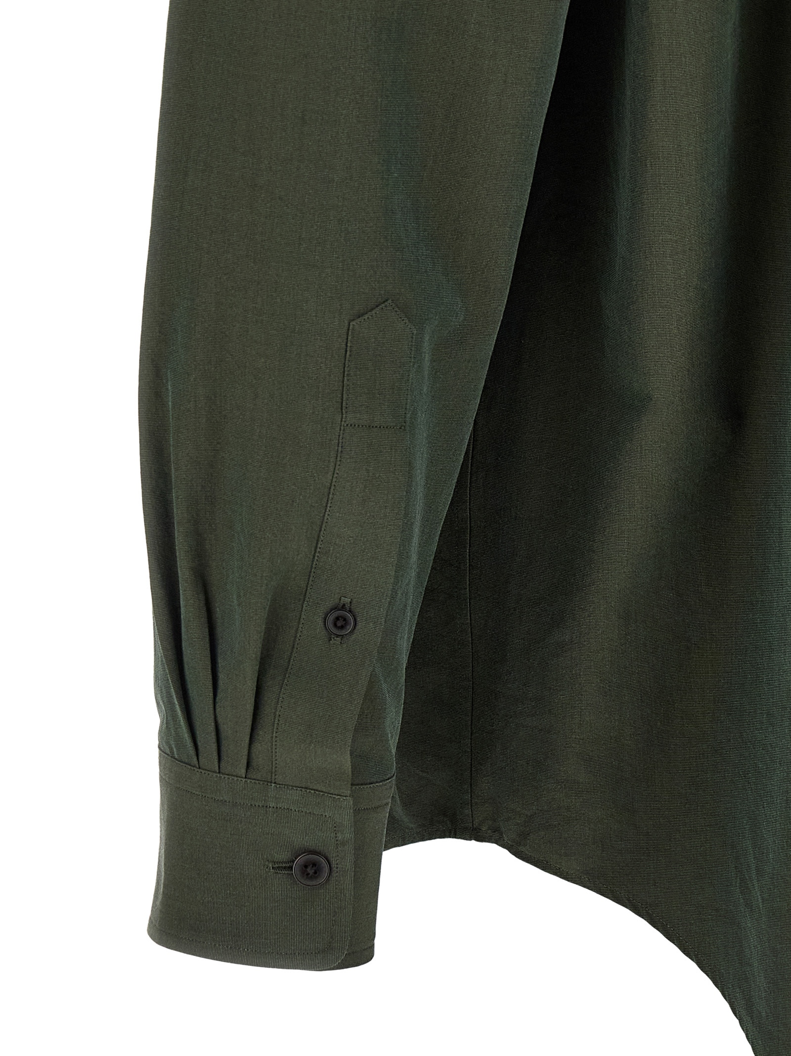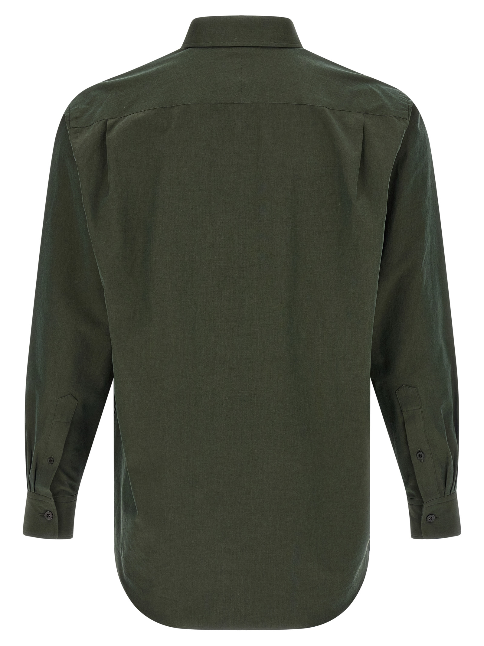 Сорочка з начісаного чембре, пофарбована в нитку і ткана з довговолоконної єгипетської бавовни Finx, гострий комір, передня застібка на ґудзики, довгі рукави з манжетами, округлий низ.