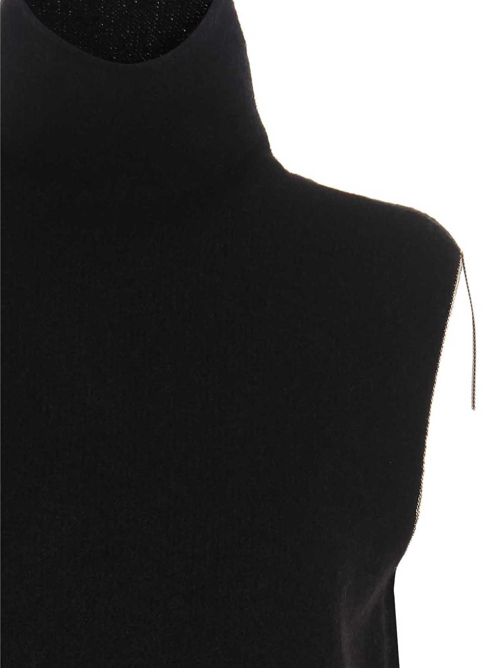‘Charlotte' cashmere blend vest with a high collar and chain appliqué edging.