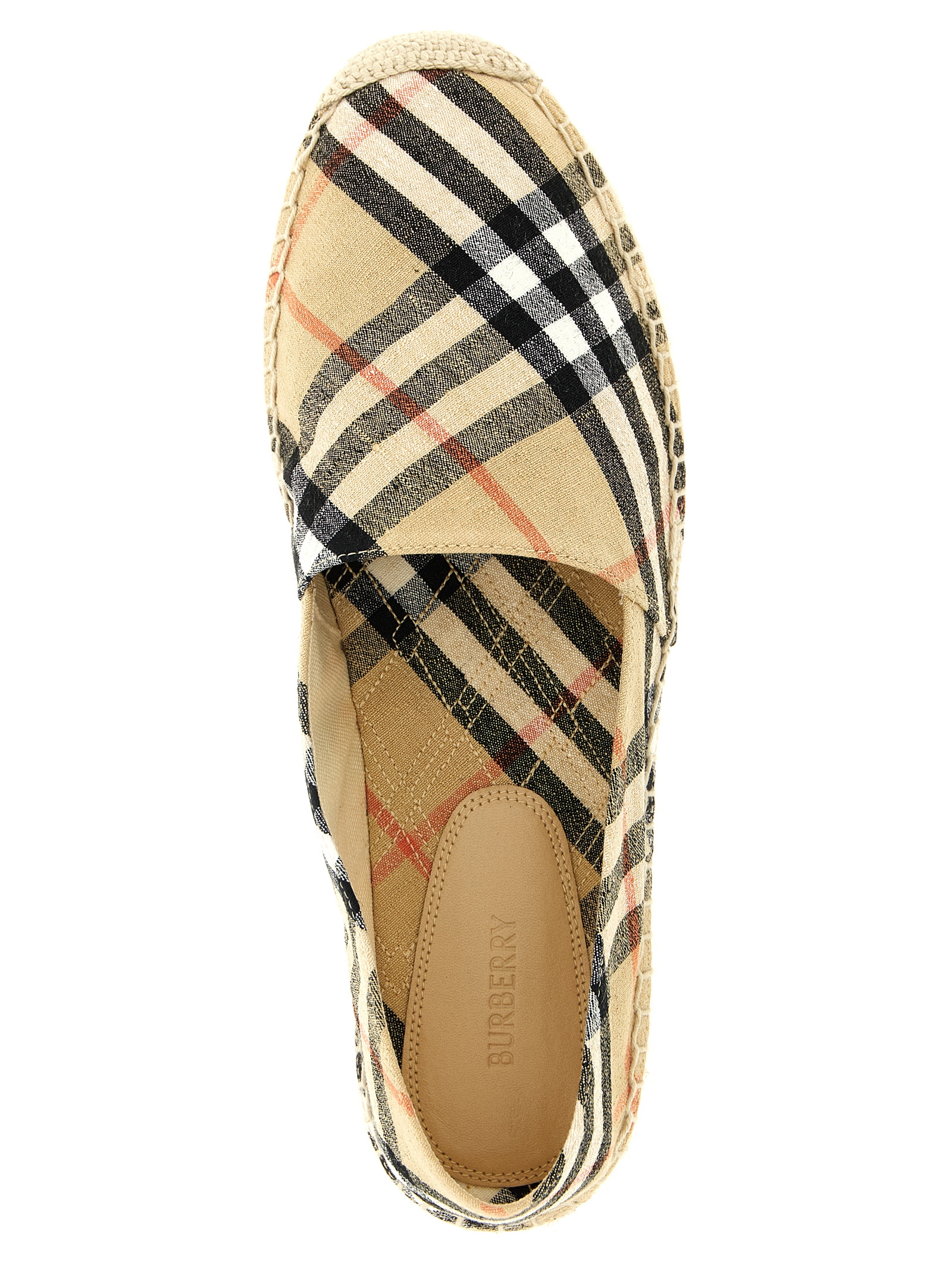 Еспадрильї з тканини суміші льону, картатий принт, підкладка з джутового шнура, гума підошва.