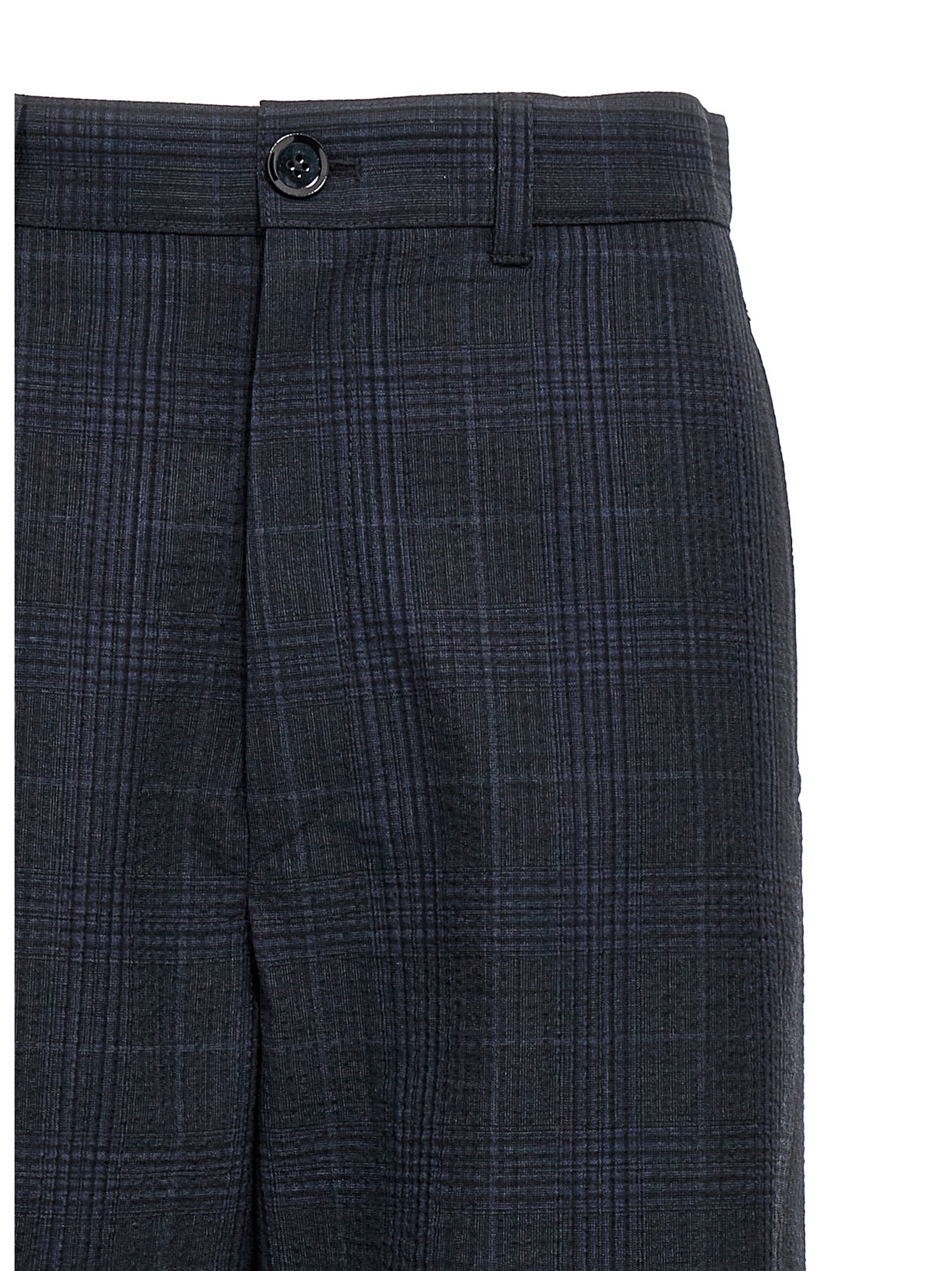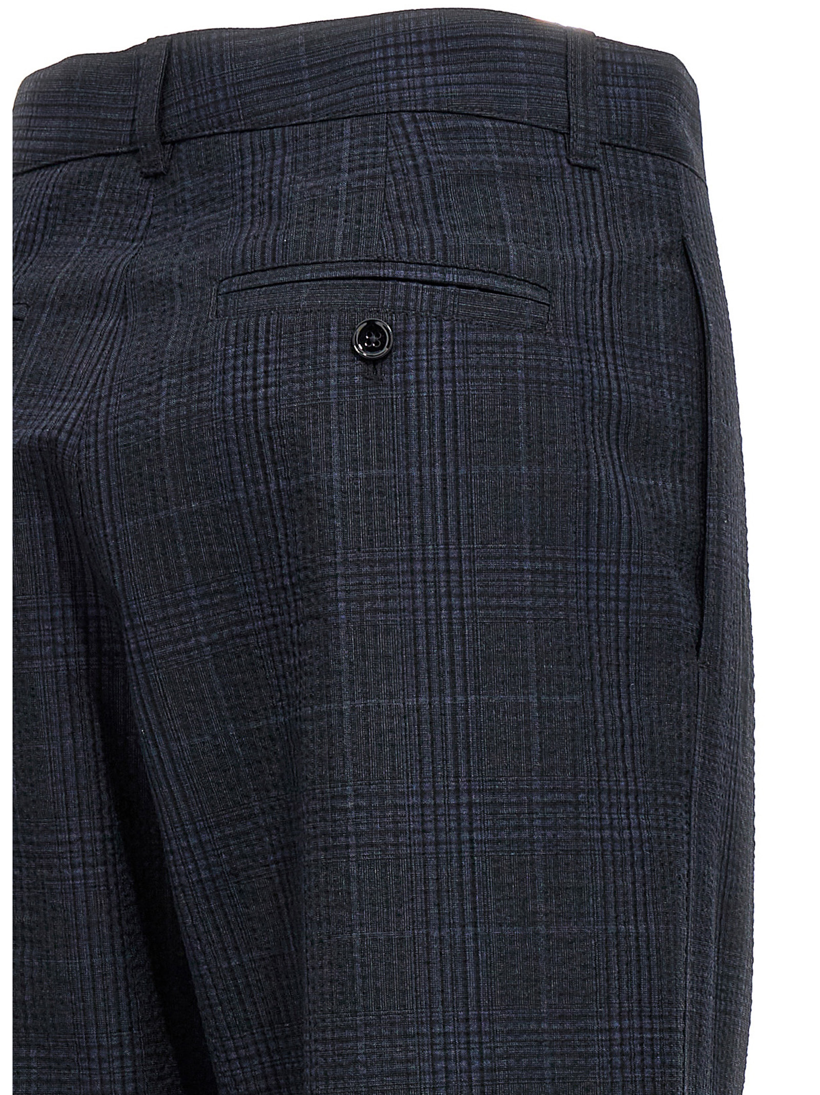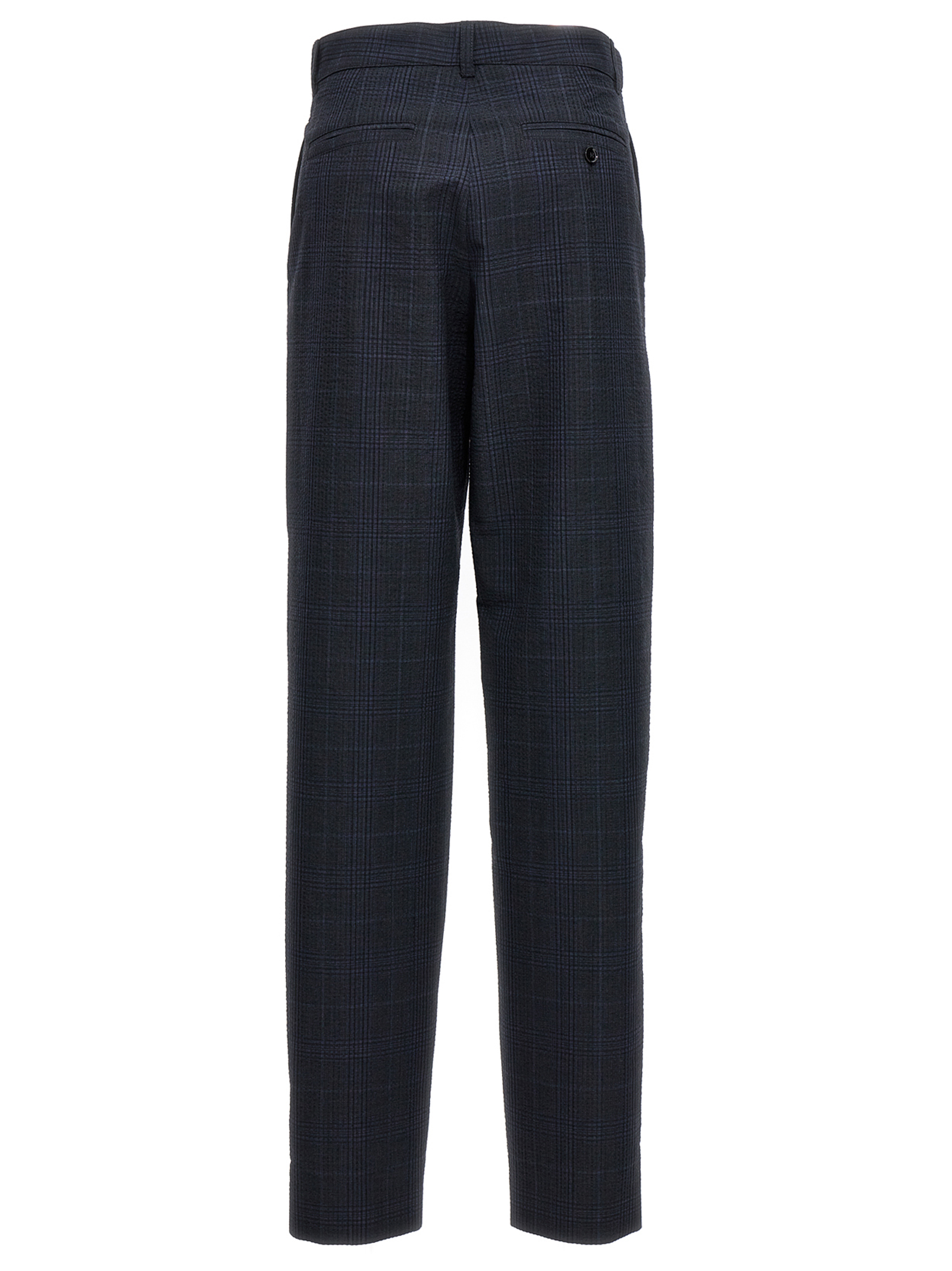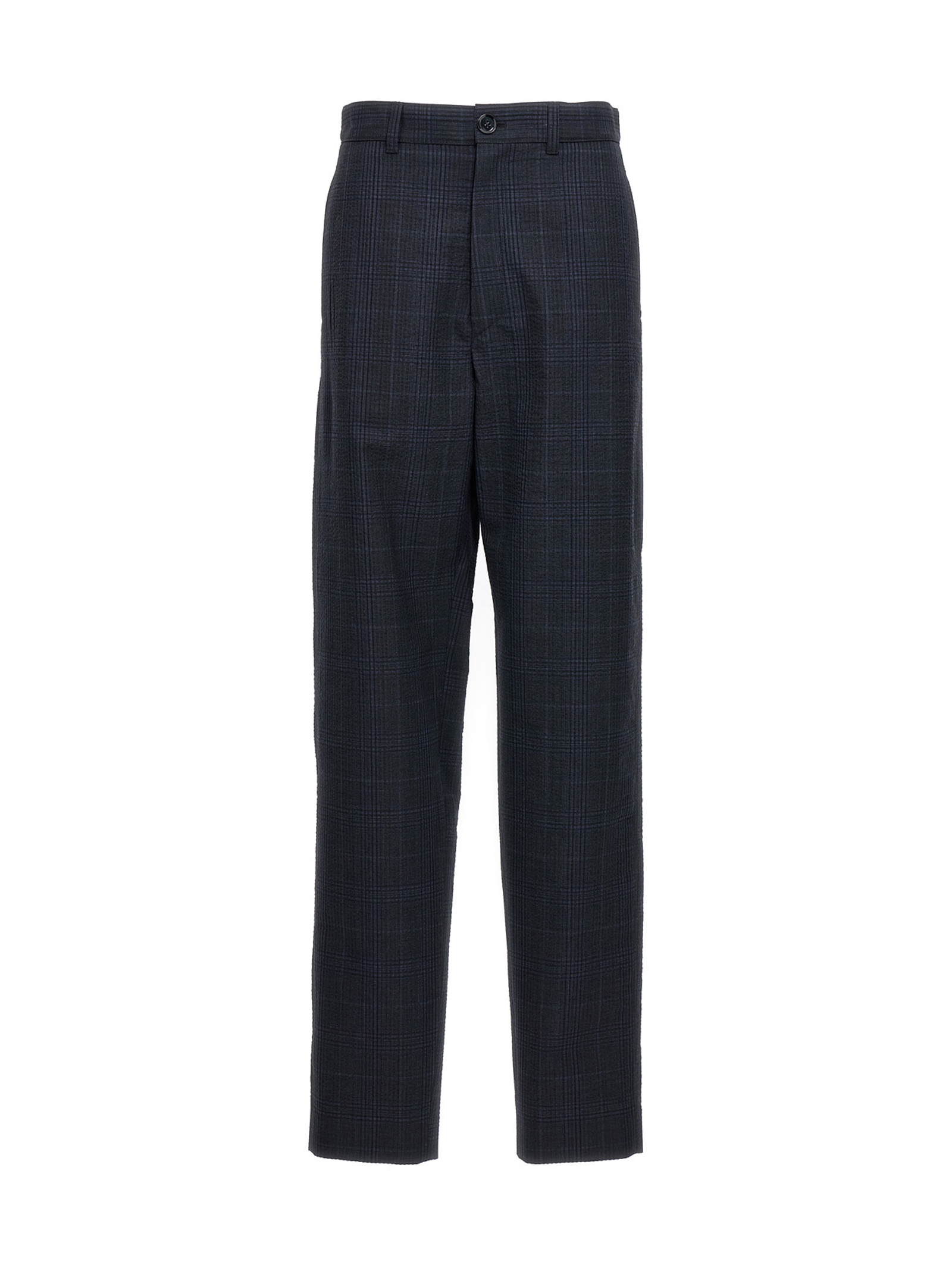 Вовняні штани з малюнком в клітинку по всій поверхні, застібкою на блискавці та кнопці, кишенями.