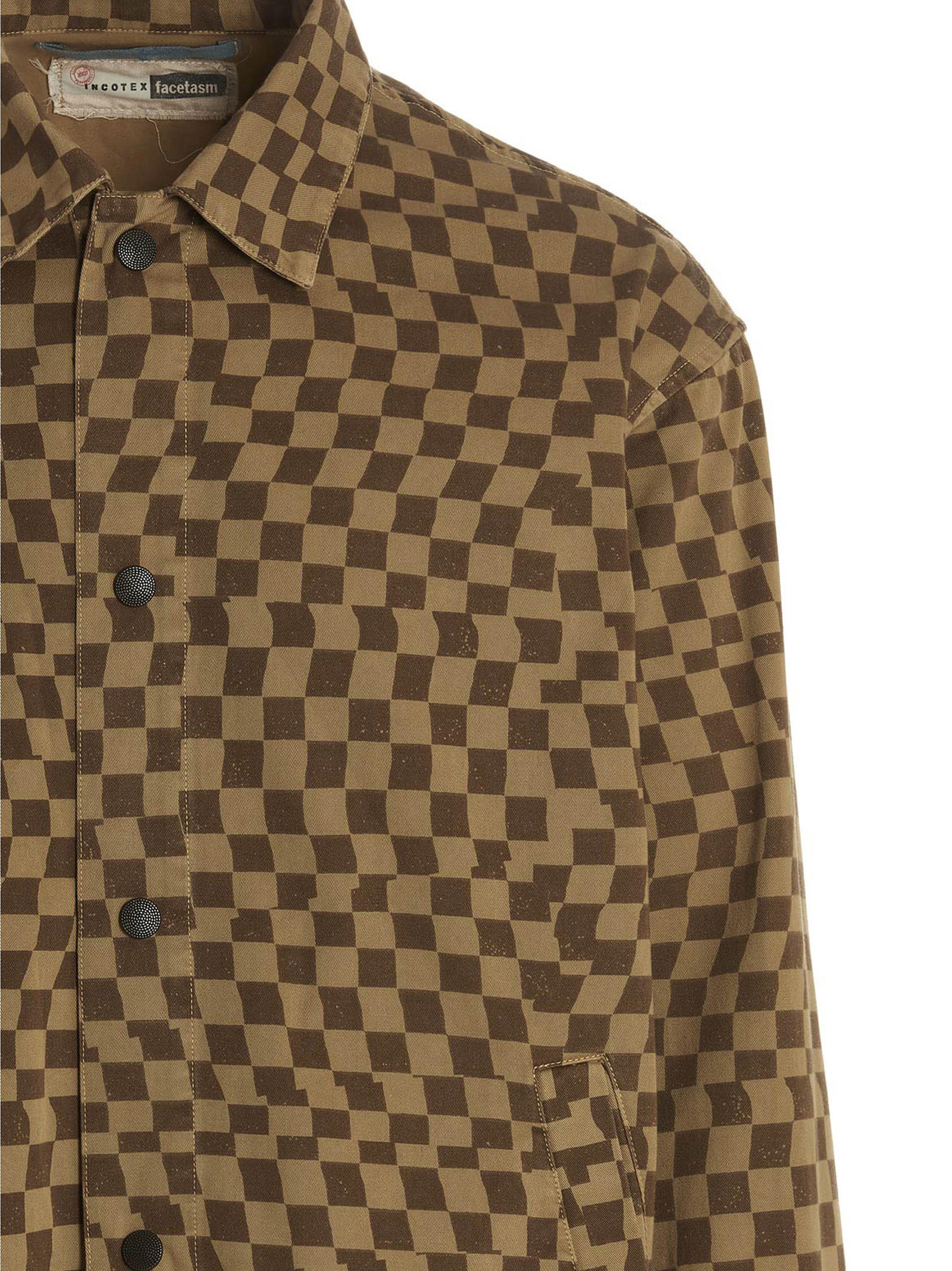Бавовняна overshirt з картатим принтом, застібкою на кнопках та шнурком на талії.