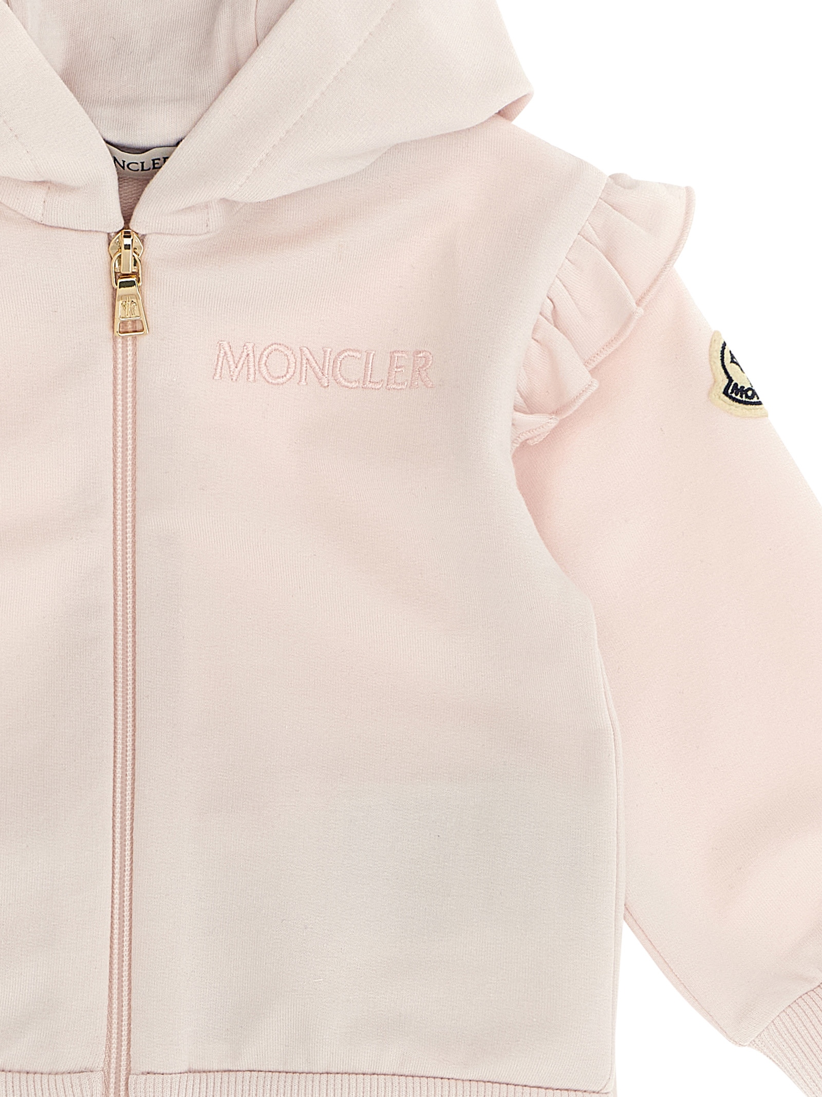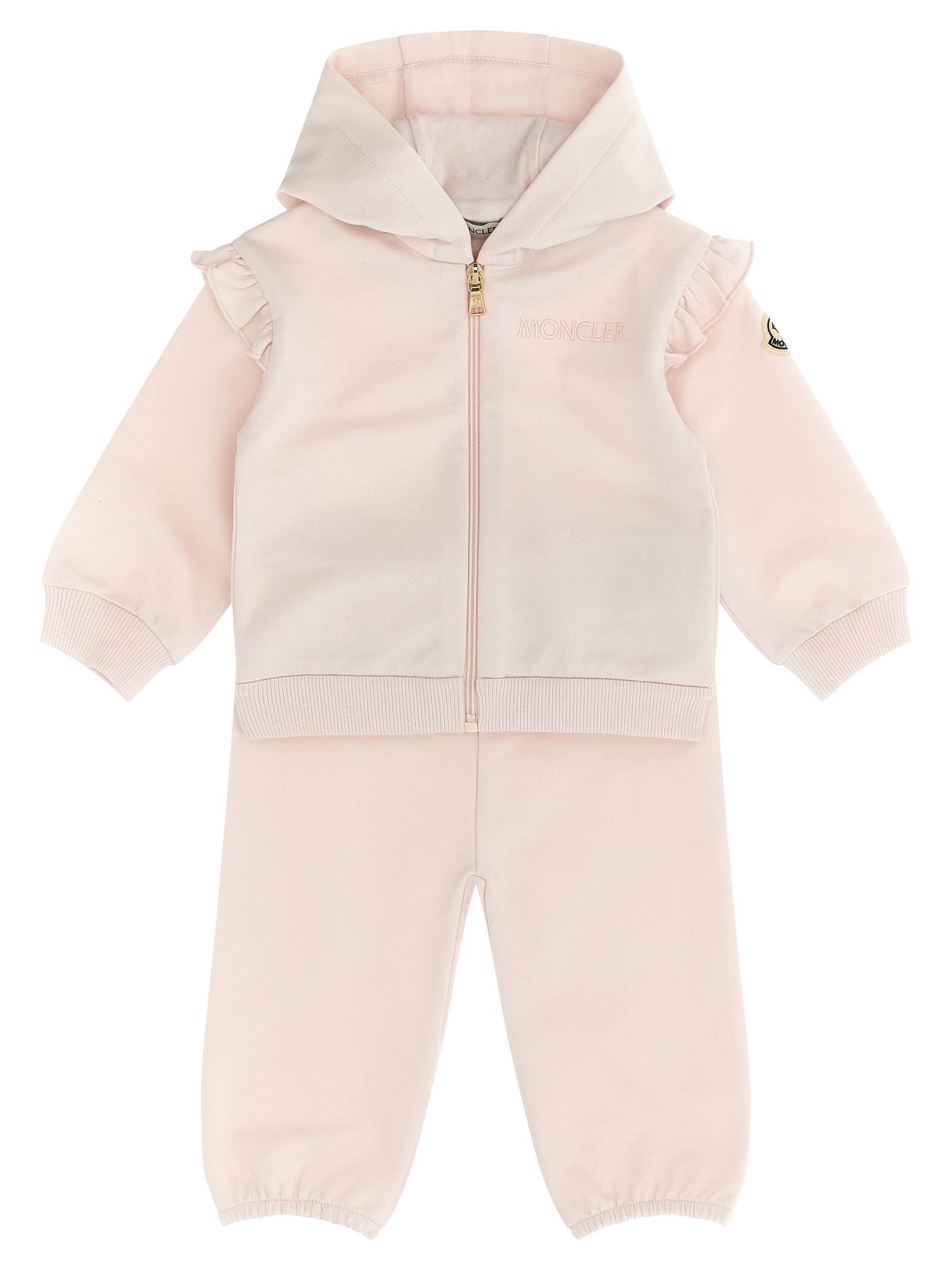 ДІТИ Костюм з бавовни з тонкими рюшами, що складається з худі, вишивки логотипу в тон та передньої застібки на блискавці, довгі рукави з манжетами, нашивка логотипу з фетру та джоггерів з еластичним поясом та еластичним подолом.