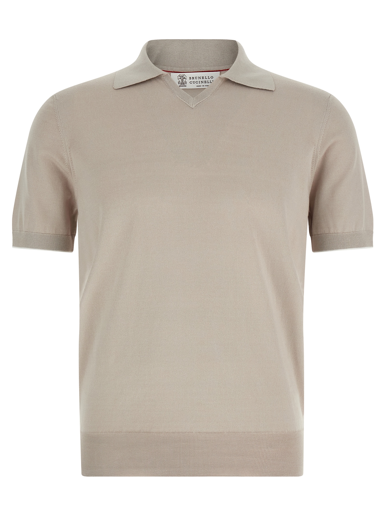 Легке бавовняне поло з коміром, V-подібним вирізом, короткими рукавами з контрастною обробкою, та стрічкою на подолі.
