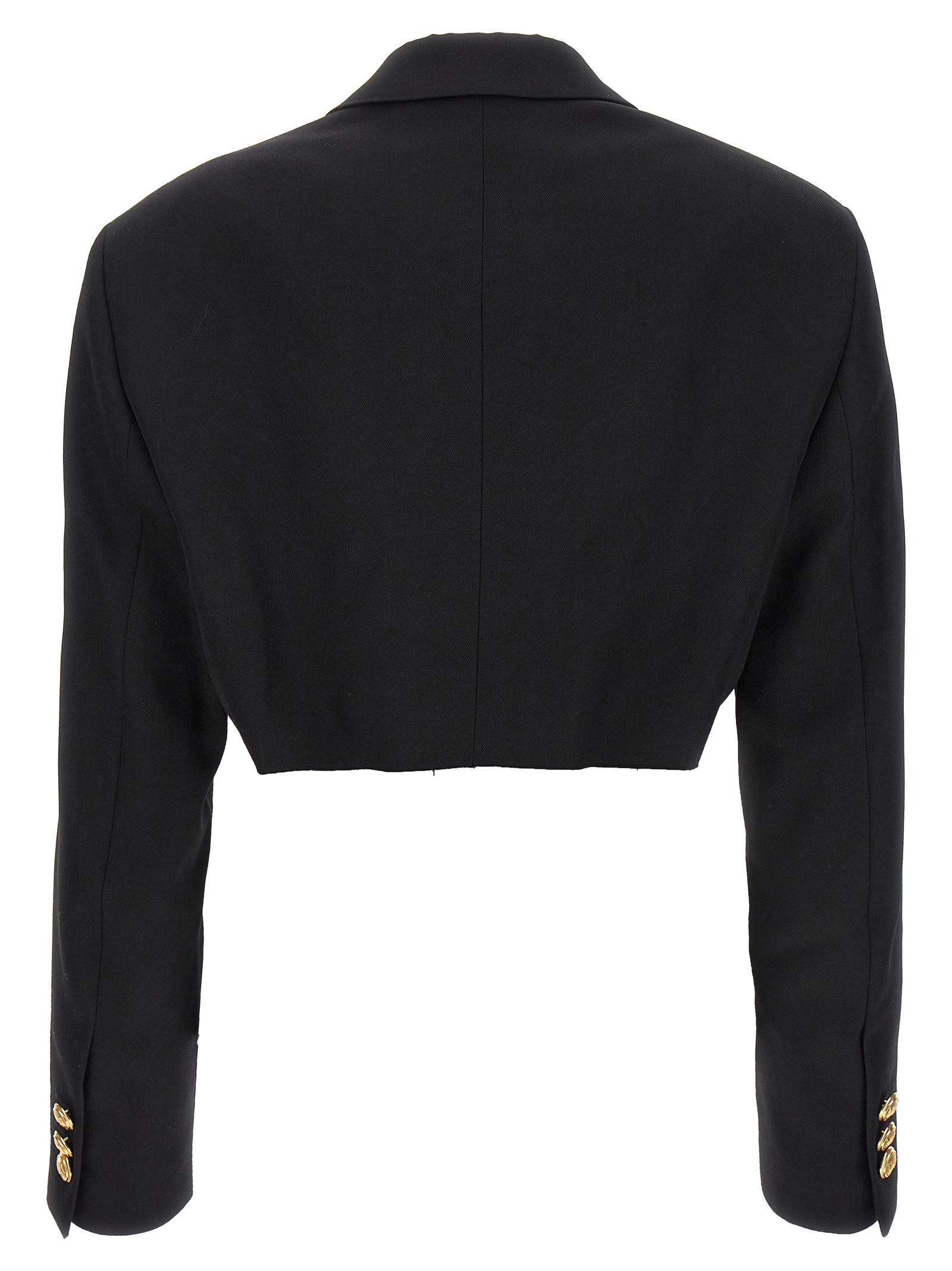 Подвійний короткий піджак з вовняної суміші з золотими гудзиками.