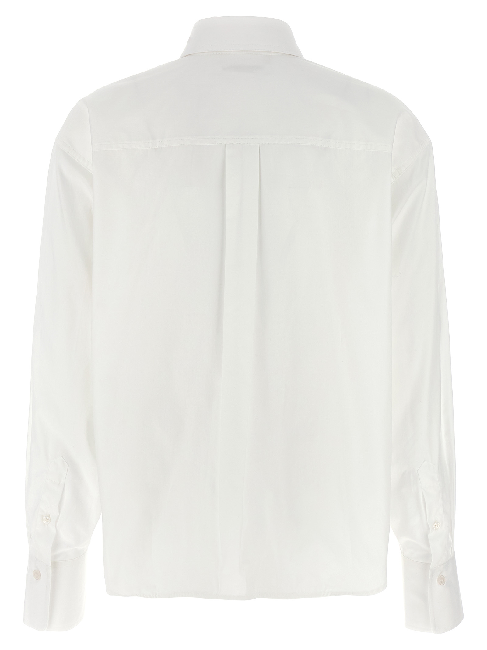 'cropped' бавовняна сорочка, передня кишеня, асиметрична довжина, передня вишивка з логотипом, довгі рукави з манжетами.