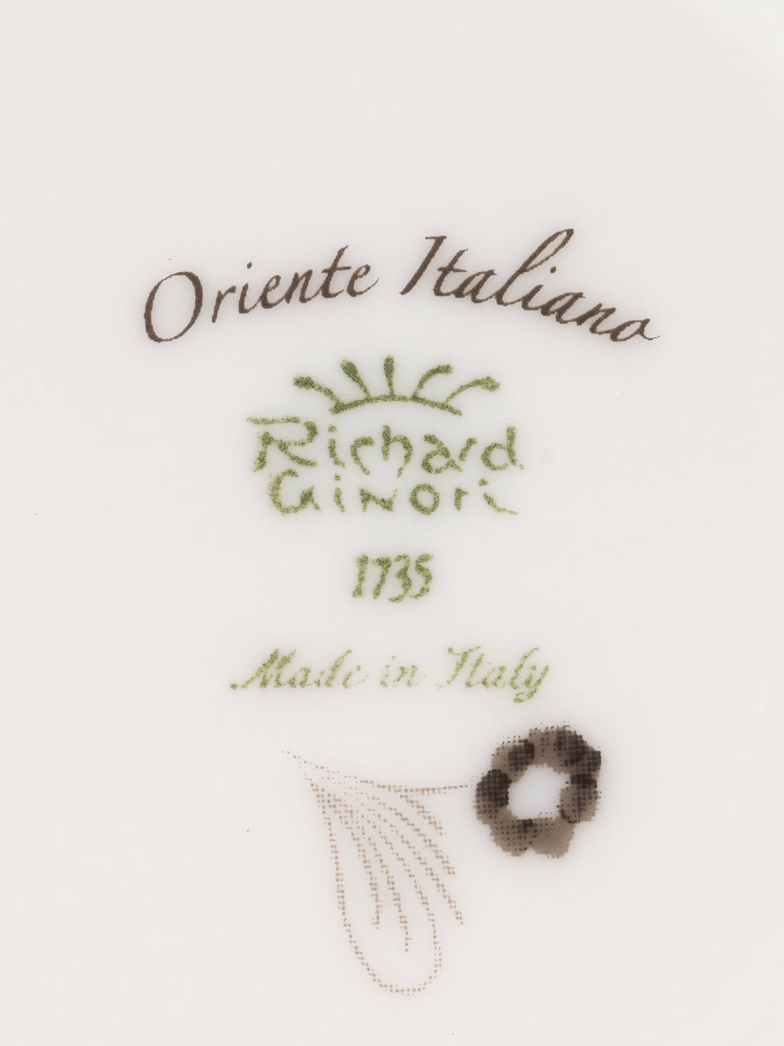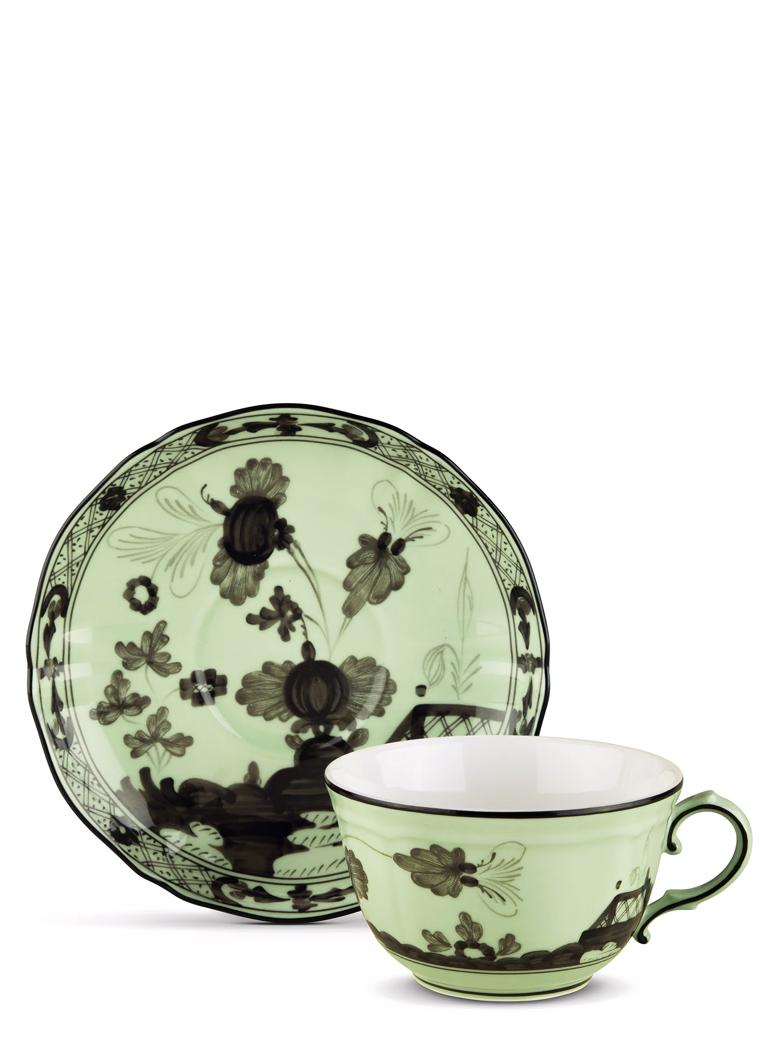 Фарфорова чайна чашка з барієм. Колекція 'Oriente Italiano', форма 'Antico Doccia' з іконічним візерунком 'a garofano'. Підходить для мікрохвильової печі. Можна мити в посудомийній машині.
