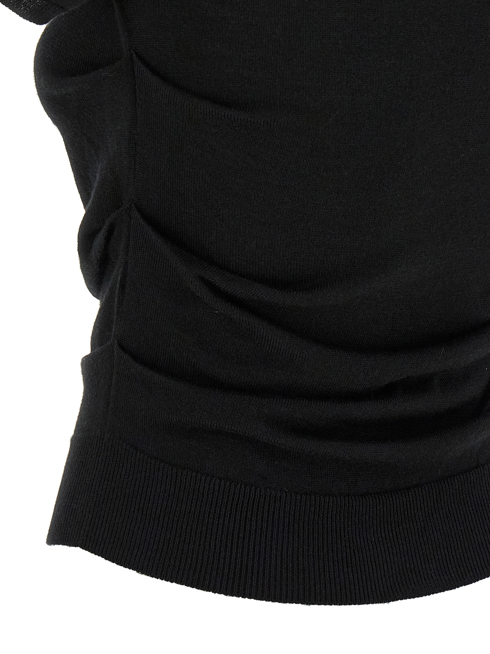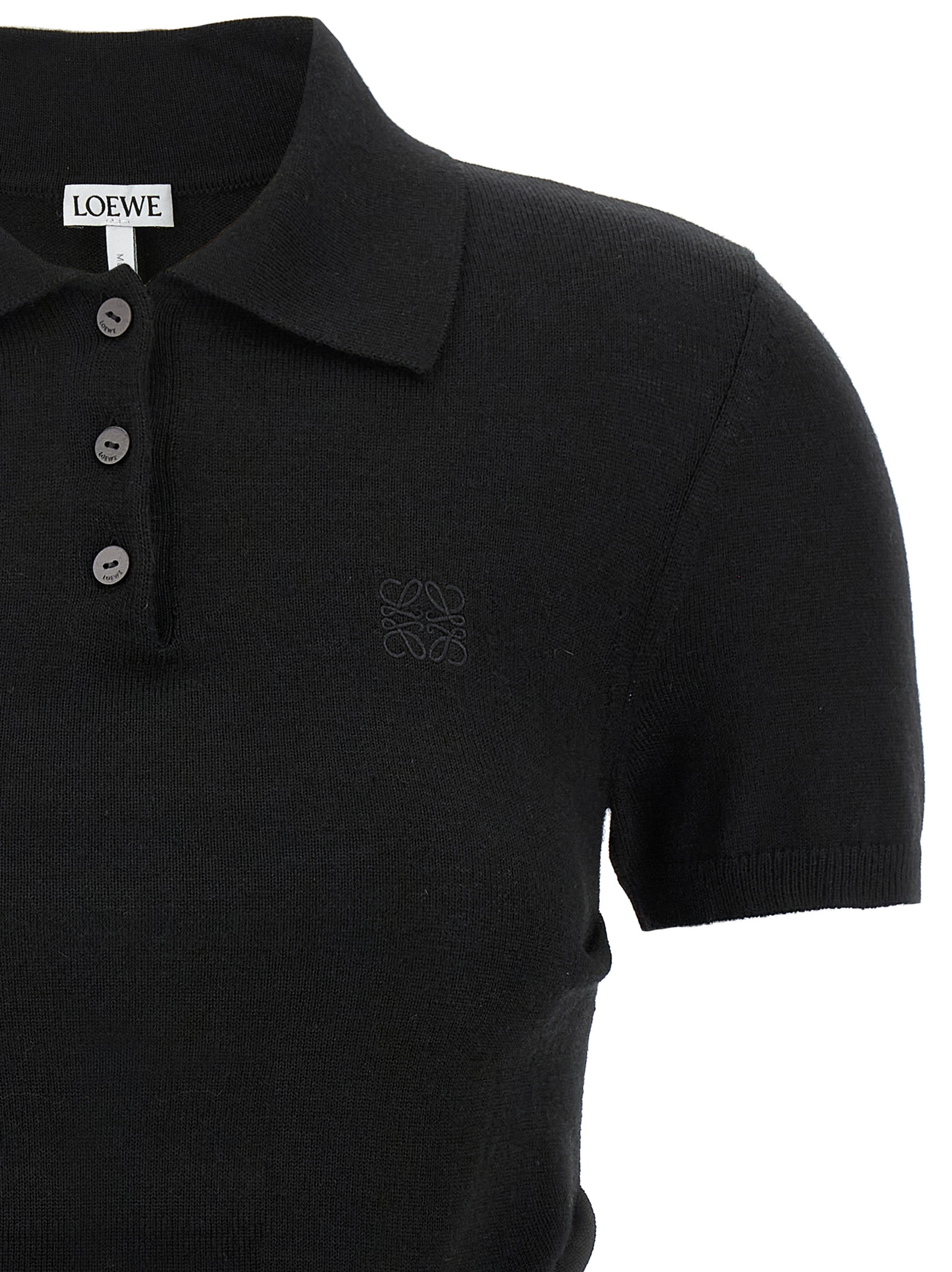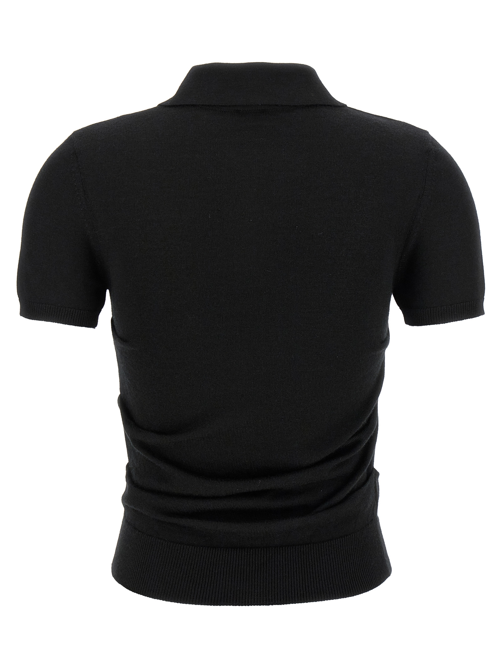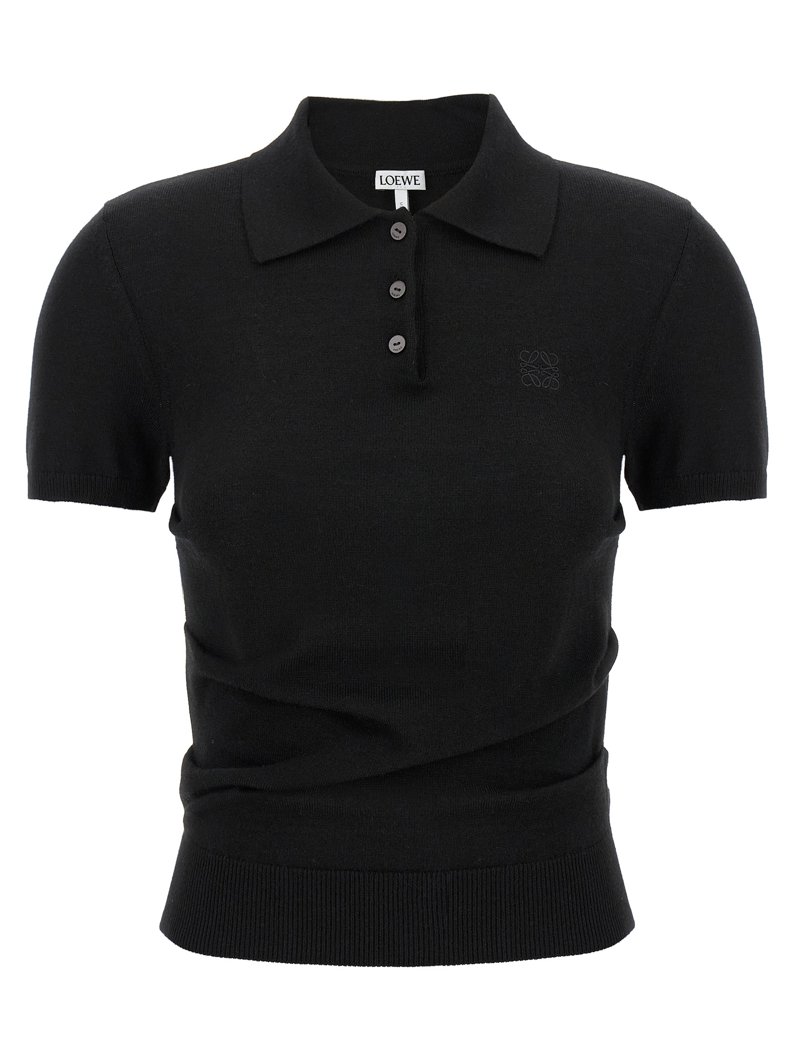 Ультралегке поло з в'язки кашеміру та шовку, вишитий логотип Anagram в тон спереду, зібрані боки, комір та гудзики, короткі рукава.