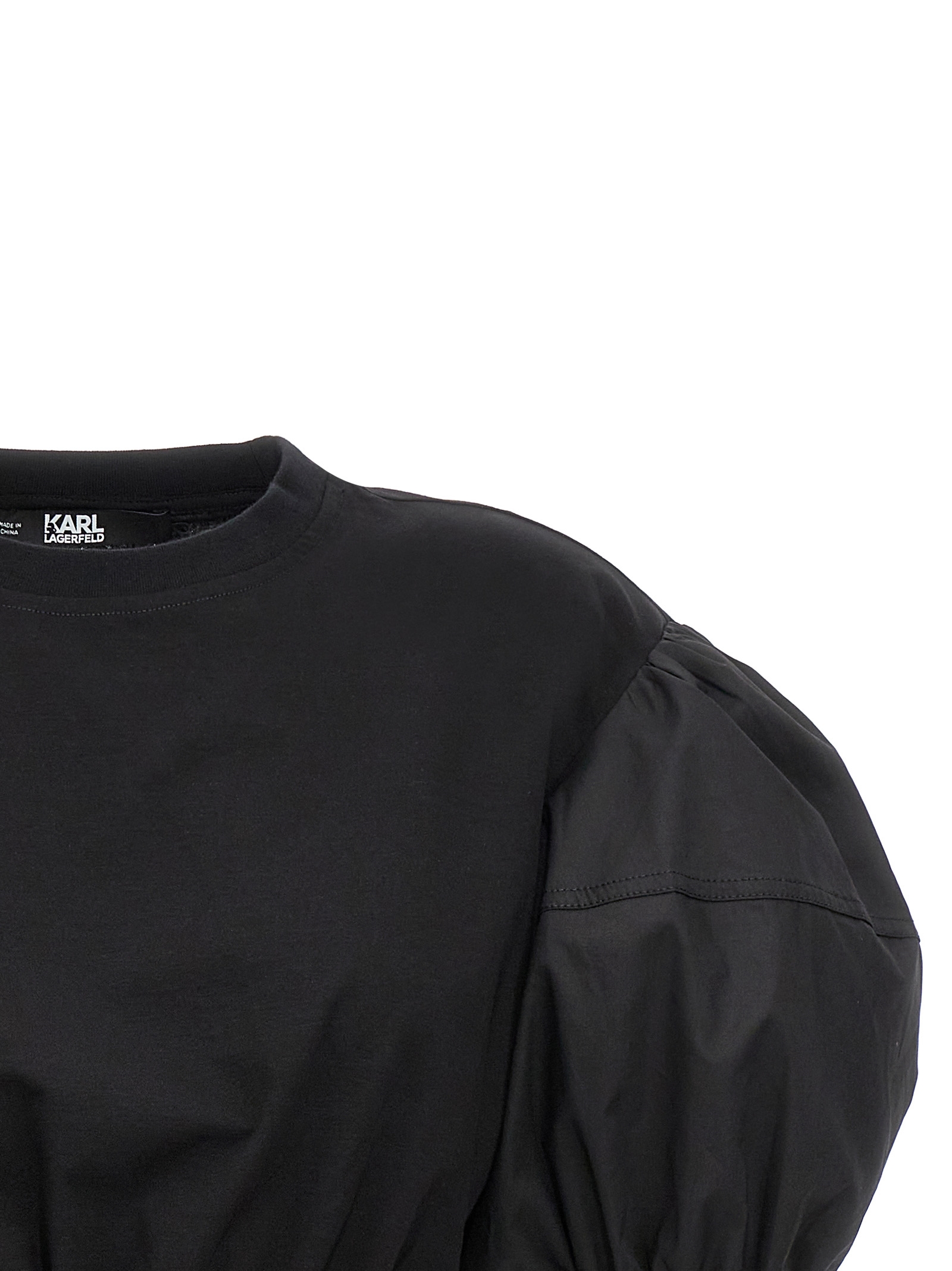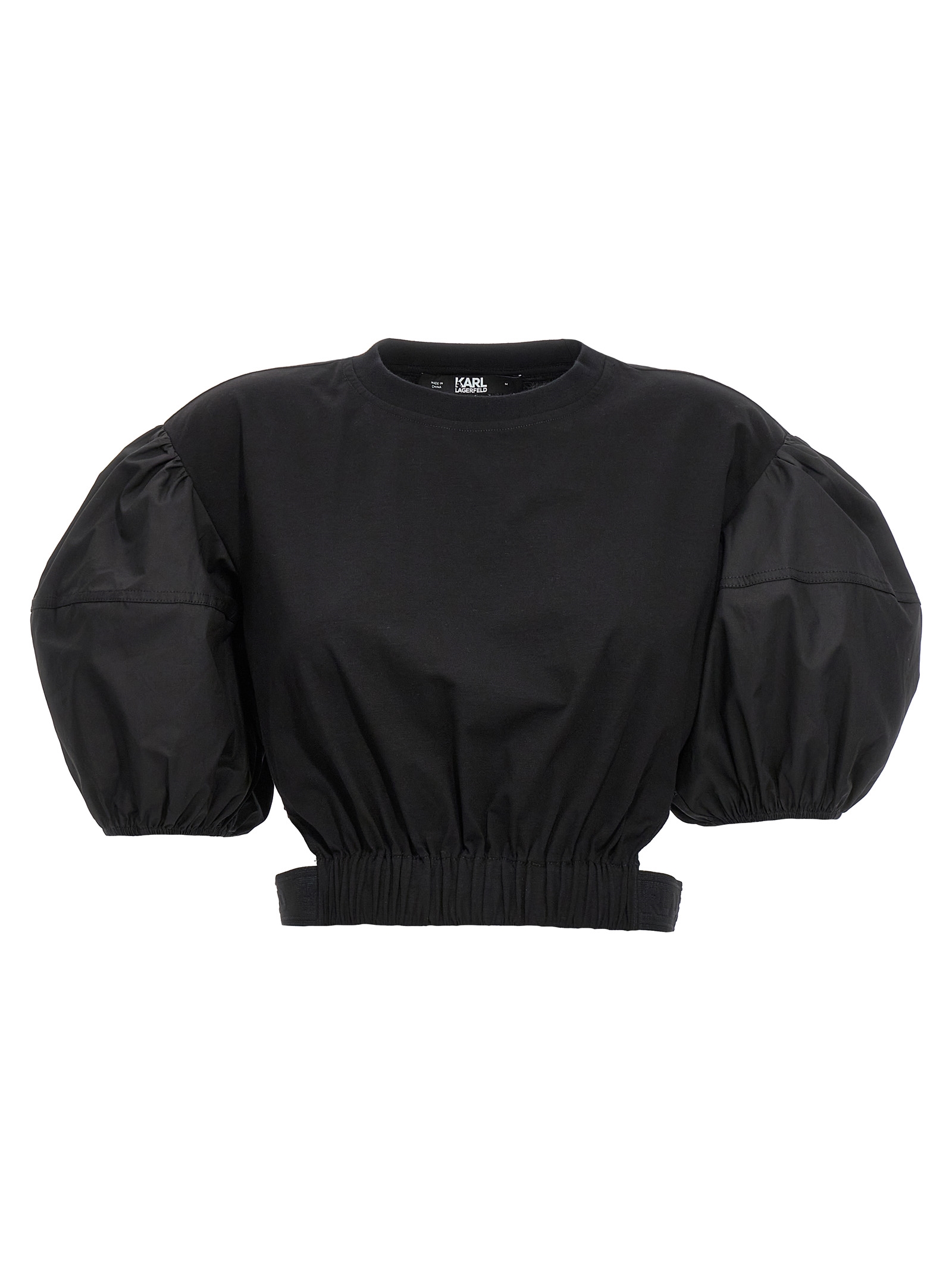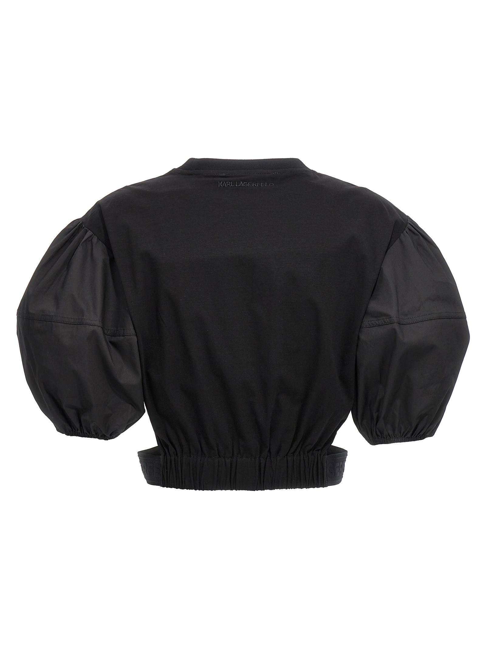 Еластична бавовняна футболка з короткими попліновими рукавами, вирізами на талії, еластичним поясом та вишивкою логотипу ззаду.