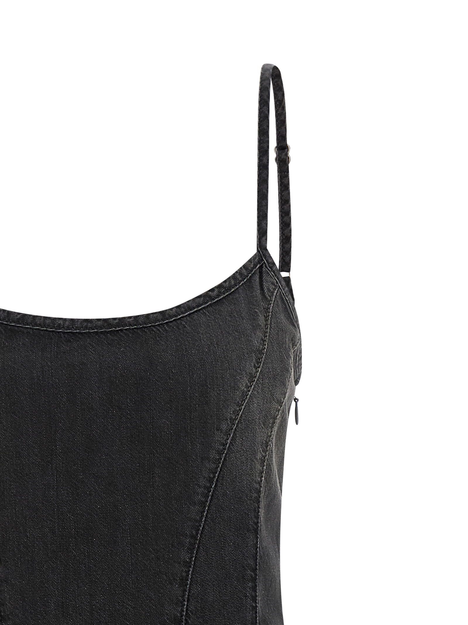 Мінісукня 'De-Spoky-S' з бавовняного деніму та TENCEL™ Lyocell з обробкою stonewashed, конструкція з панелей, пишна спідниця, тонкі регульовані бретелі, округлий виріз спереду і ззаду, вишивка логотипу у вигляді овального вирізу D на спинці, бічна блискавка.