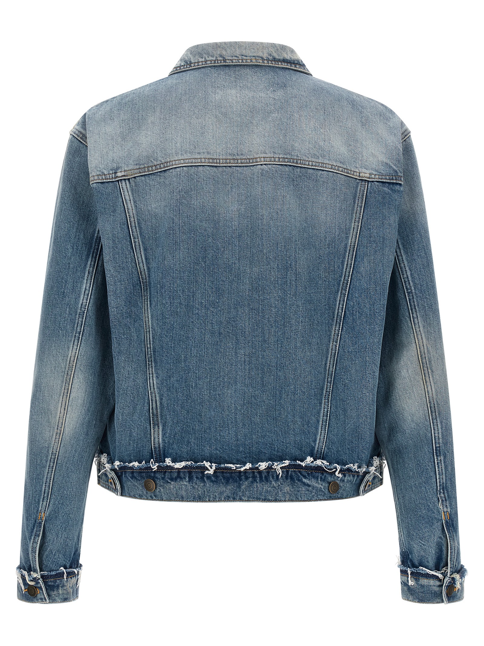 Джинсова куртка з ефектом використання з бавовни з коміром сорочки, передньою застібкою на гудзиках, необробленими деталями, довгими рукавами з манжетами.