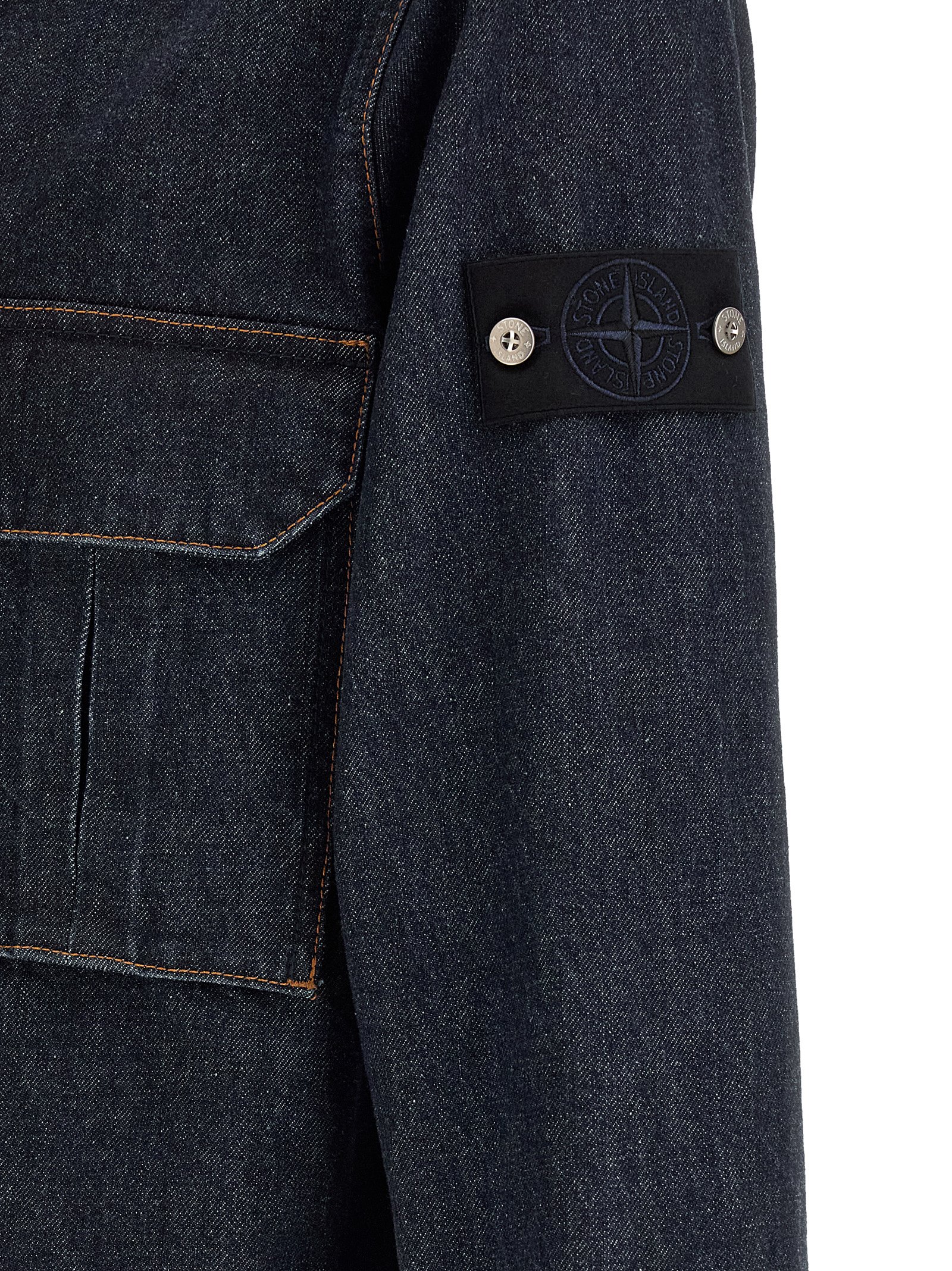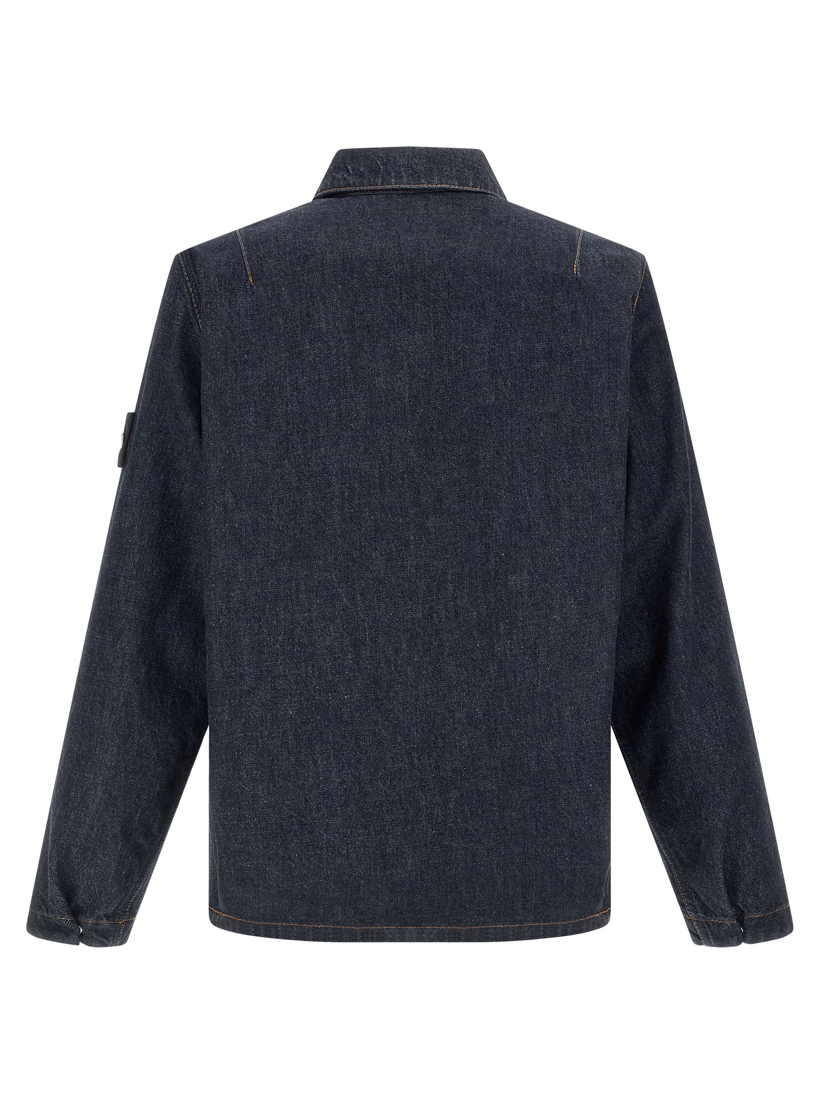 Бавовняна джинсова сорочка з контрастною строчкою, застібка на блискавці спереду, кишеня на грудях, довгі рукави з манжетами та тонка нашивка з логотипом.