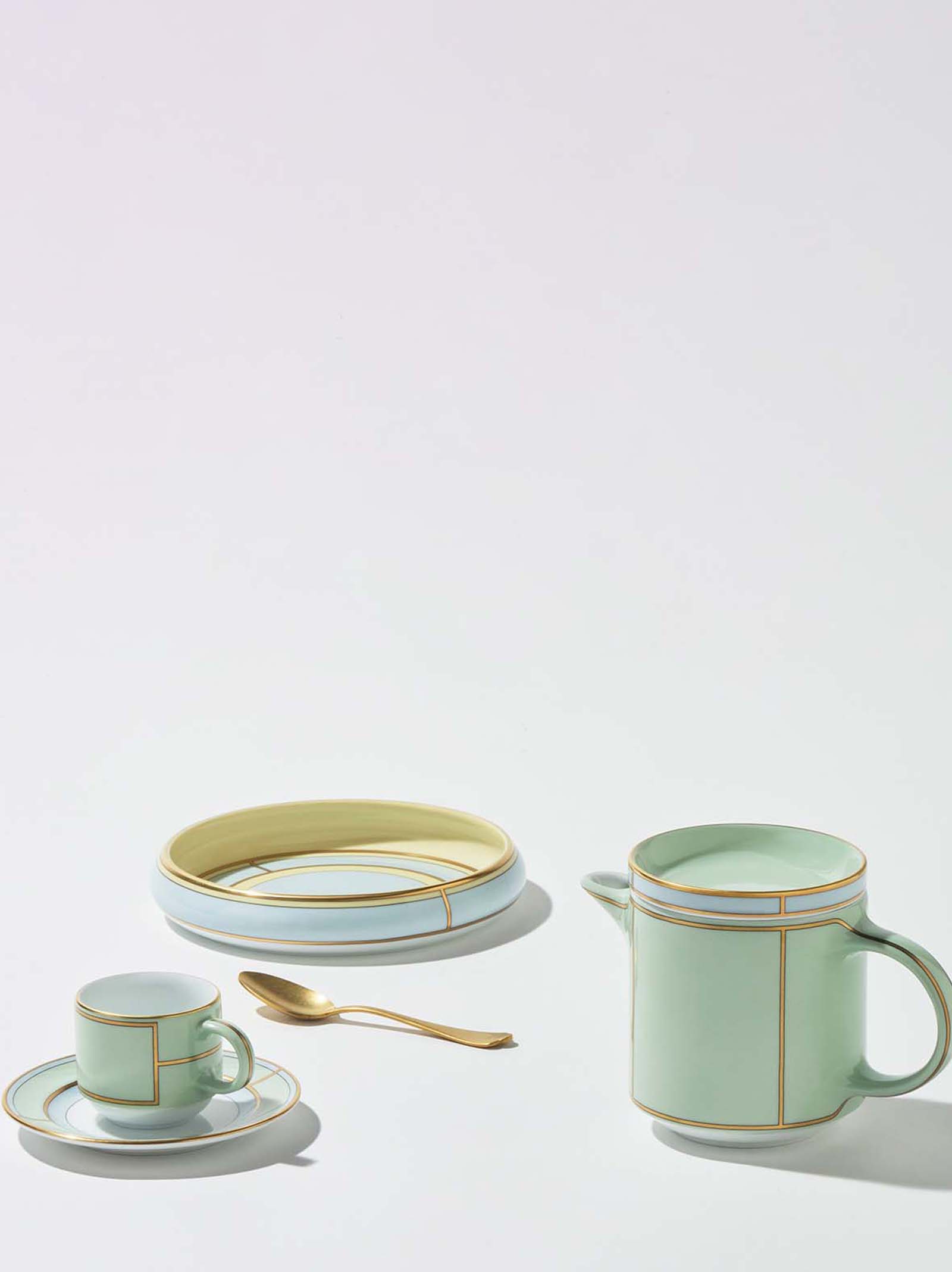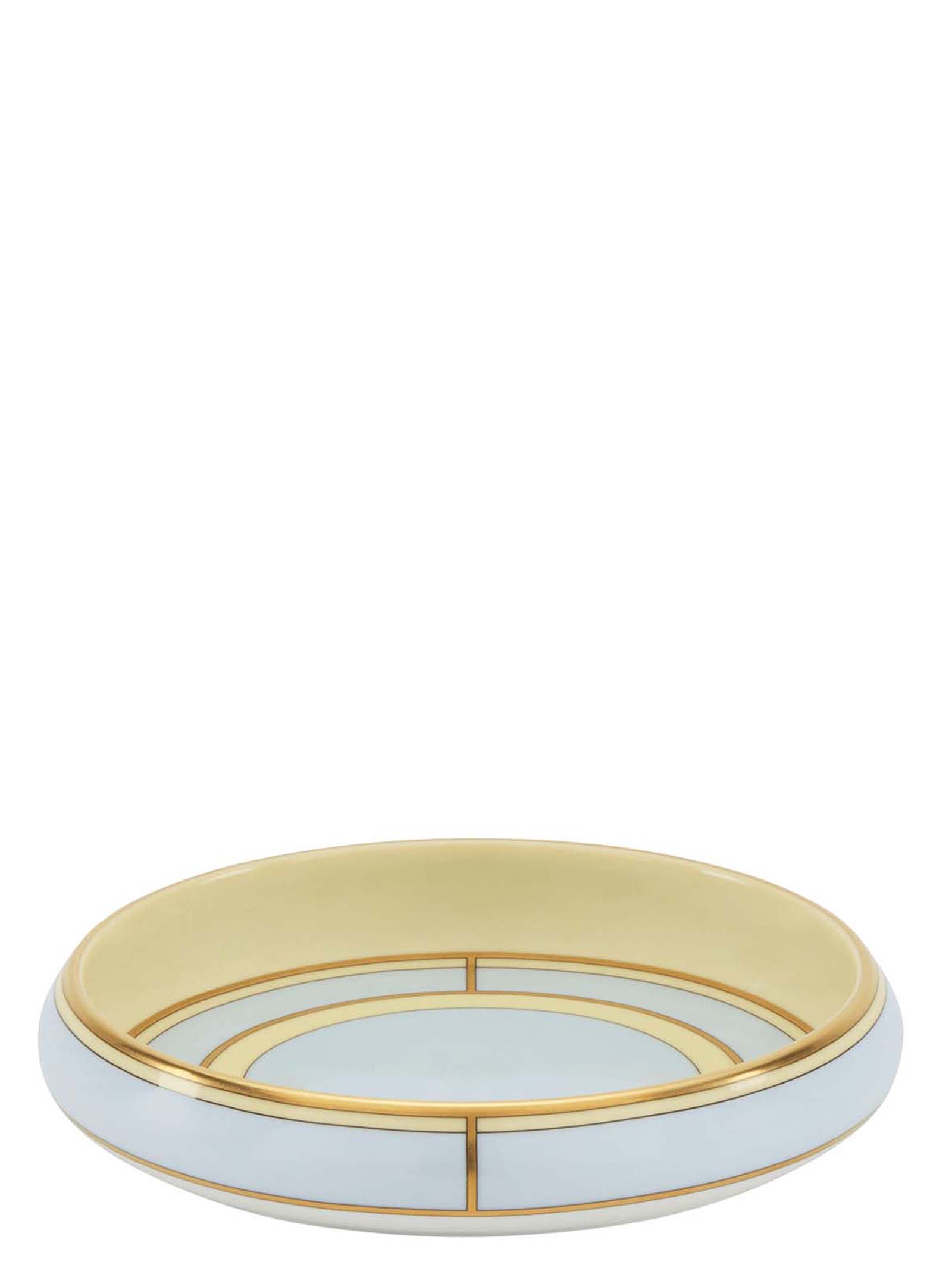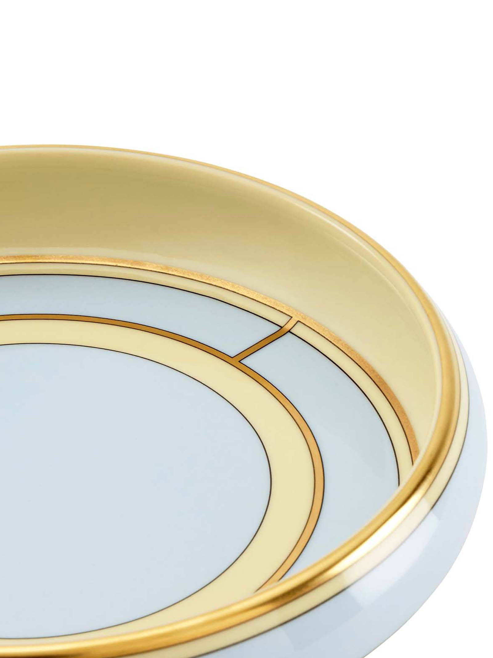 Круглий порцеляновий лоток для приладдя з блакитно-світлим і золотою декоративною обробкою.