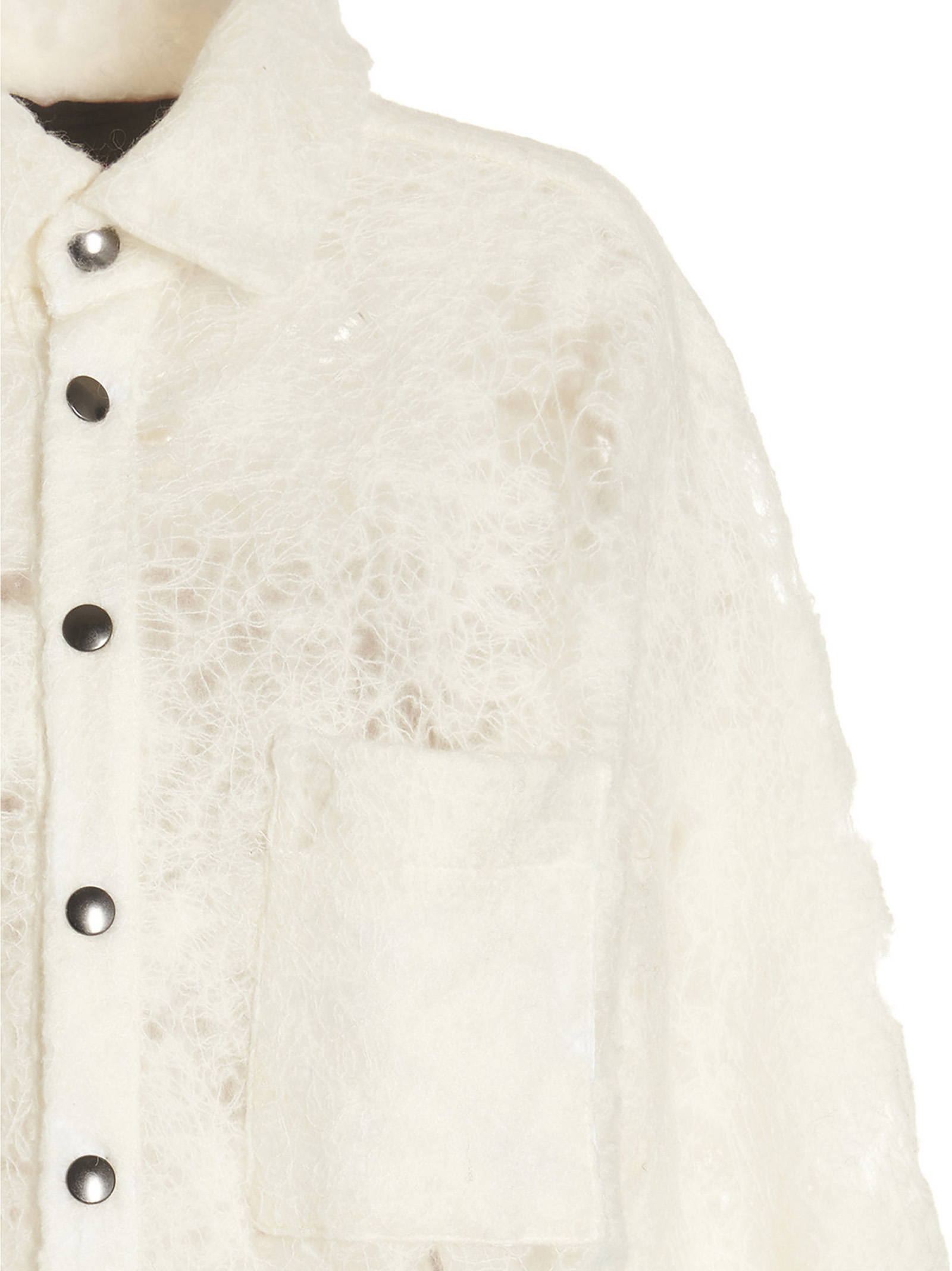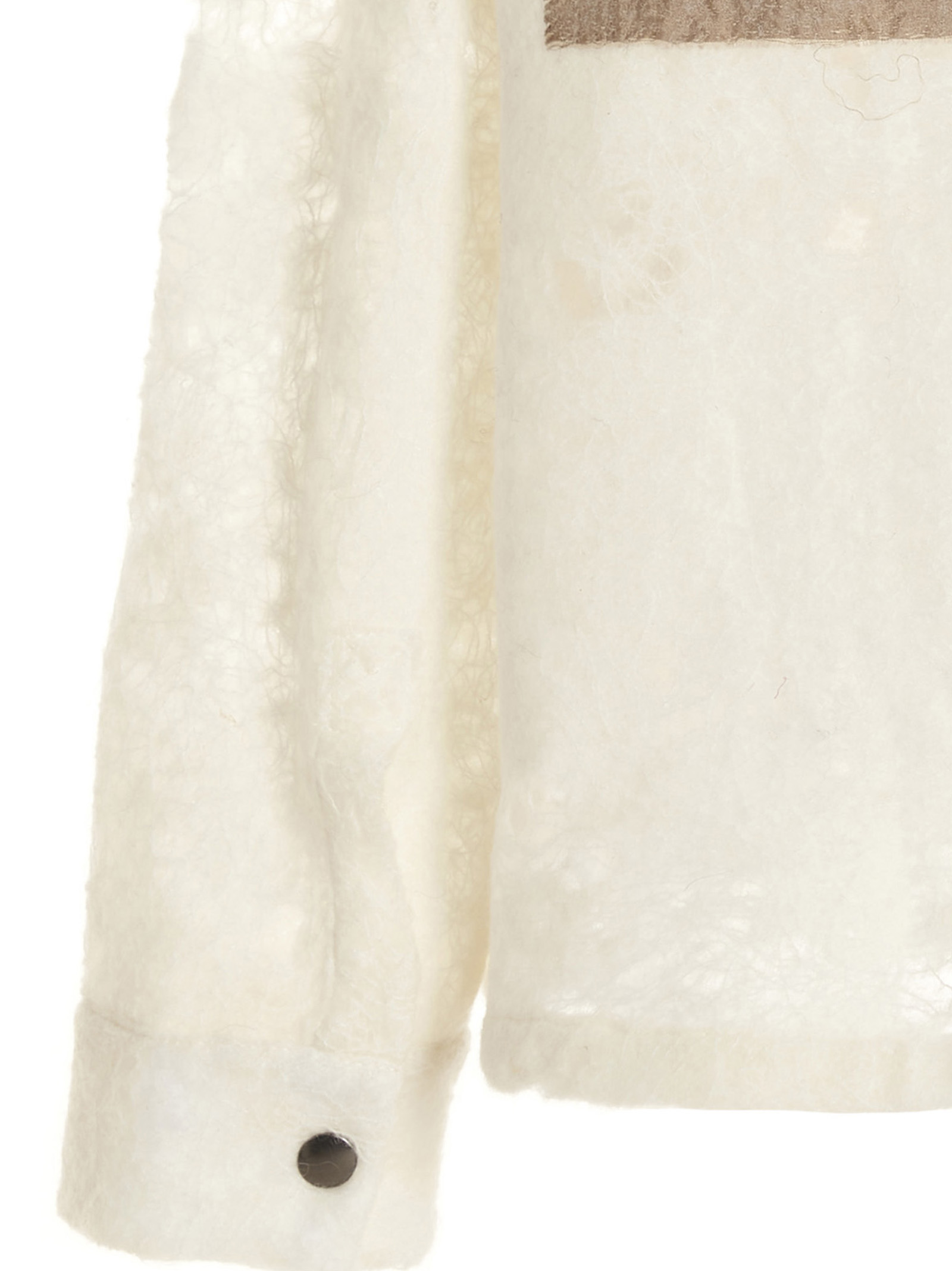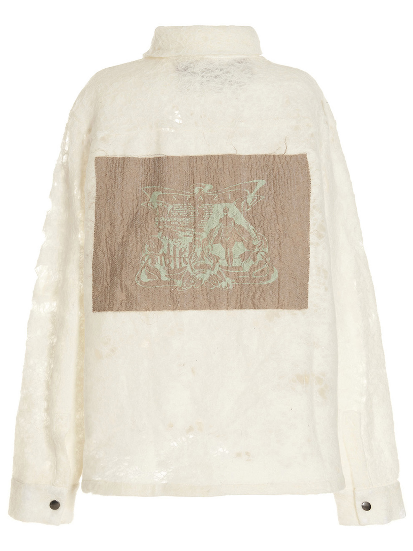 Doomboh Patch Worker' сорочка з вовняного змішування з застібкою на ґудзиках, кишенею та графічною нашивкою на спині. JULIAN SUSTAINABLE: Цей продукт виготовлений з регенерованих матеріалів, може мати деталі, знаки, дірки та відмінності між одним виробом та іншим. Ці особливості не вважаються характеристиками виробництва, а характеристиками матеріалів і знаком цінності та класифікації.