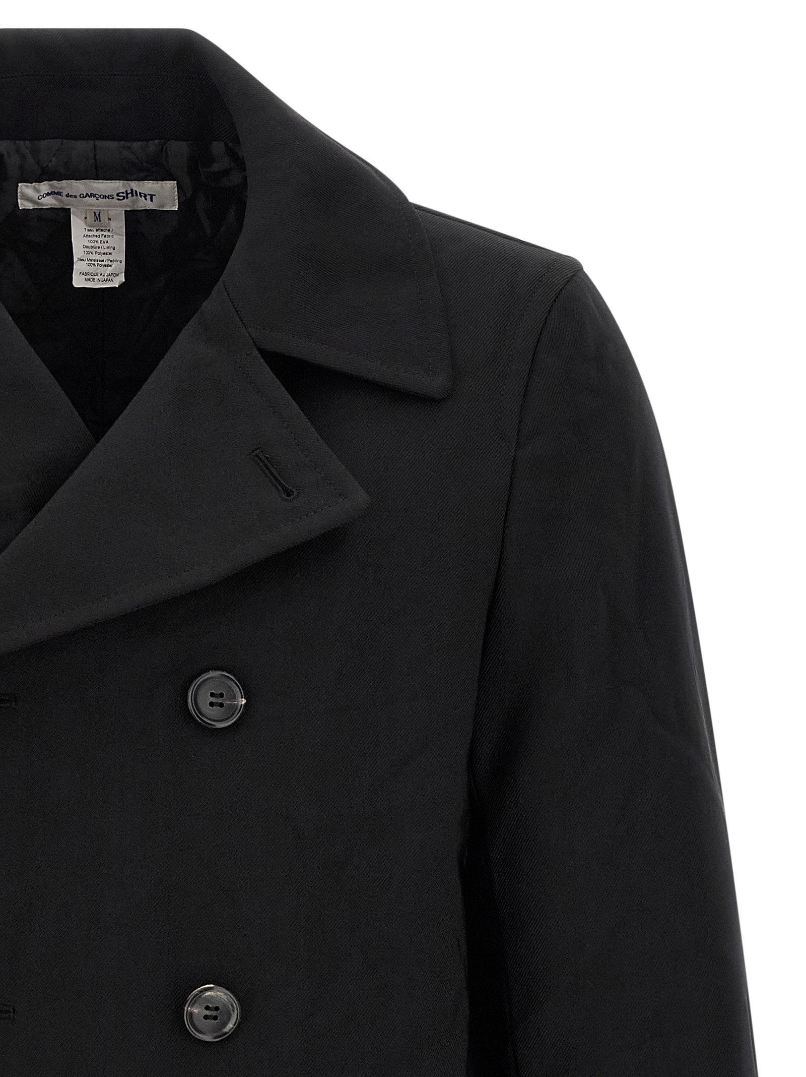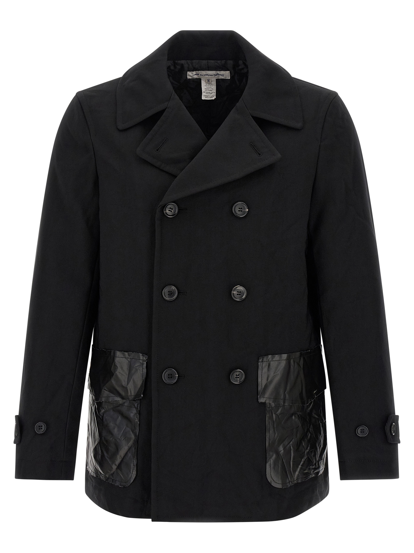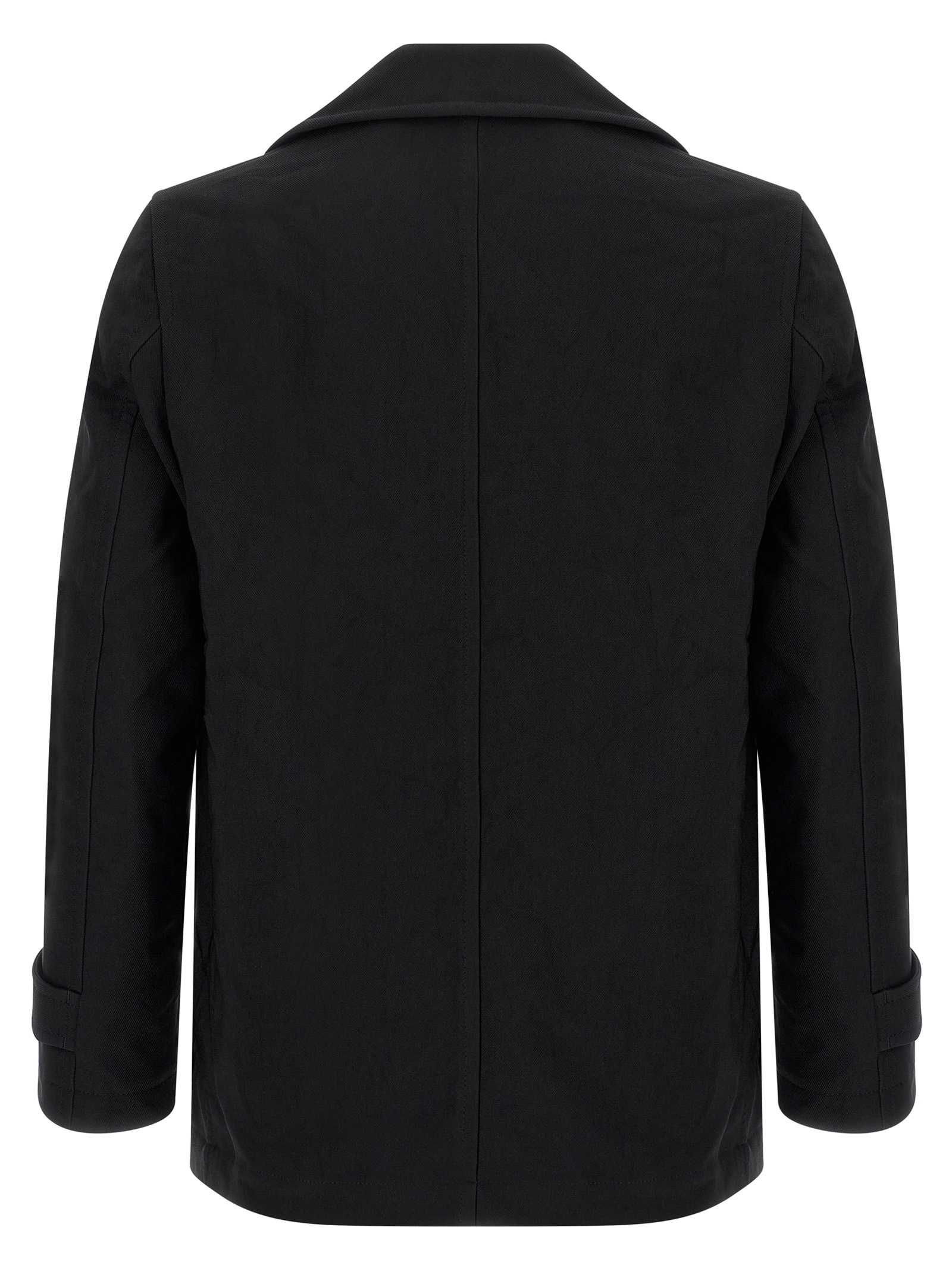 Двобортна кабан з канвасу з вшитою та злегка утепленою підкладкою, спереду накладні кишені з необробленої гумової тканини.