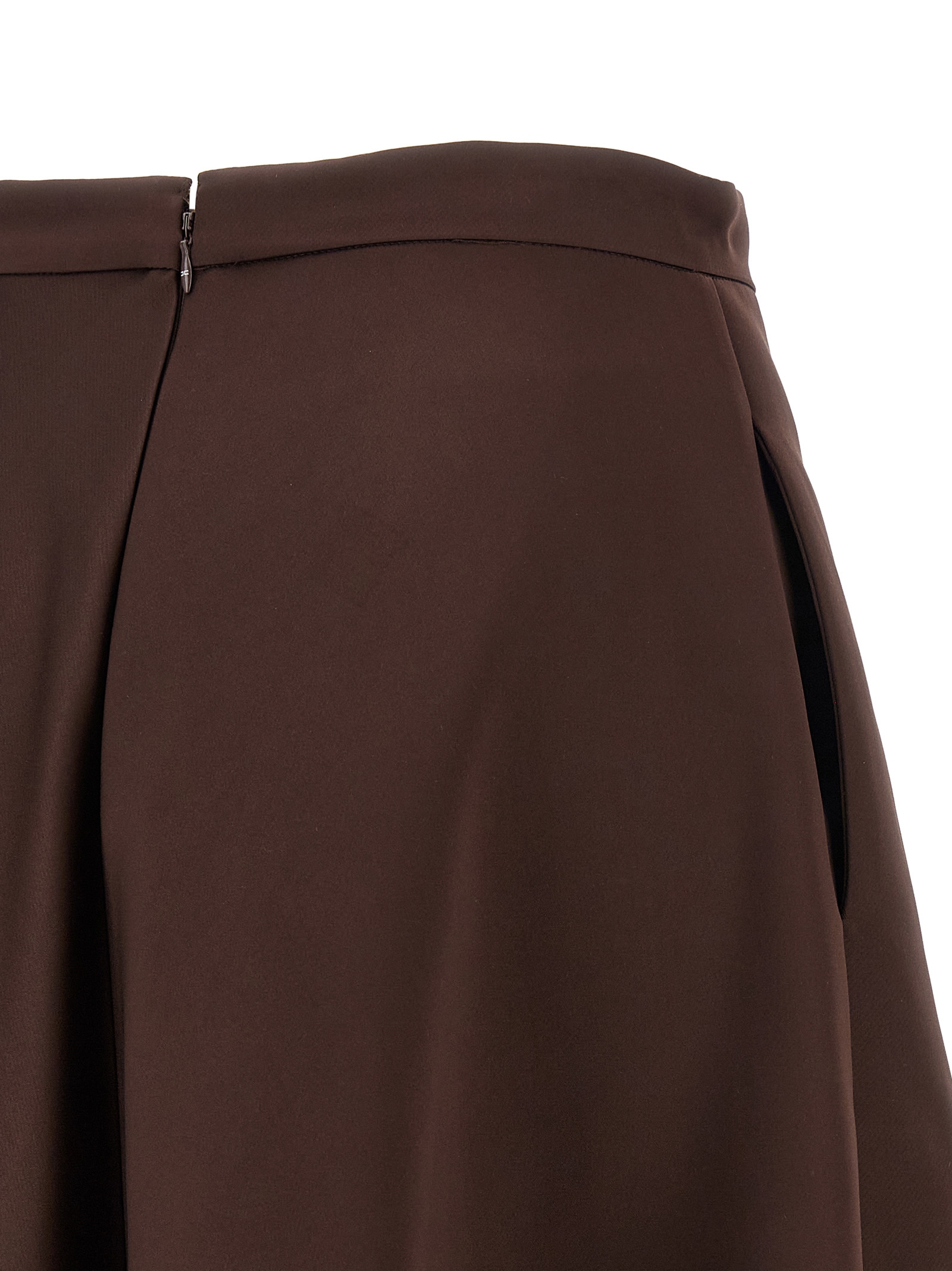 Duchesse midi спідниця, передній металевий логотип, розкльошений силует, кишені, задня застібка на блискавці.