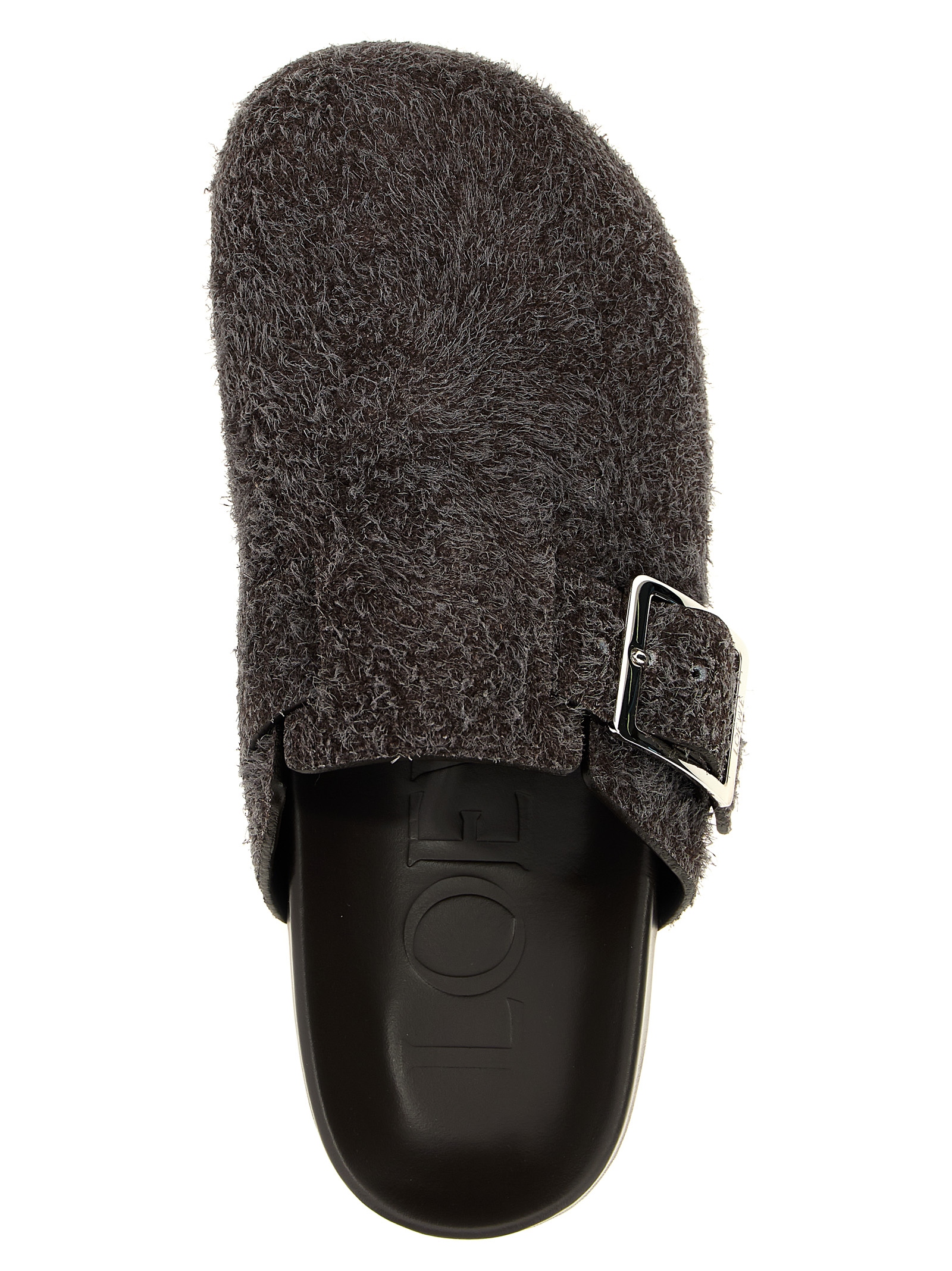 'Ease Buckle' шкіряні сабо з обробкою з замші, регульований ремінь з іконічною квадратною пряжкою, ергономічна контурна шкіряна устілка, гумова підошва.
