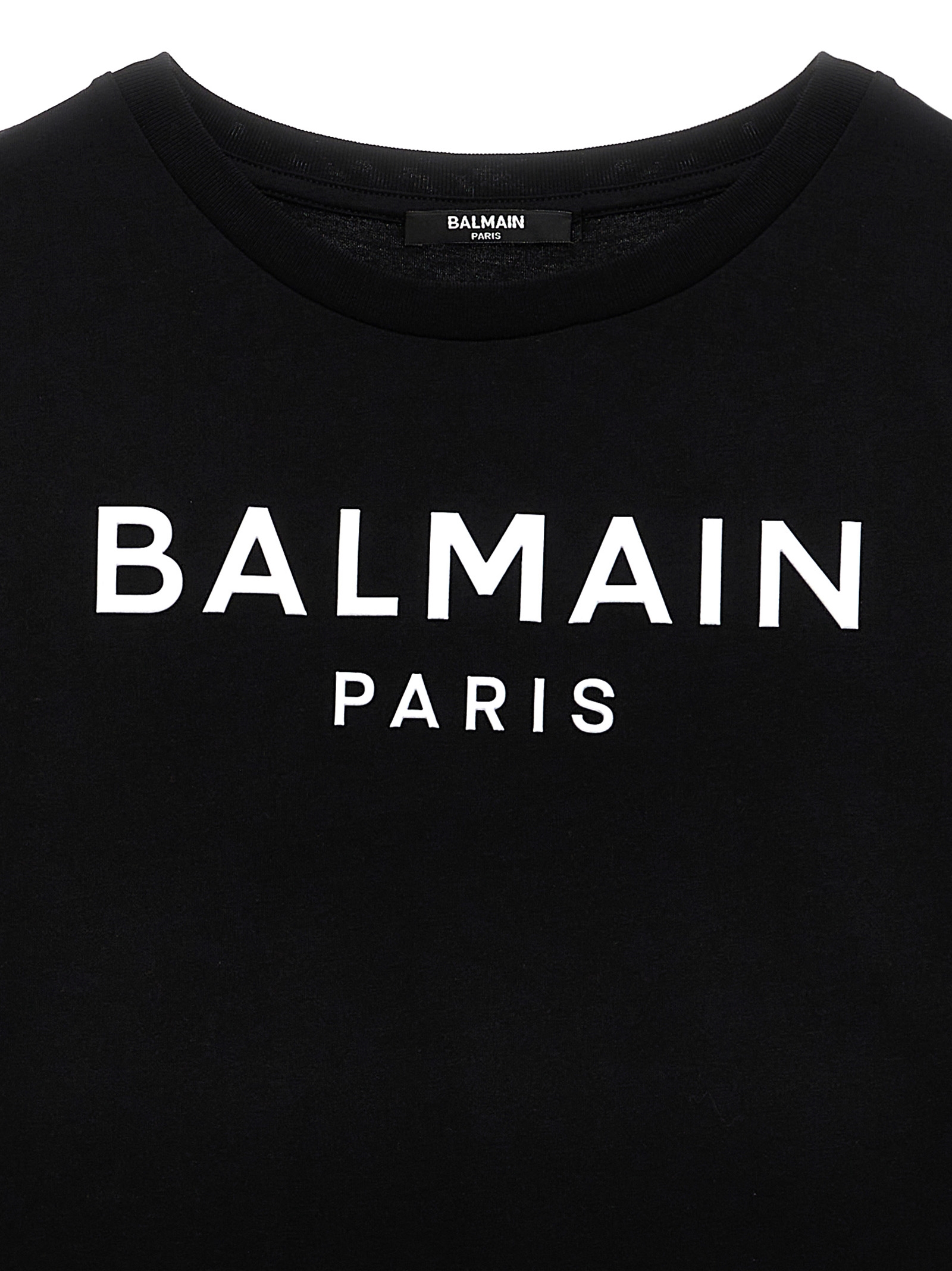 ДІТИ Бавовняна футболка з тисненим логотипом спереду, укорочена модель, круглий виріз, короткі рукави.