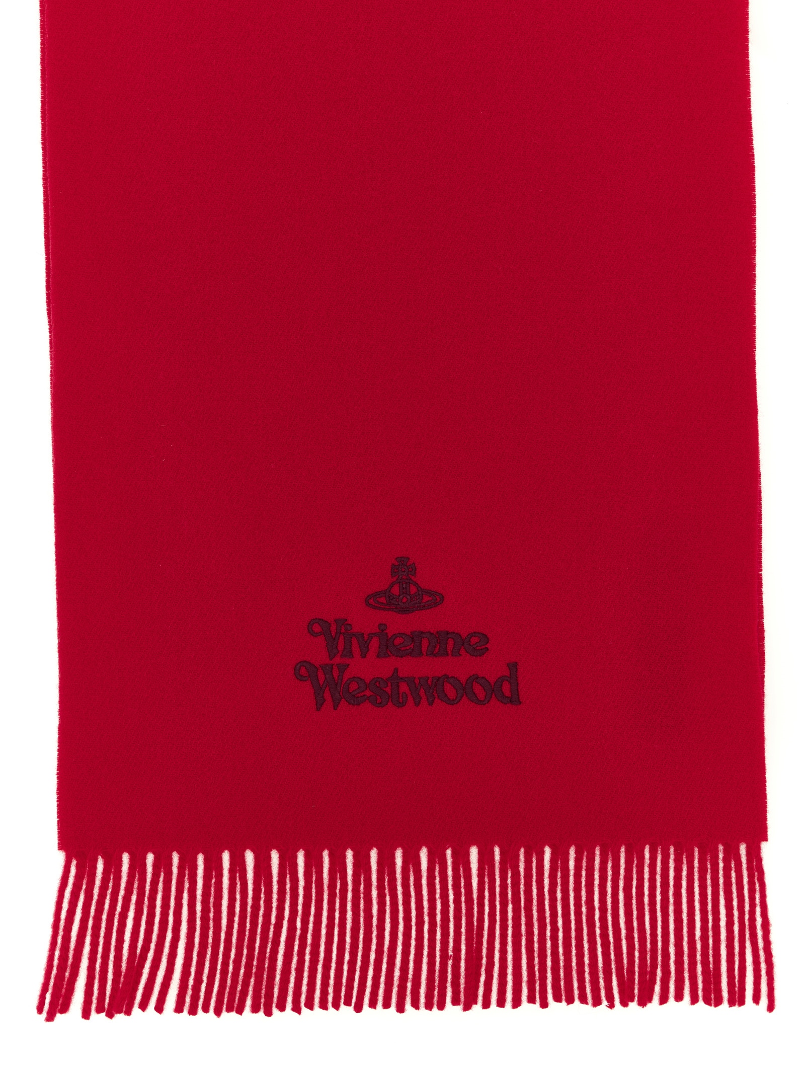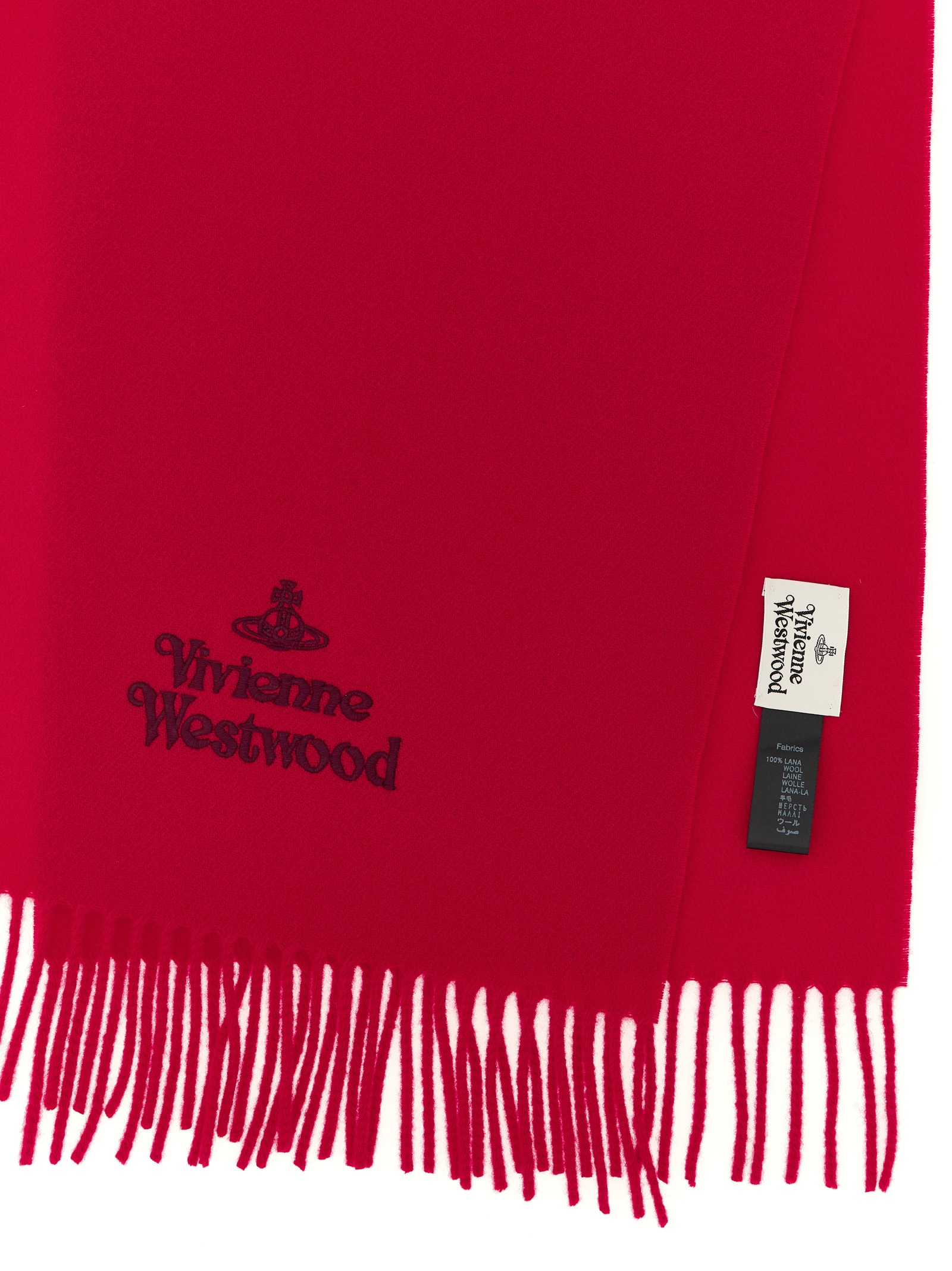 'Embroidered' шарф з тонкої вовни, контрастна вишивка логотипу, бахрома по краях.