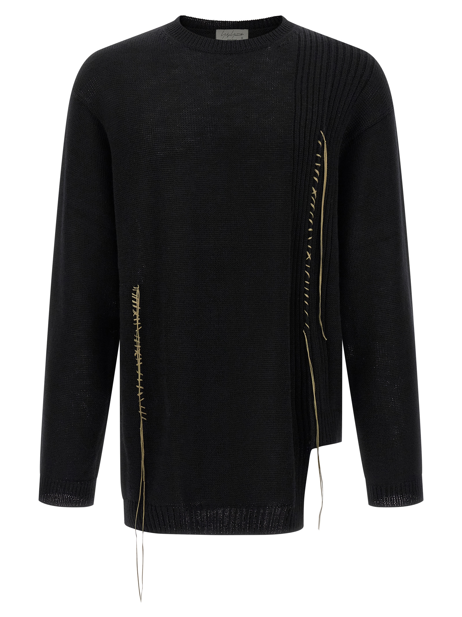 Вовняний светр з контрастною вишивкою, круглий виріз, довгі рукави з манжетами та спущеними плечима, асиметричний поділ з бічним розрізом.