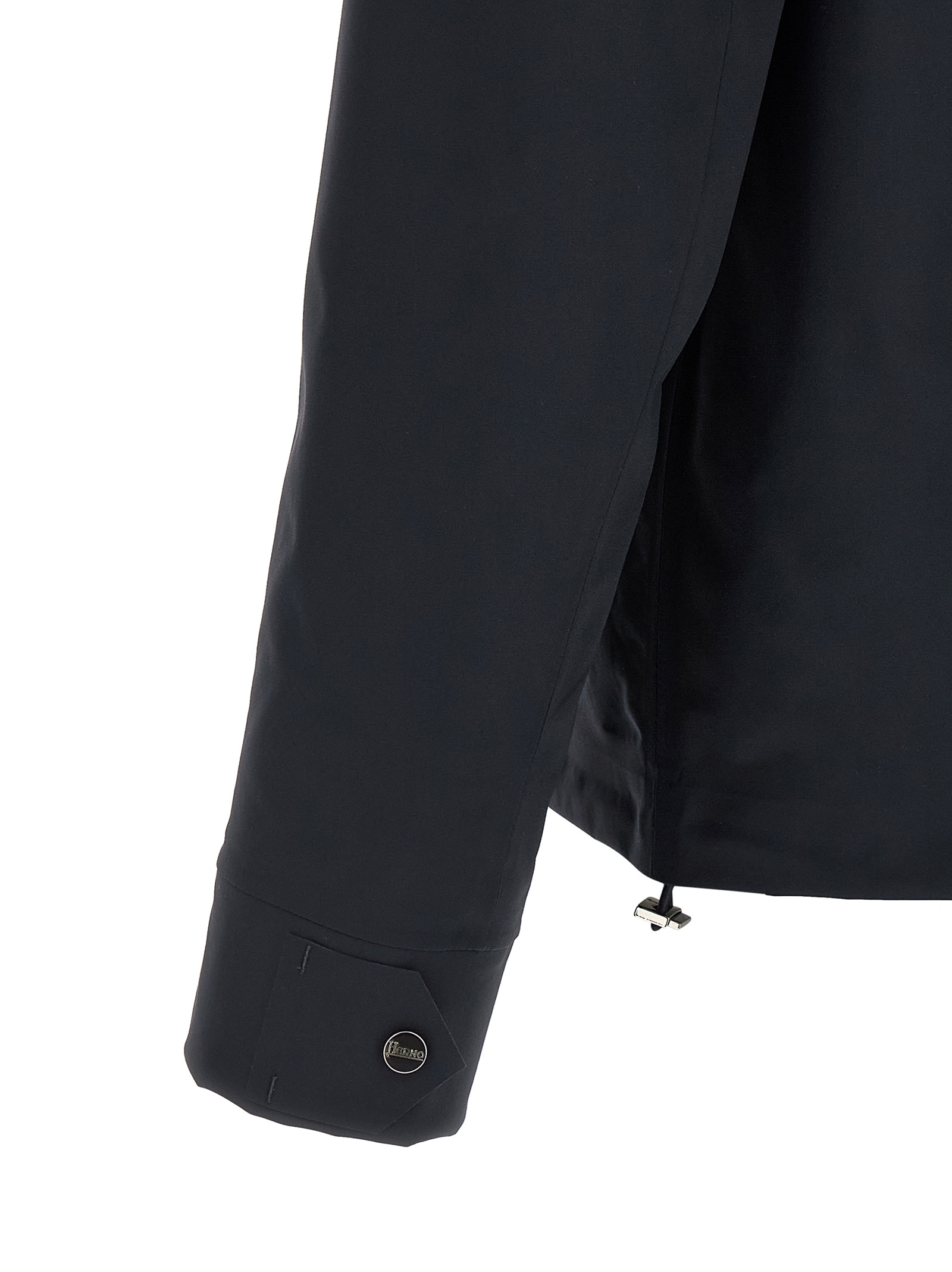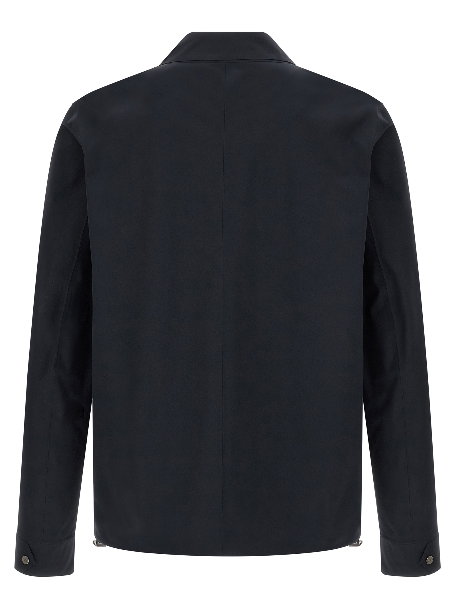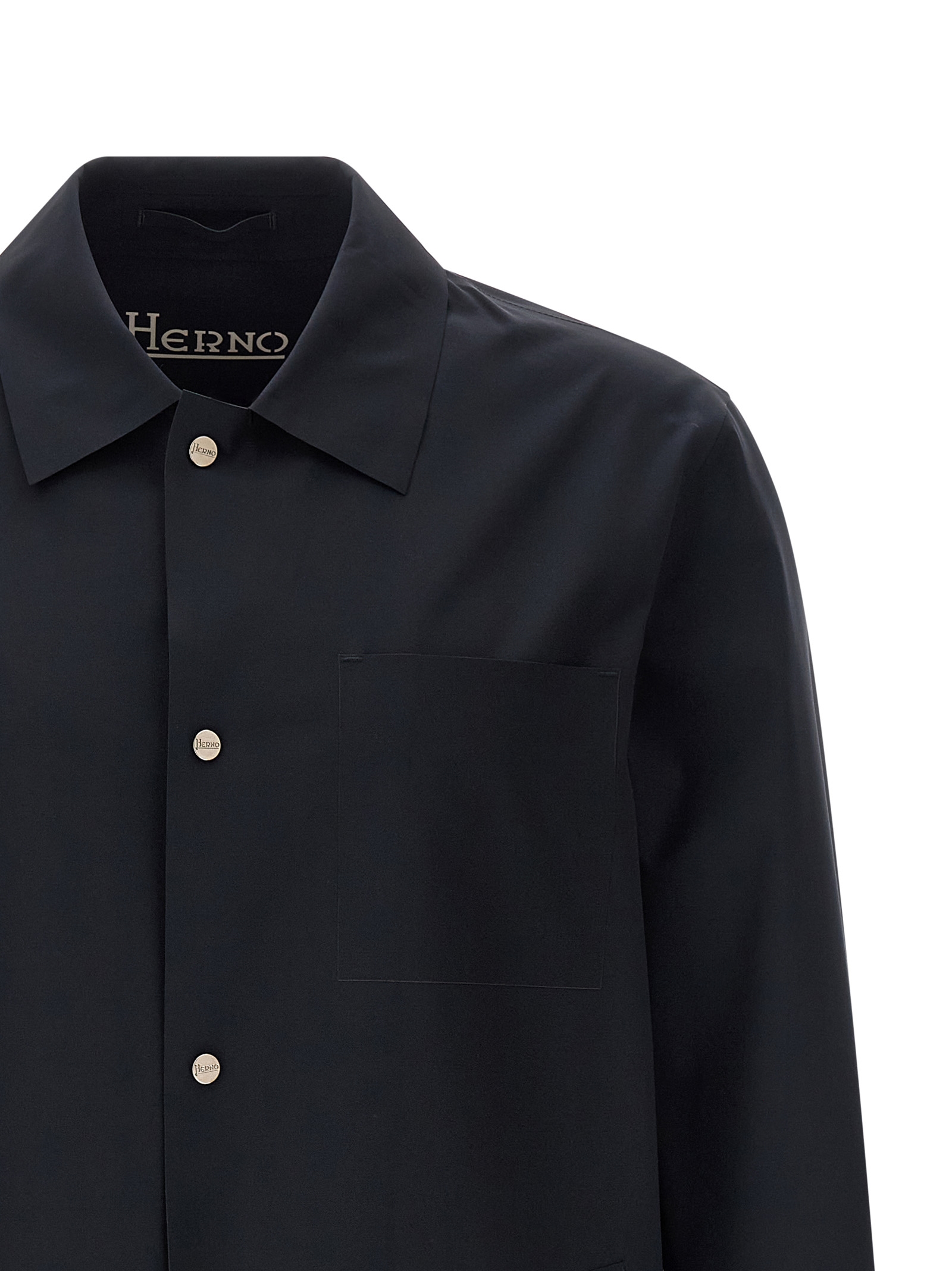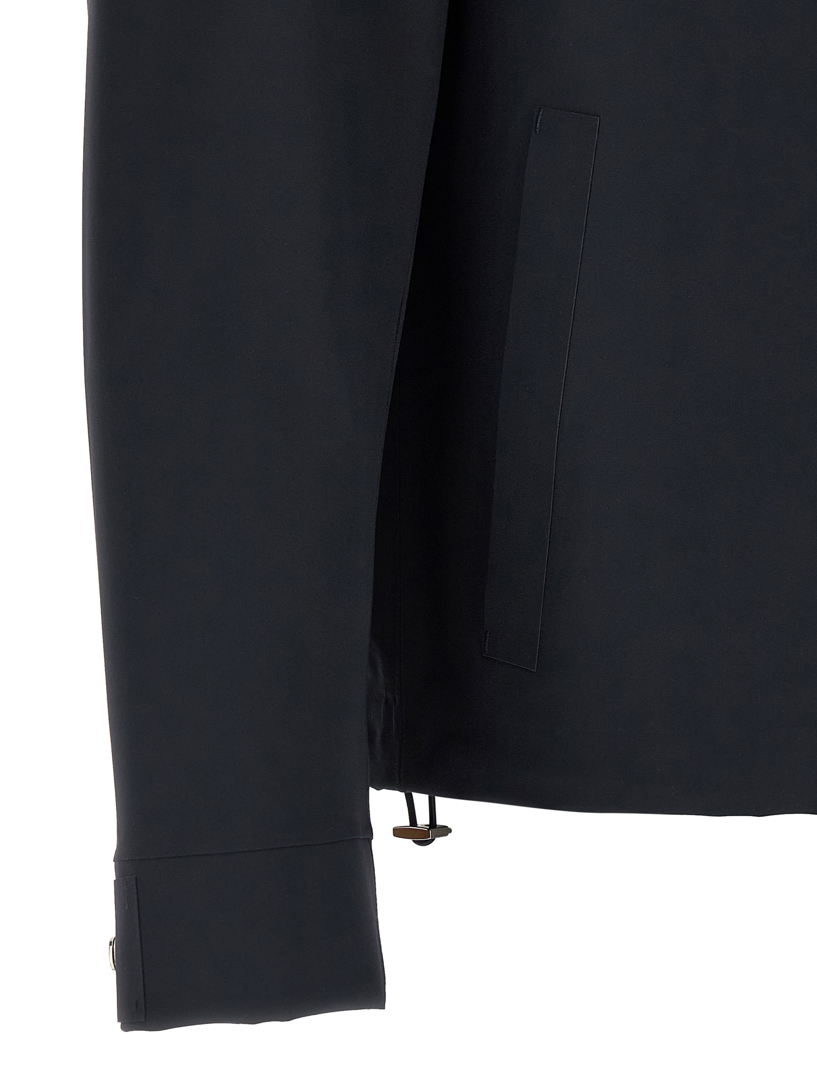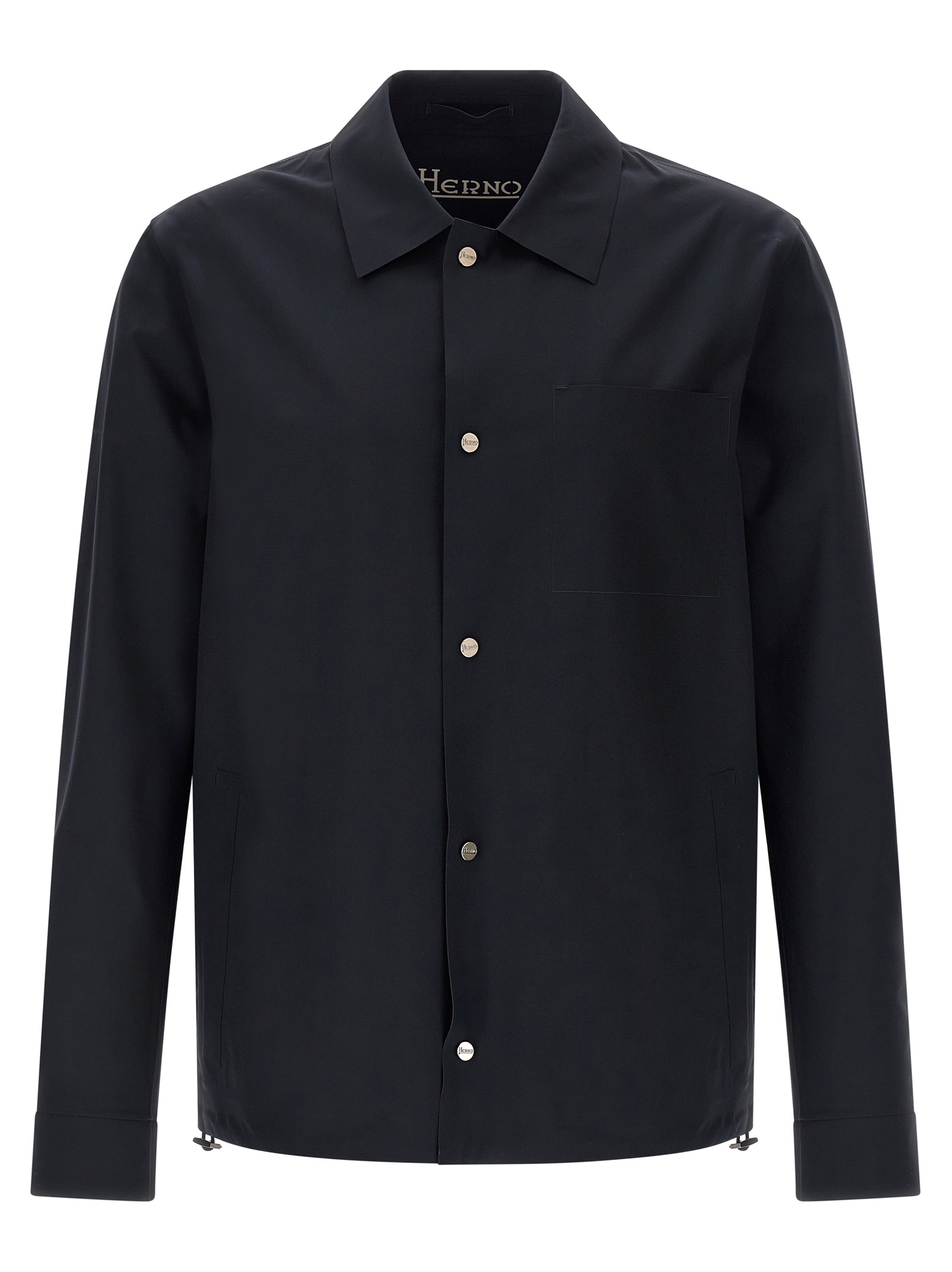 'Essence' overshirt in water-repellent tape fabric, unlined, shirt collar, front snap button closure, pockets, long cuffed sleeves, drawstring on the hem.