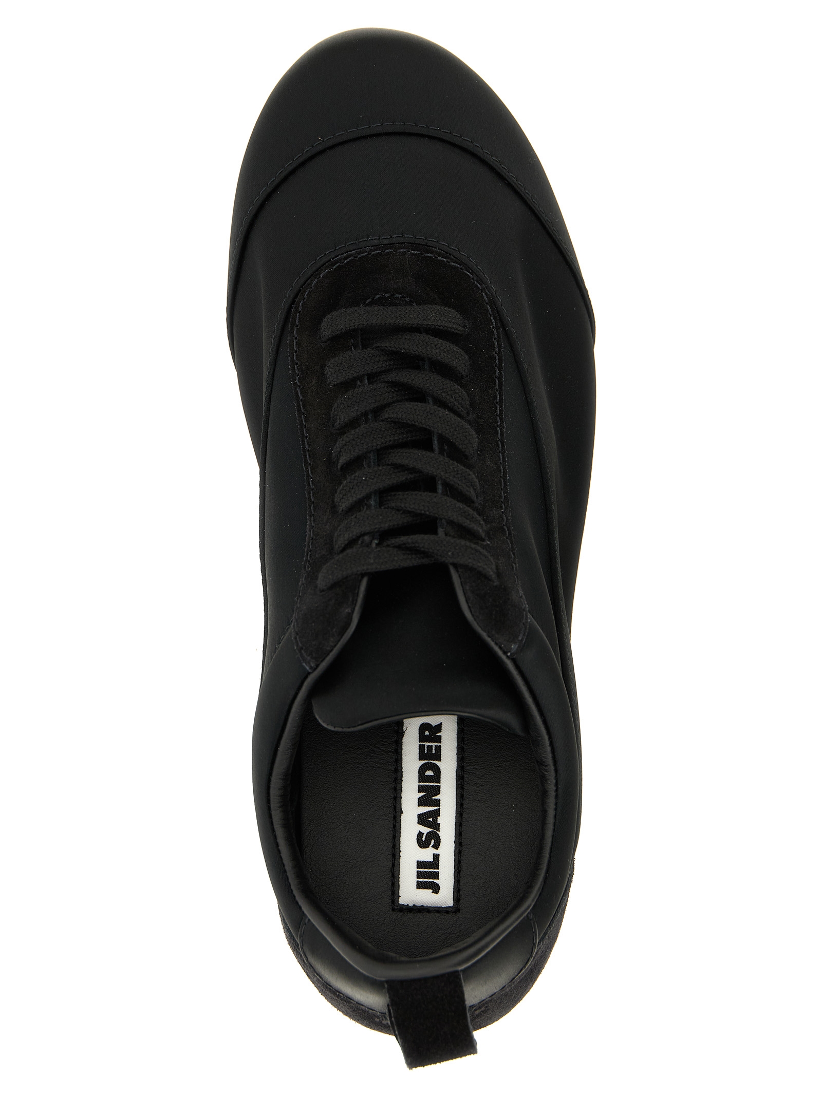 'Etage' кеди з сатину та замші тон у тон, круглий носок, тиснений логотип на п'яті, шнурівка, гумова підошва.