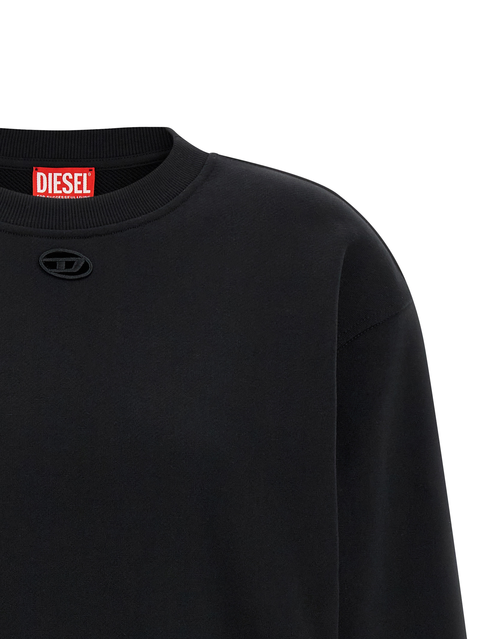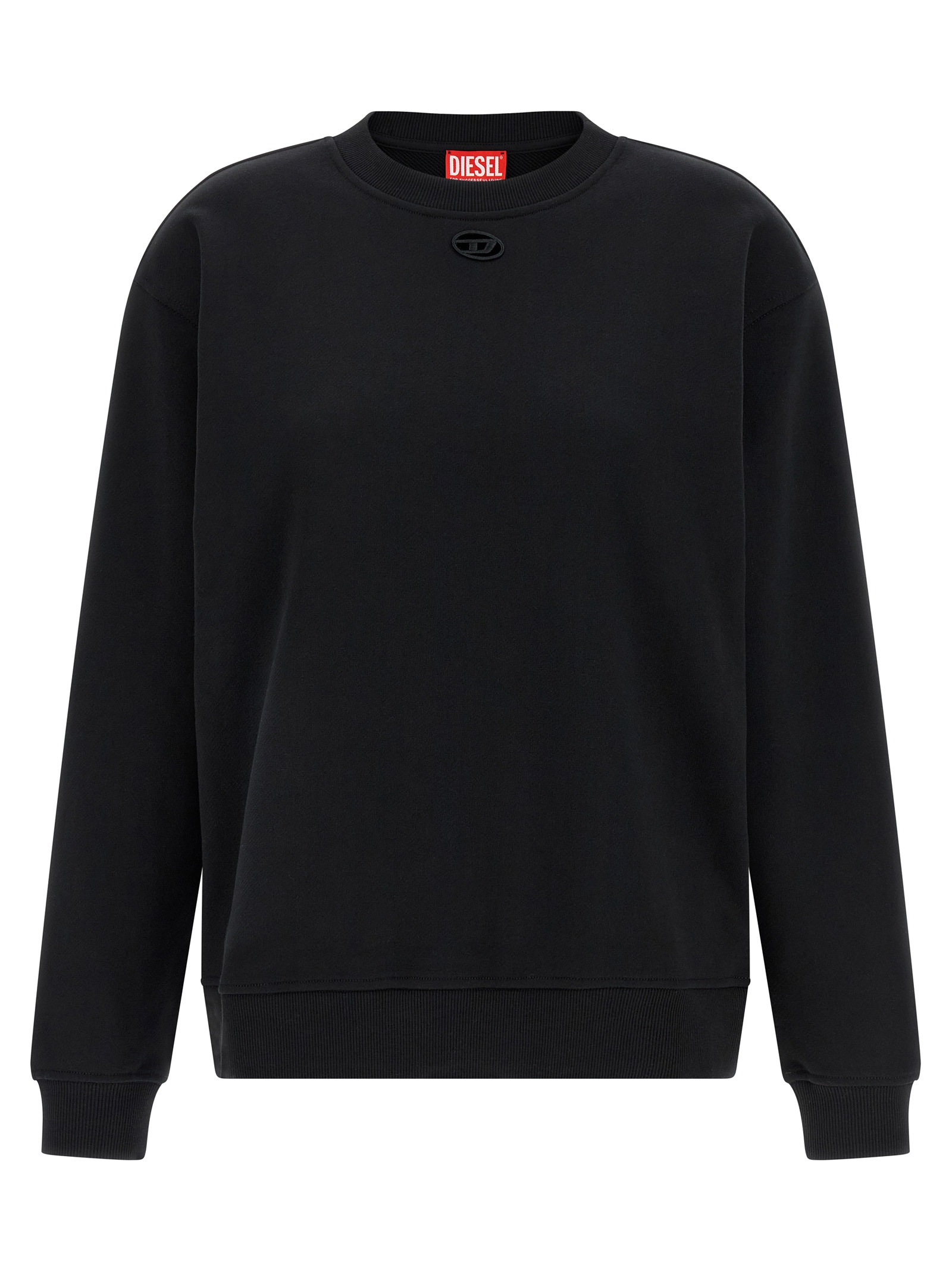 'F-Normy-Od' світшот з не-флісової бавовняної флісової тканини з тон в тон 'Oval D' лазерно вирізаною вишивкою спереду, довгі рукави з манжетами та спущеними плечима. СТІЙКИЙ: Цей продукт виготовлений з переробленої бавовни.