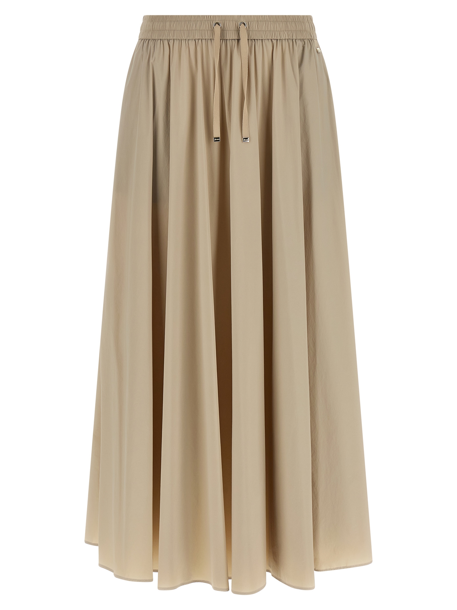 Midi skirt in light nylon stretch, flared silhouette, drawstring elastic waistband, pockets, unlined.