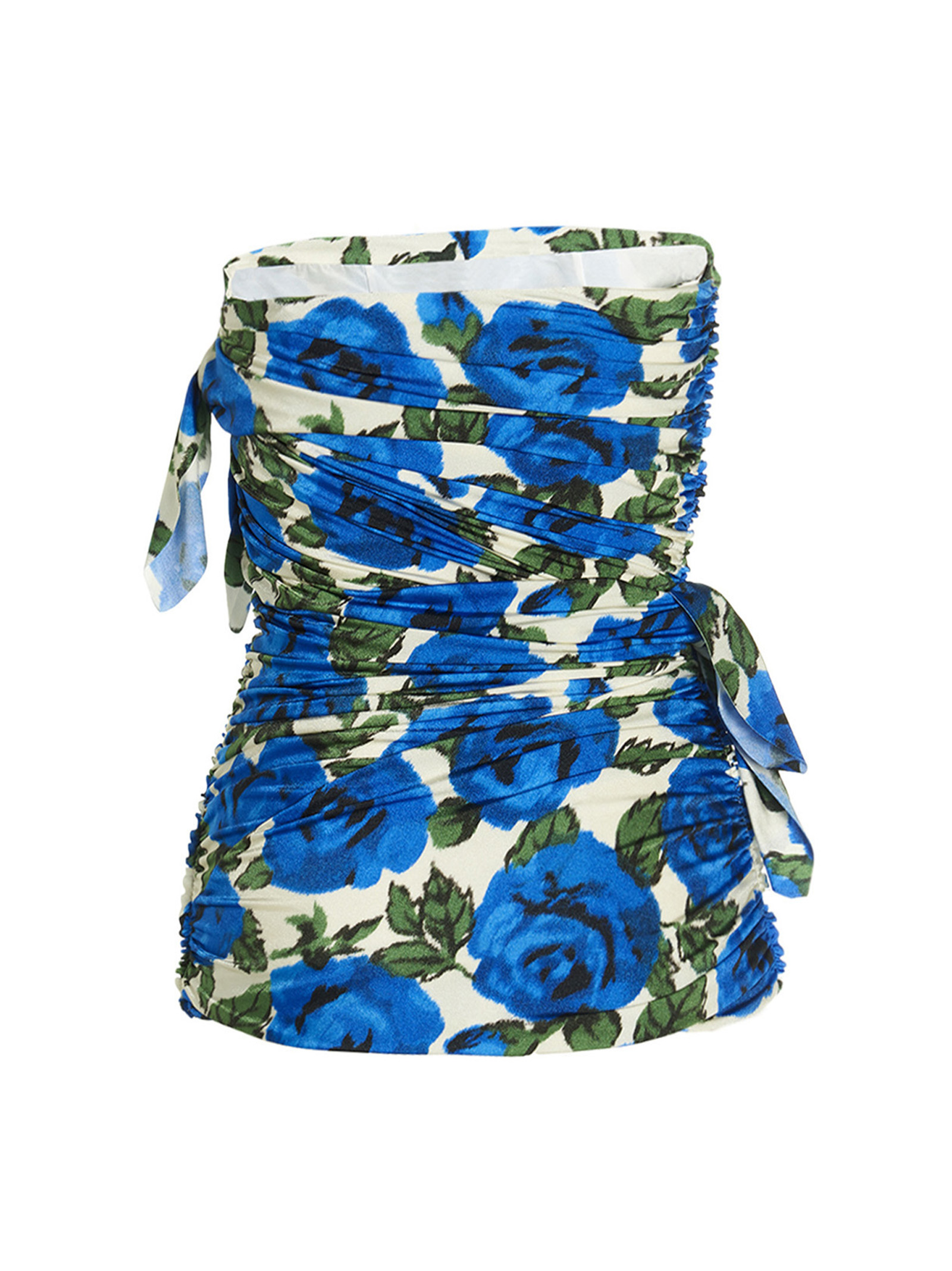 Топ з відкритими плечима з принтом 'Flower Bloom' по всій площі, деталь із вузлом.