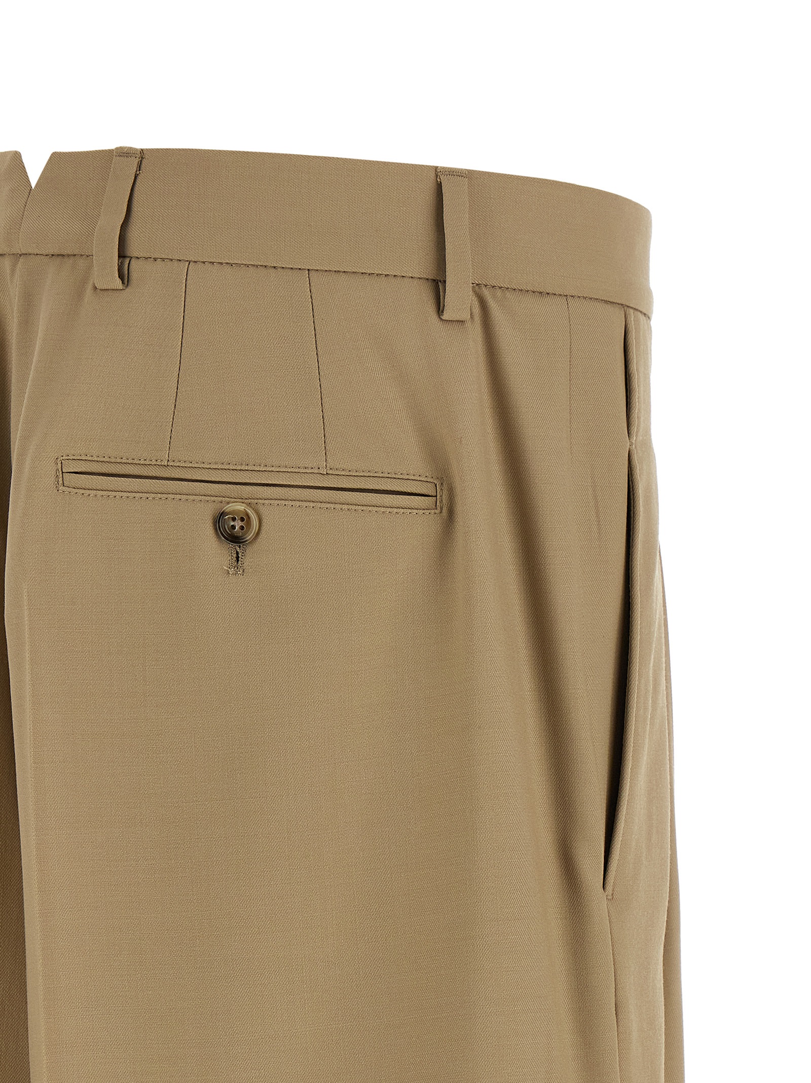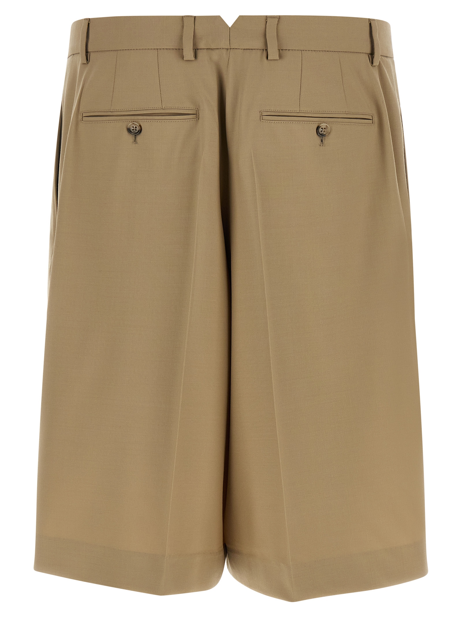 Літні (кул) бермуди з вовни, низька талія, подвійні складки, витягнута складка, широкий крій, передня застібка на ґудзик, передні «френч» кишені, задні кокеткові кишені.