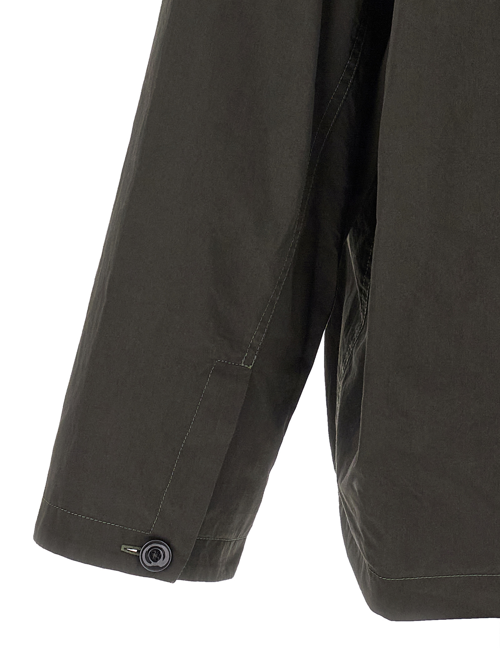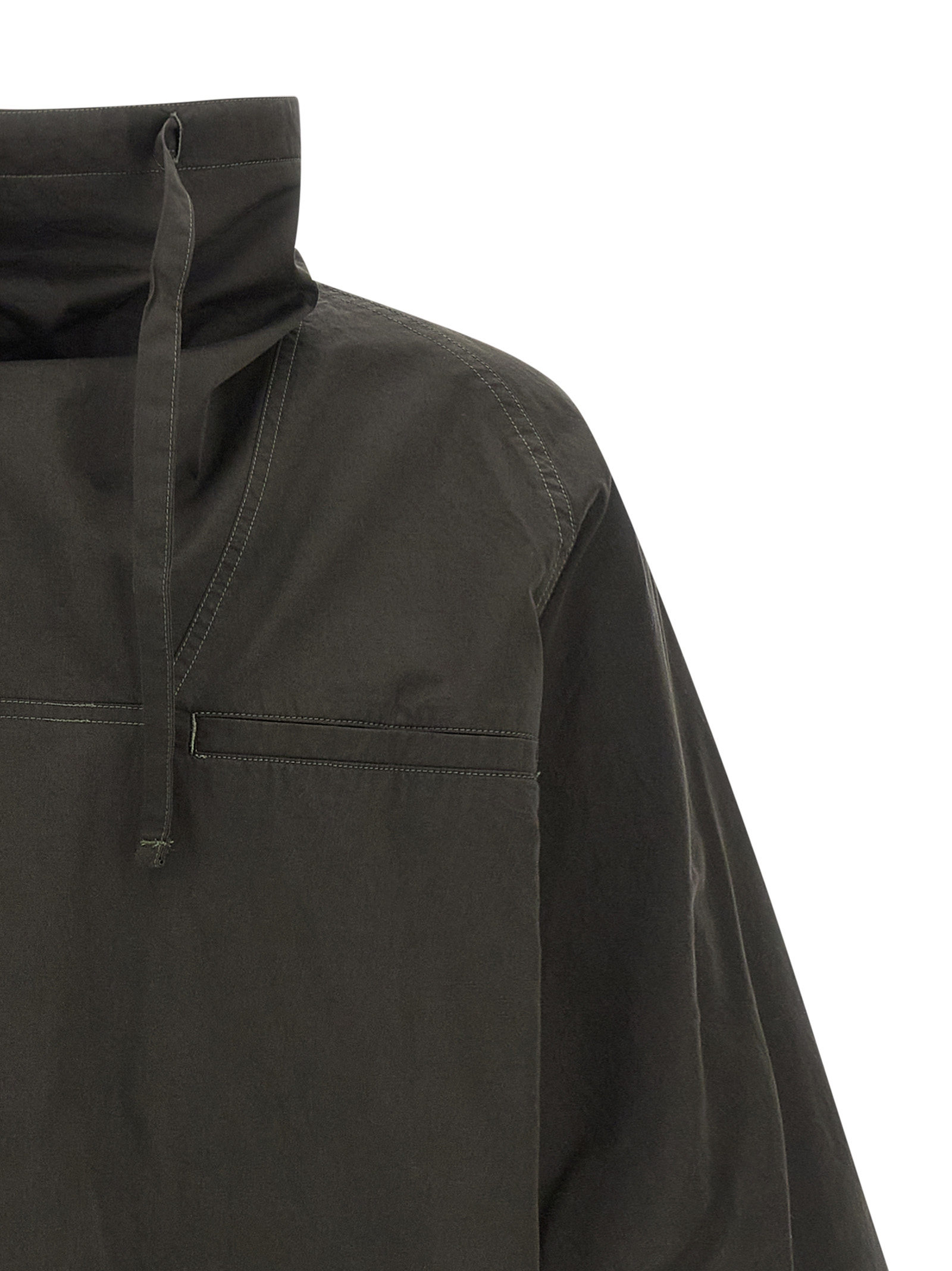 'Funnel Neck Vareuse' светр з капюшоном з фанери з бавовни, обробленим в джерсі, регульованим коміром зі шнурком, довгі рукави з ґудзиками.