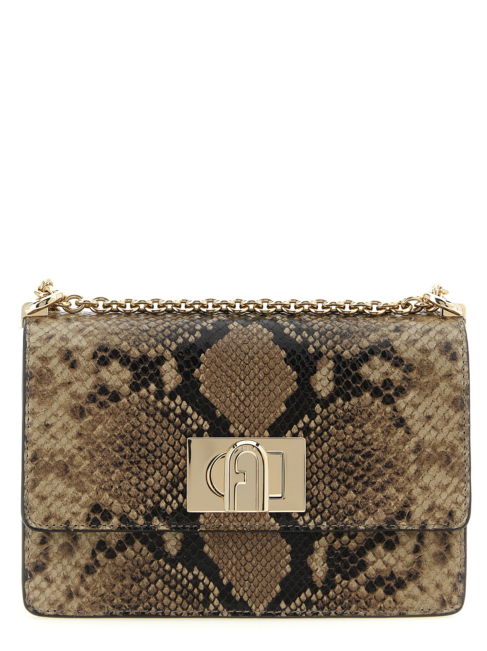 'Furla 1927' міні сумка через плече з шкіри з принтом з пітоном, клапанна застібка з металевим обертом з логотипом Arco, задня кишеня, ковзаючий ланцюговий плечовий ремінь з захистом зі шкіри.