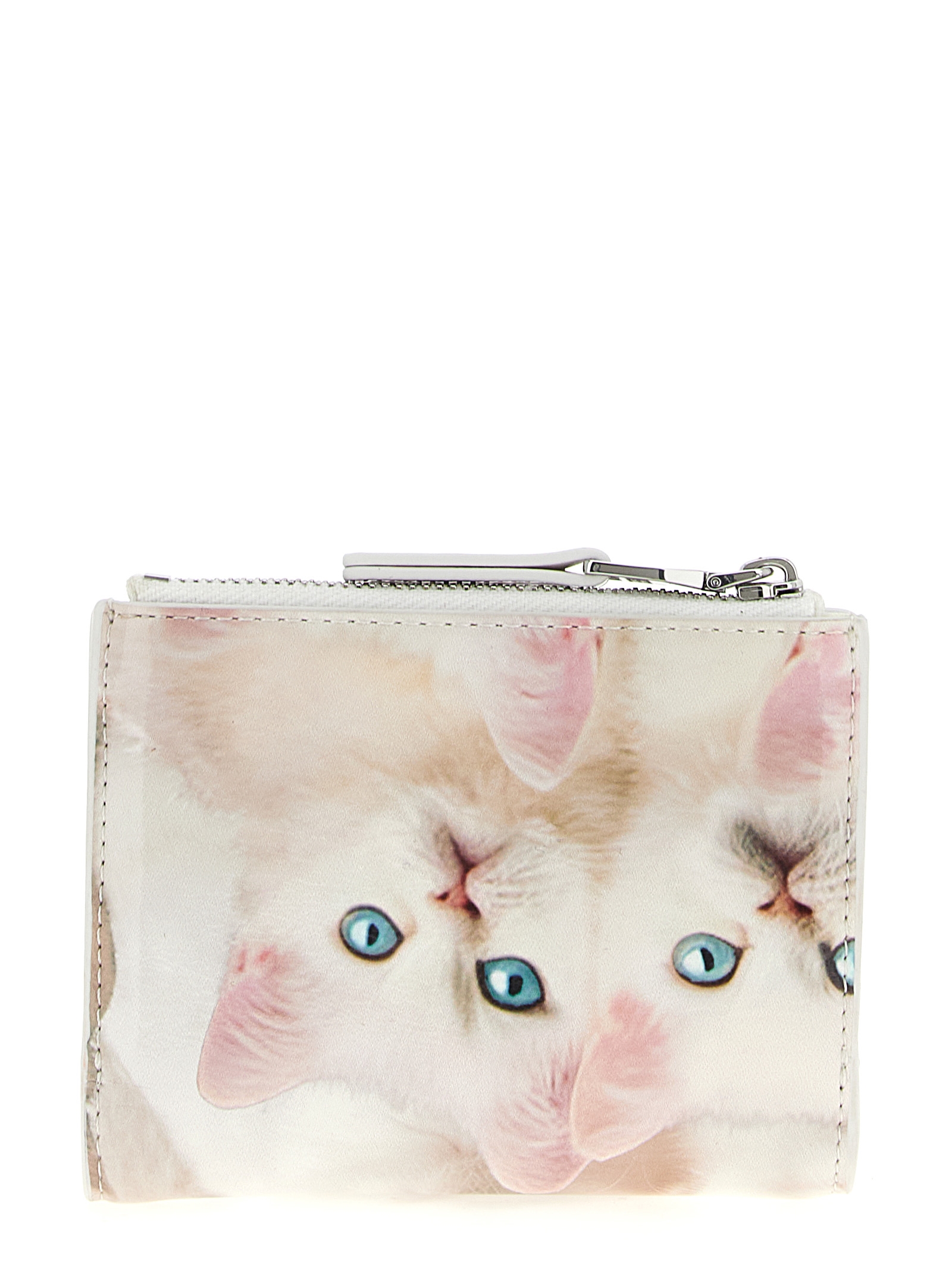 Гаманець з блискучої шкіри з принтом 'Gatti' по всій поверхні, кишеня для монет на блискавці, тримач для карт та купюр з застібкою на кнопці та переднім металевим логотипом.