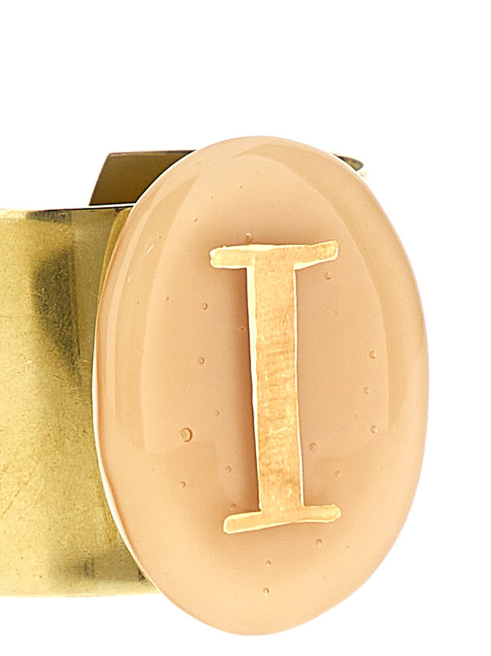 'Gipsy' napkin holder in gold metal, glass detail with hand-painted 'I' initial in pure gold.