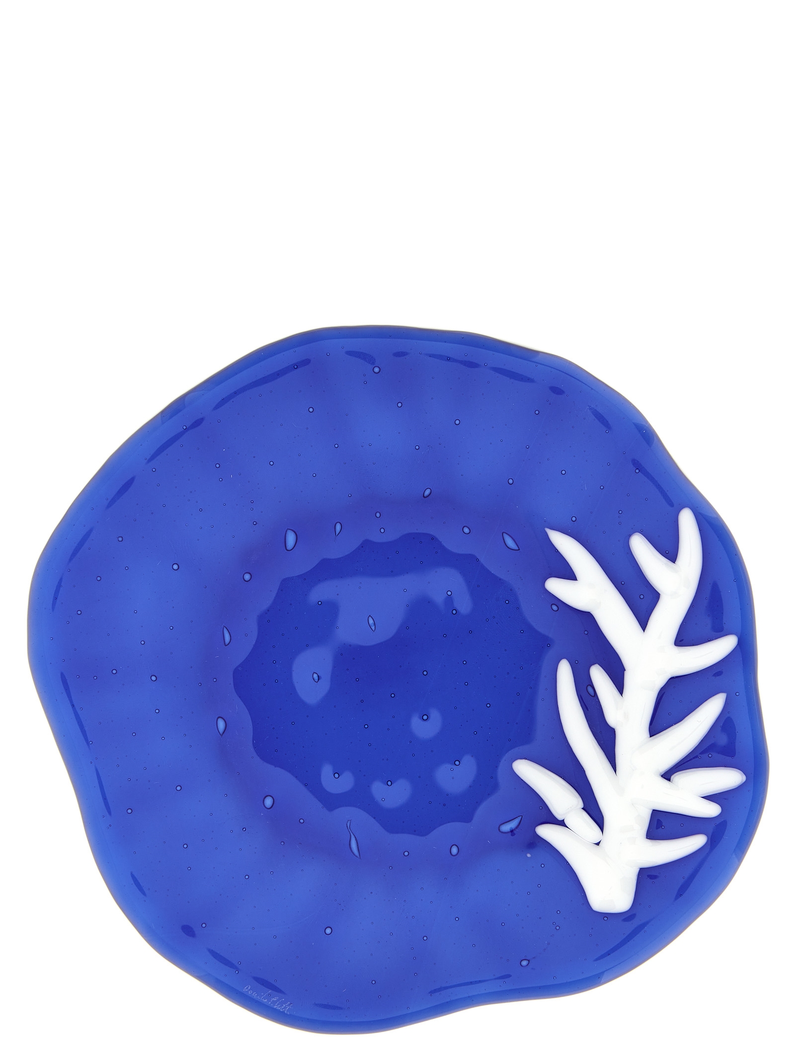 Скляна обідня тарілка з органічною формою та контрастним дизайном.