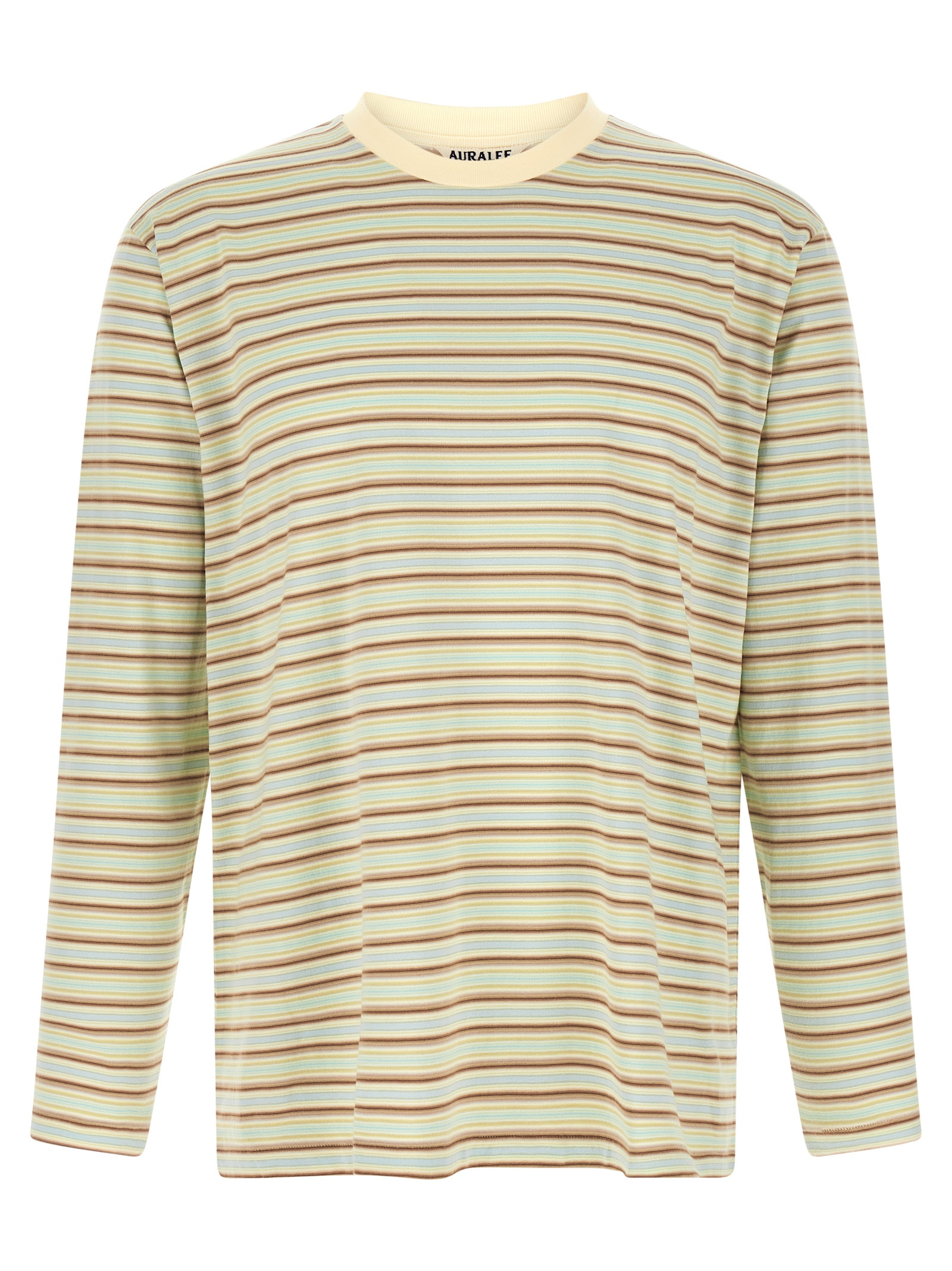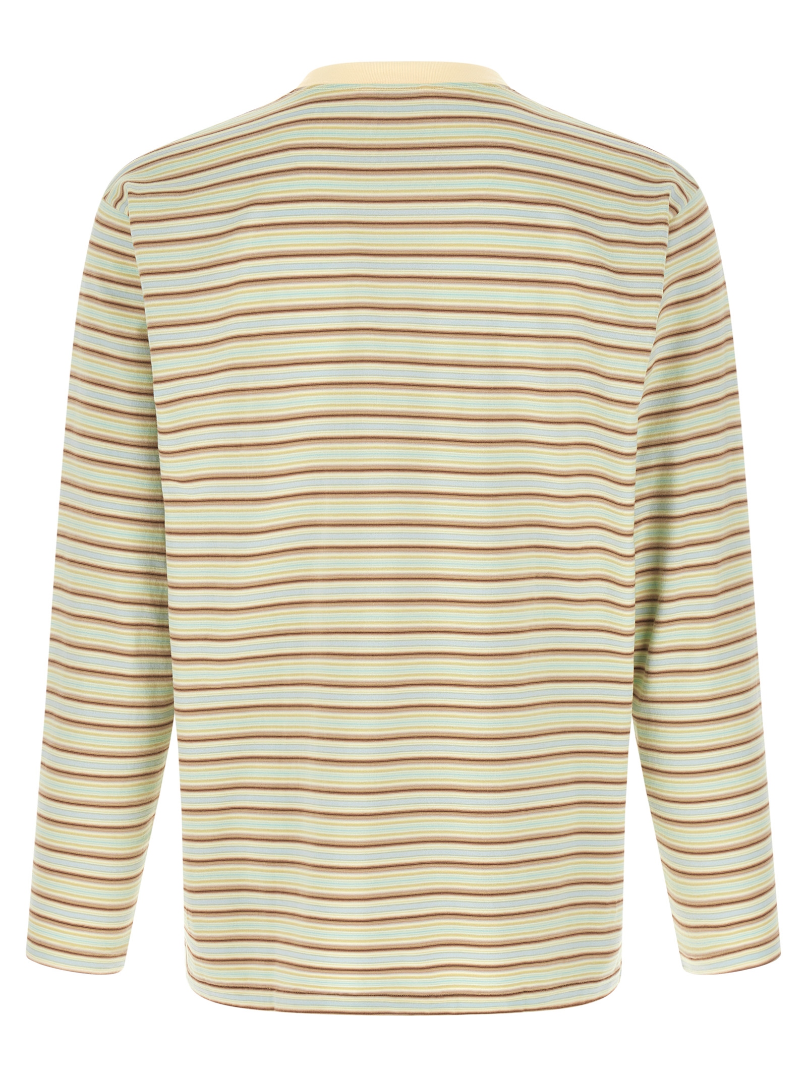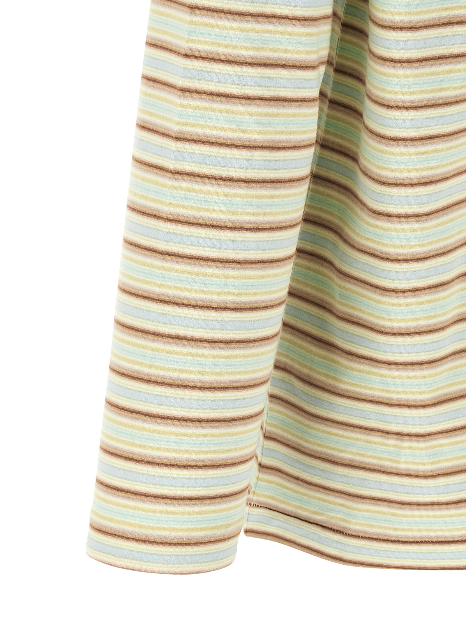 Дуже щільна текстурована трикотажна футболка з градієнтним смугастим візерунком, створеним із палітри з 23 вдало поєднаних кольорів, круглий виріз горловини, довгі рукави з опущеним плечем.