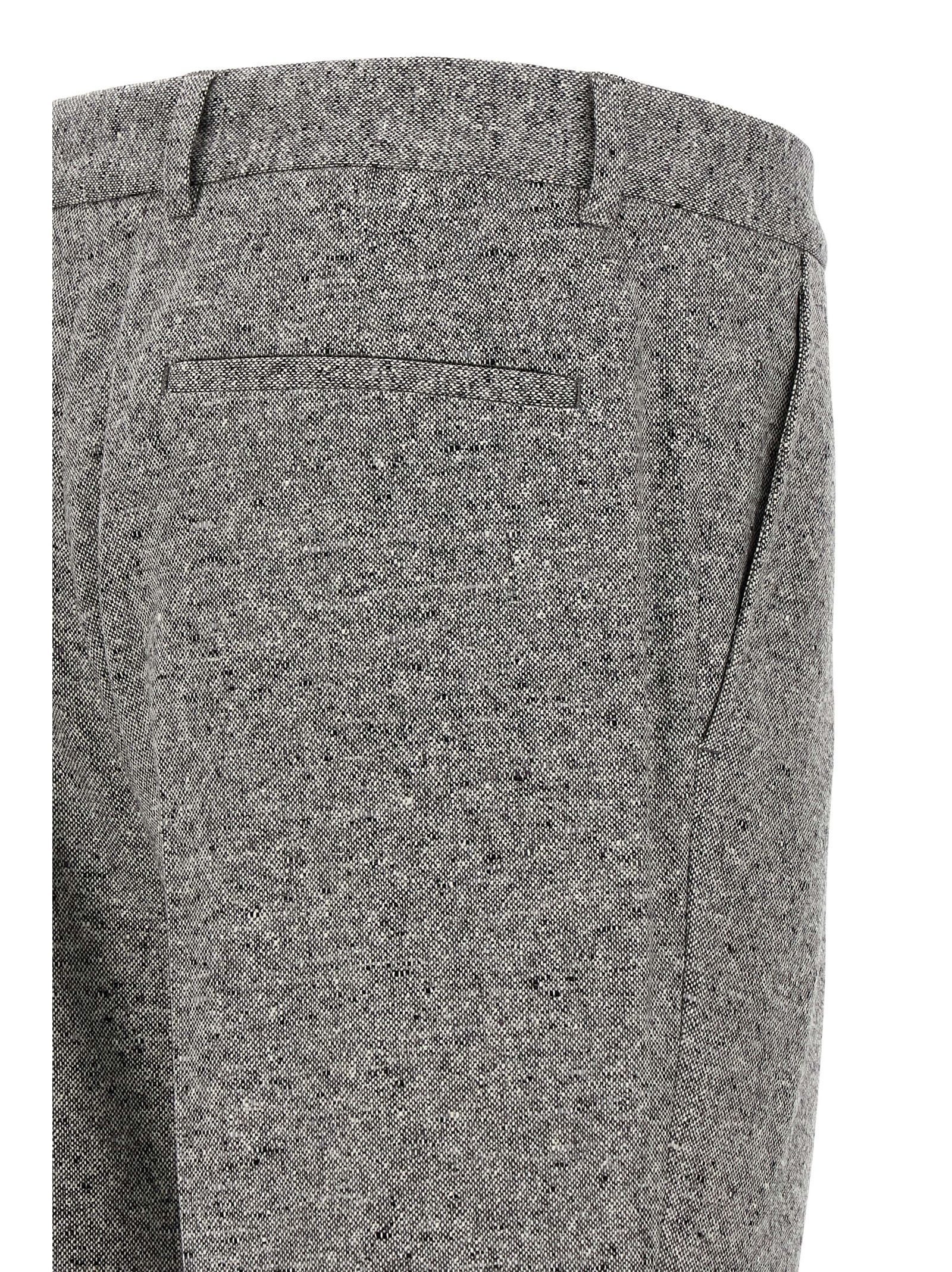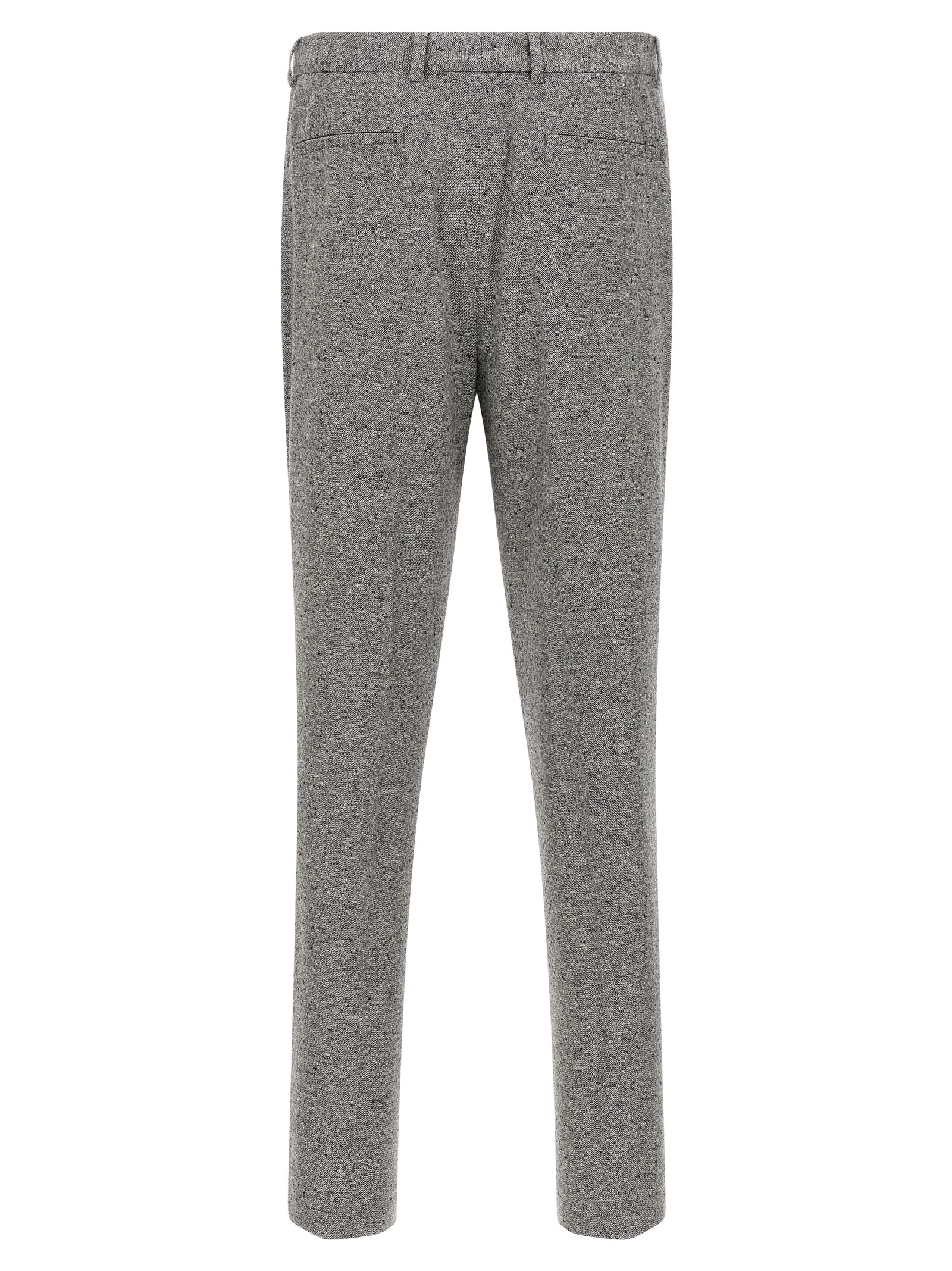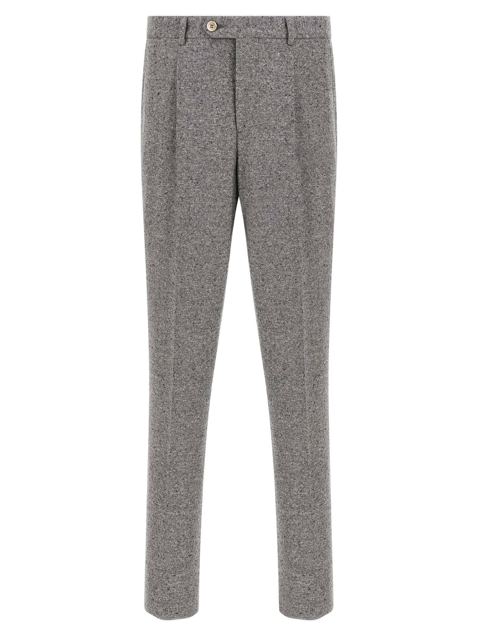 Wool and cashmere grisaille dress consisting of one-and-a-half breast blazer with buttons, front patch pockets, long sleeves with buttons; Straight trousers, front stretch pleat, zip and hook closure, pockets.