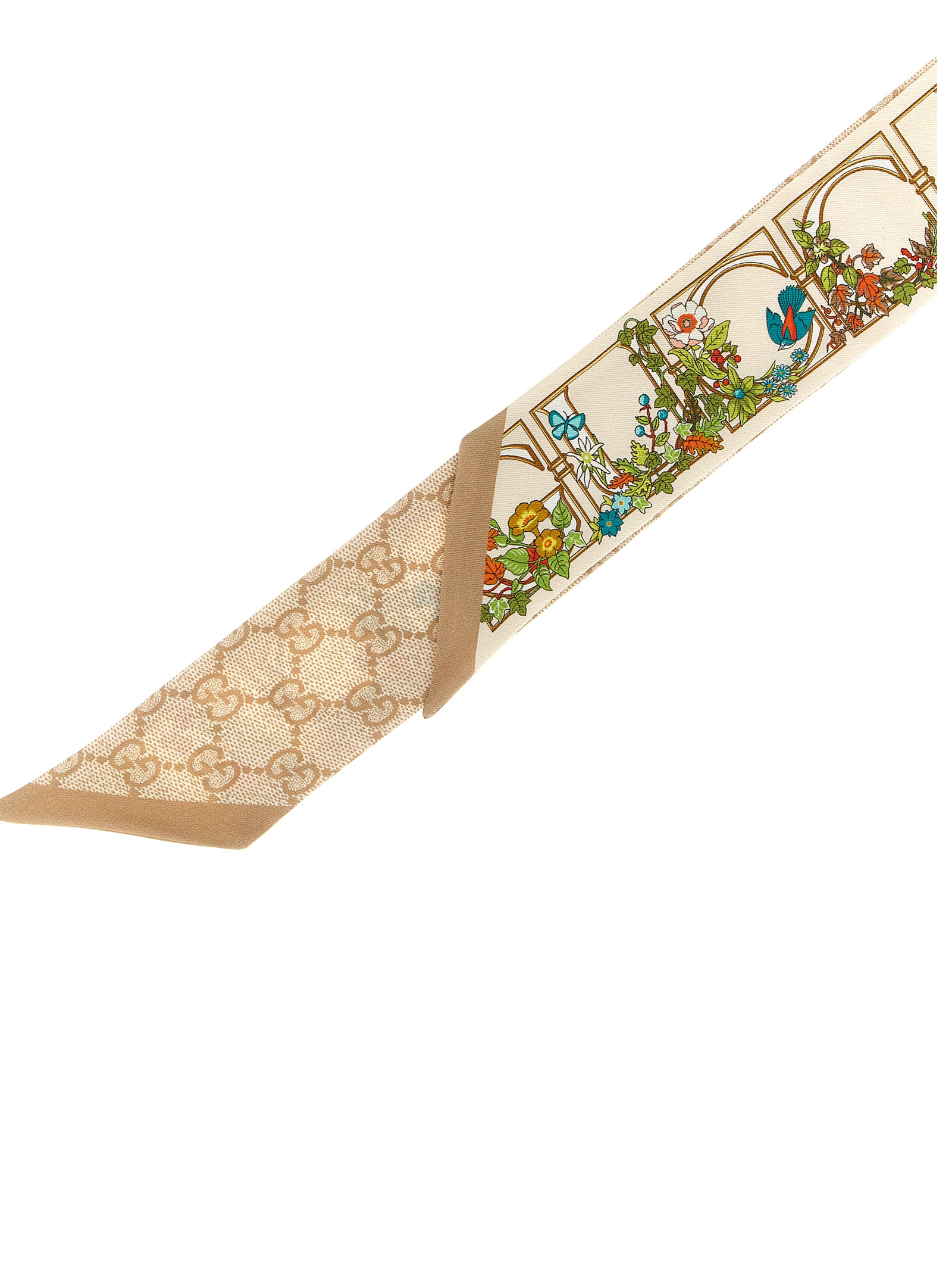 Двосторонній шовковий шарф з принтом Gucci, квіти та тварини в загальному саду.